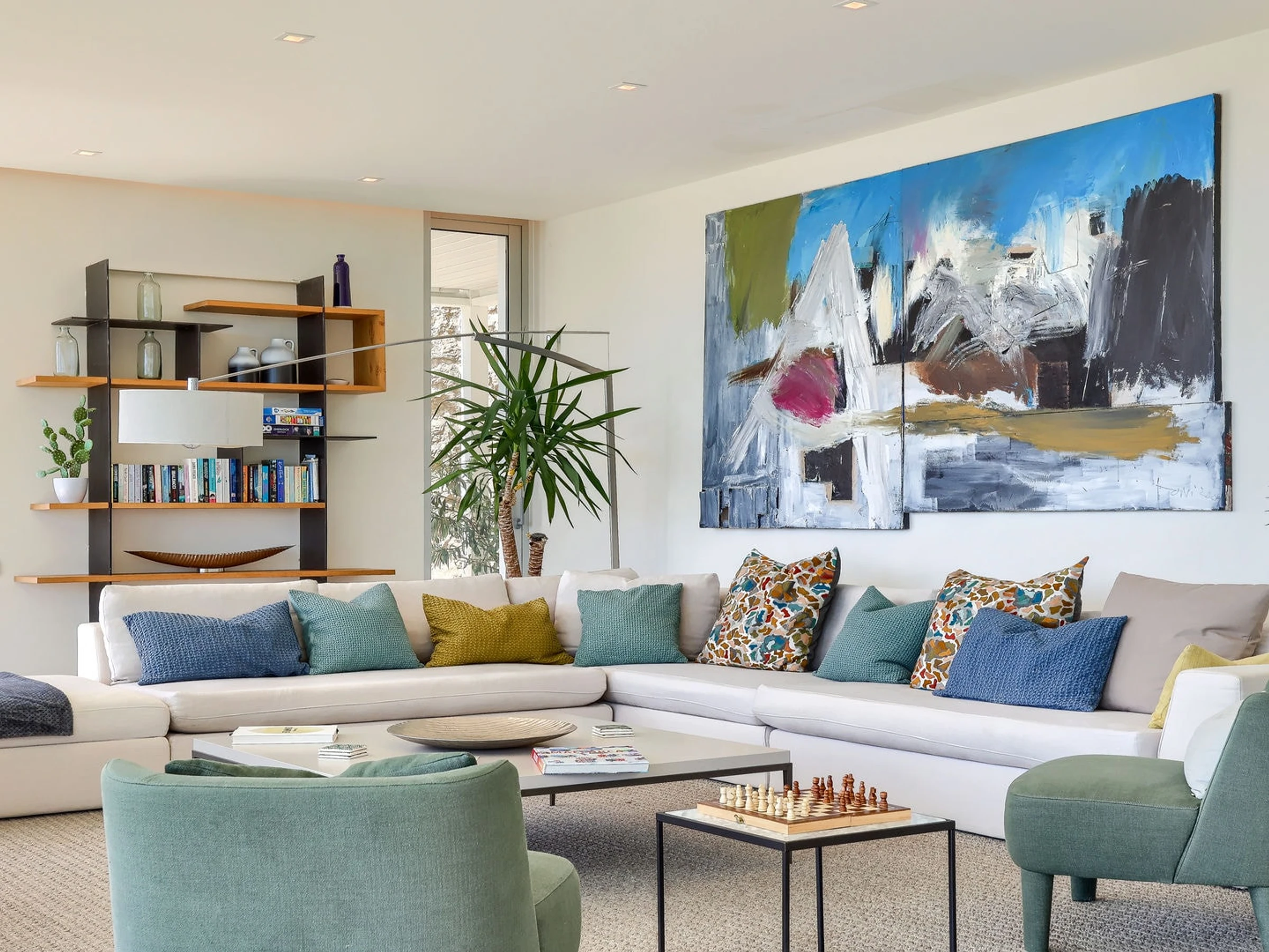On the first floor, the villa has a beautifully sunny living room with super comfortable designer furniture and impressive artwork.