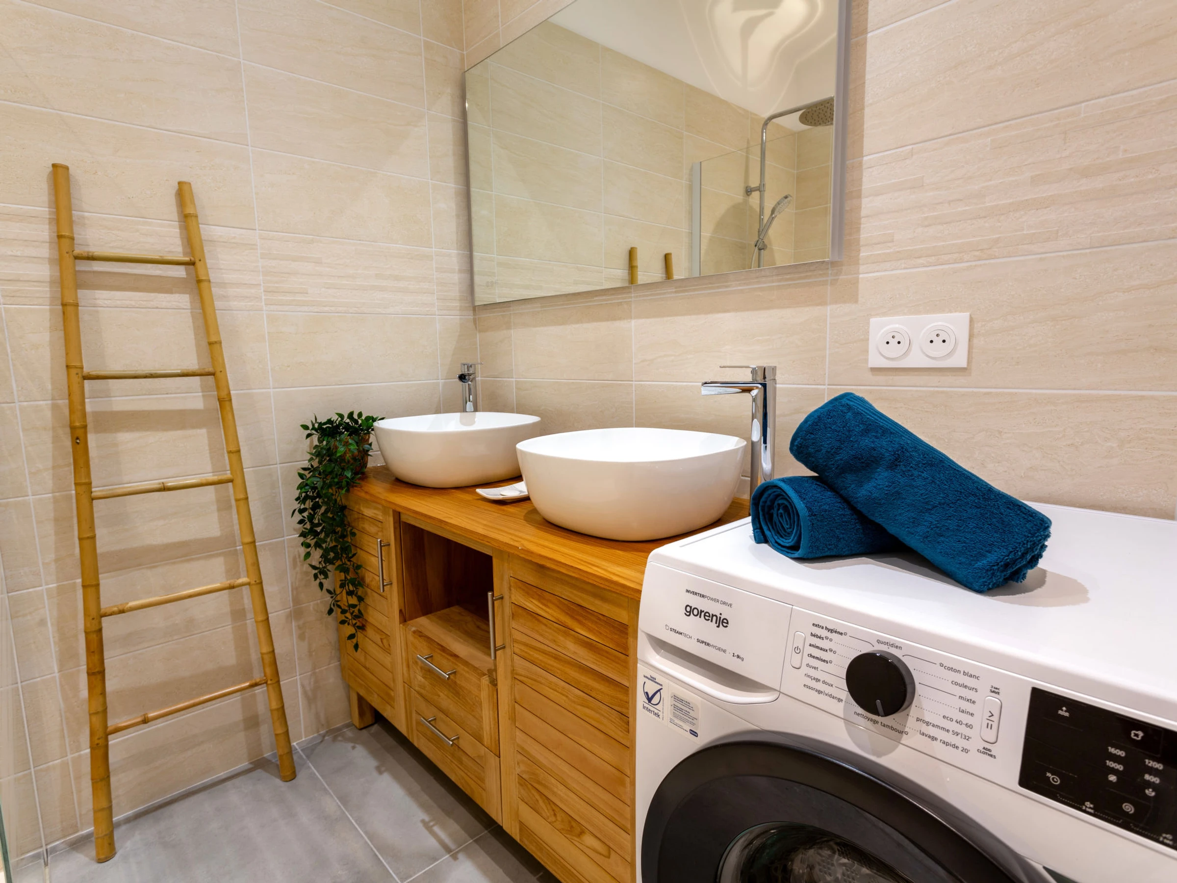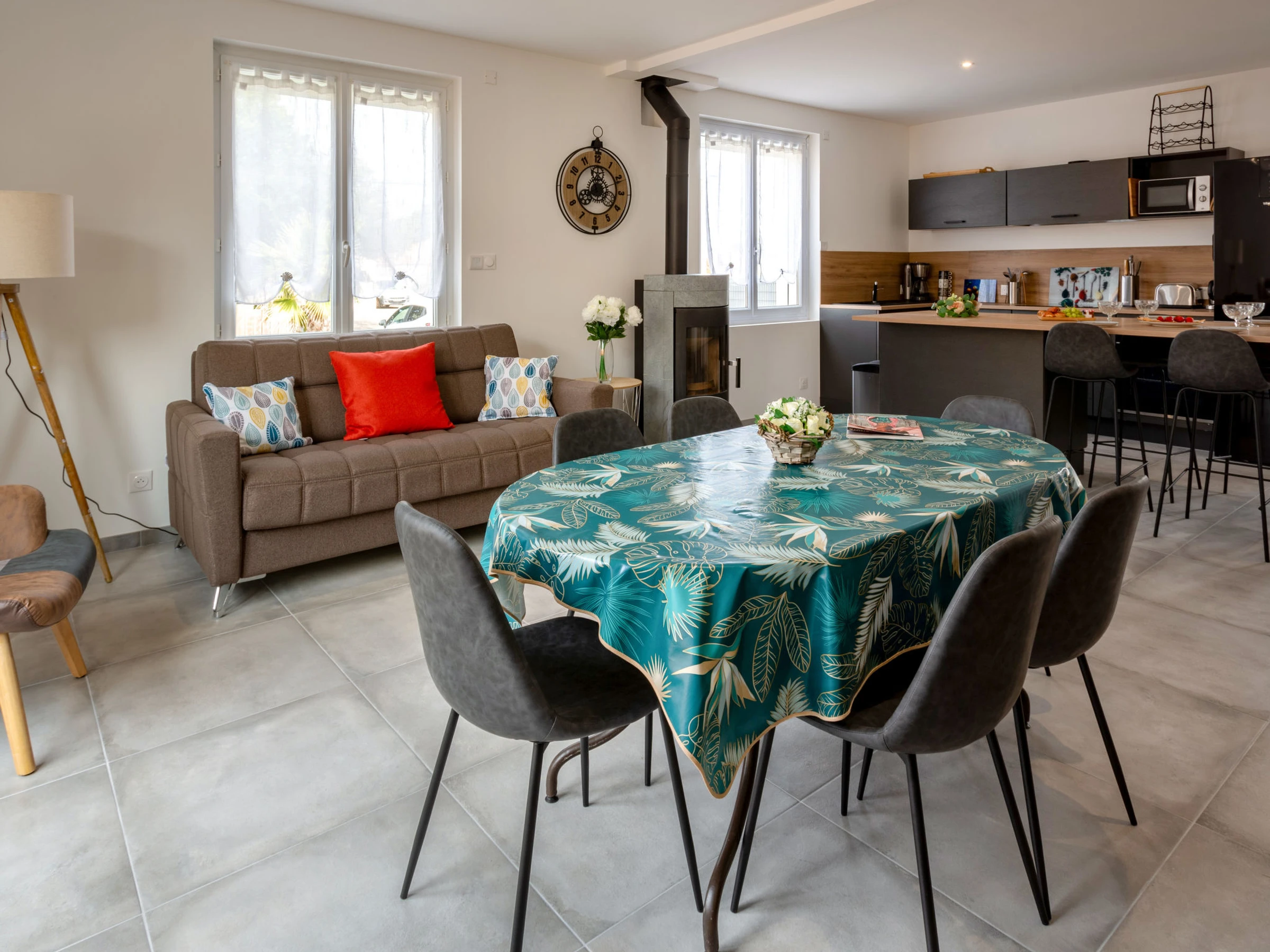 "La Villa Dorée", 4-room house 100 m2. Modern and cosy furnishings: living/dining room with TV (flat screen), wood-burning stove. Exit to the terrace. 2 rooms, each room with 1 french bed (1 x 160 cm, length 200 cm). 1 room with 2 beds (80 cm, length 190 cm). Open kitchen (oven, dishwasher, 3 induction hot plates, toaster, kettle, microwave, freezer, electric coffee machine). Shower, sep. WC, double hand-basin. Electric heating. Large terrace 60 m2, south facing position and west facing position, garden 330 m2, south facing position and west facing position. Terrace furniture, barbecue, deck chairs (4). Facilities: washing machine, iron, hair dryer. Internet (WiFi, free). Parking (3 cars). Please note: non-smoking house. Smoke alarm. Offer by a commercial proprietor according to Art. 155, IV, CGI [hidden]