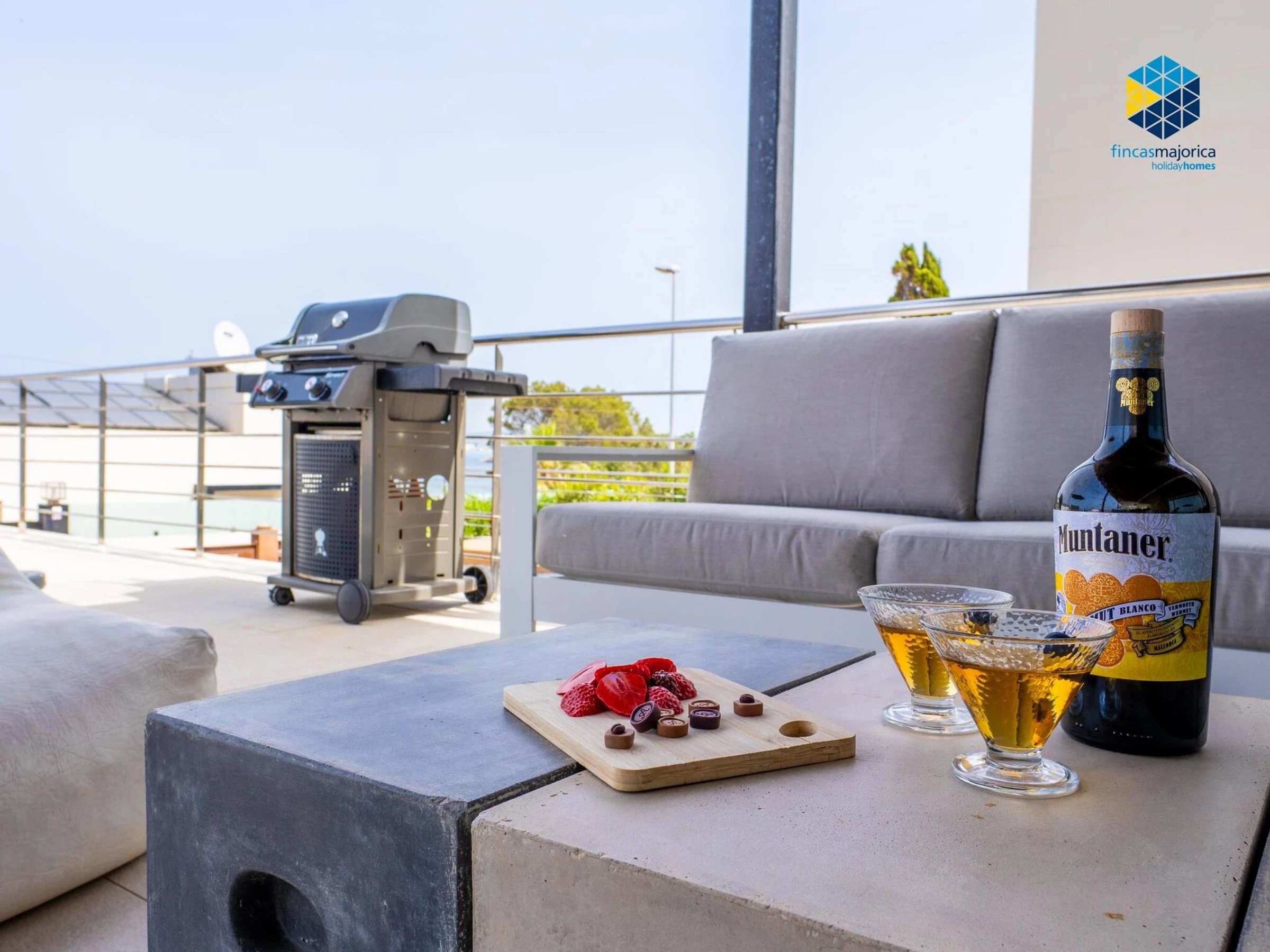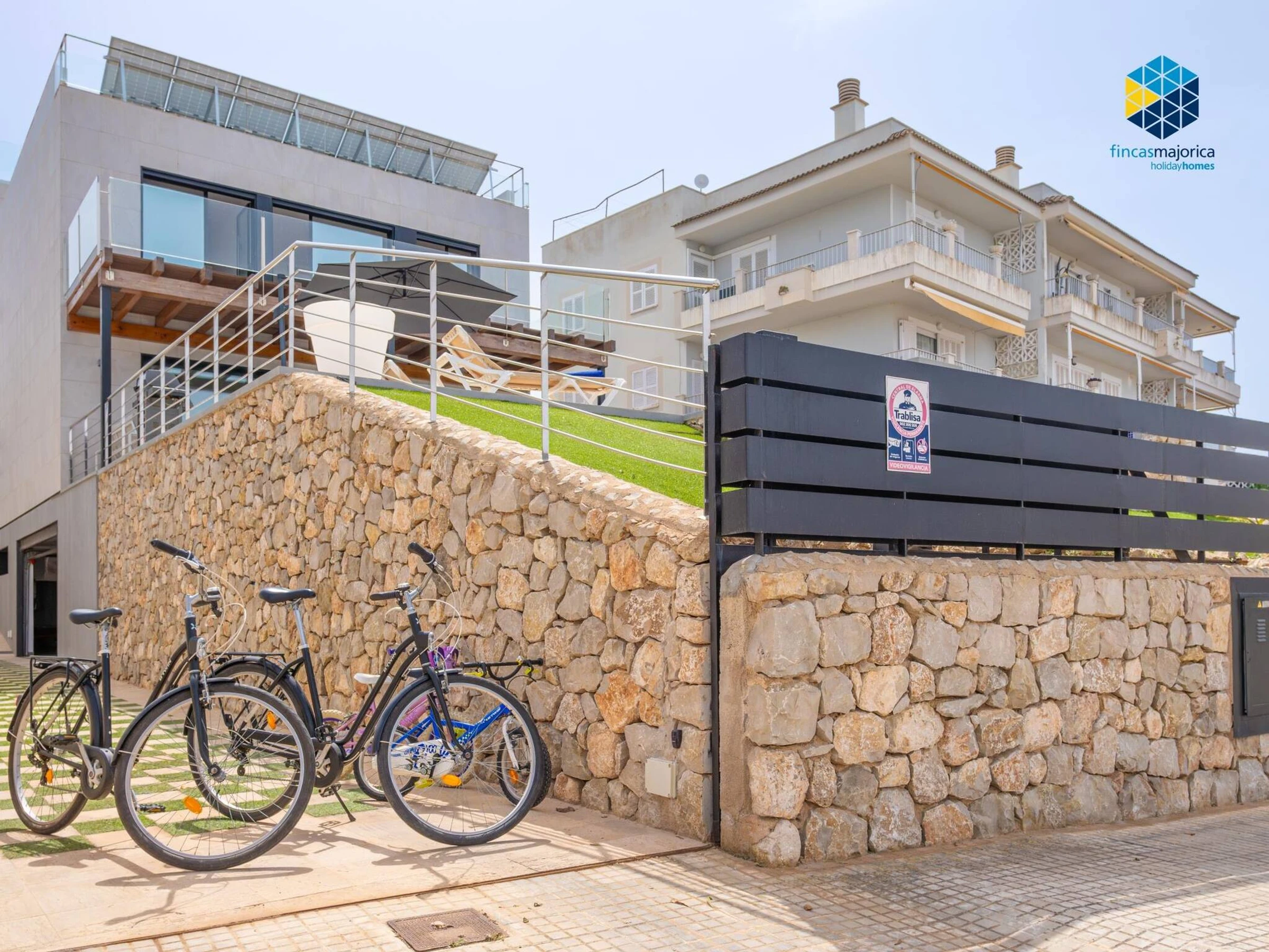 Outside, a large outdoor terrace with infinity pool and hammocks, parasol, outdoor dining room, Weber gas barbecue and summer lounge with the always sensational view of the sea and all the way to Palma. This villa is the ideal location for people looking for proximity to both the sea and Palma. Secure parking (private garage) for up to 2 large [hidden] have some bicycles for our guests, in total: 2 for adults and 2 for children.