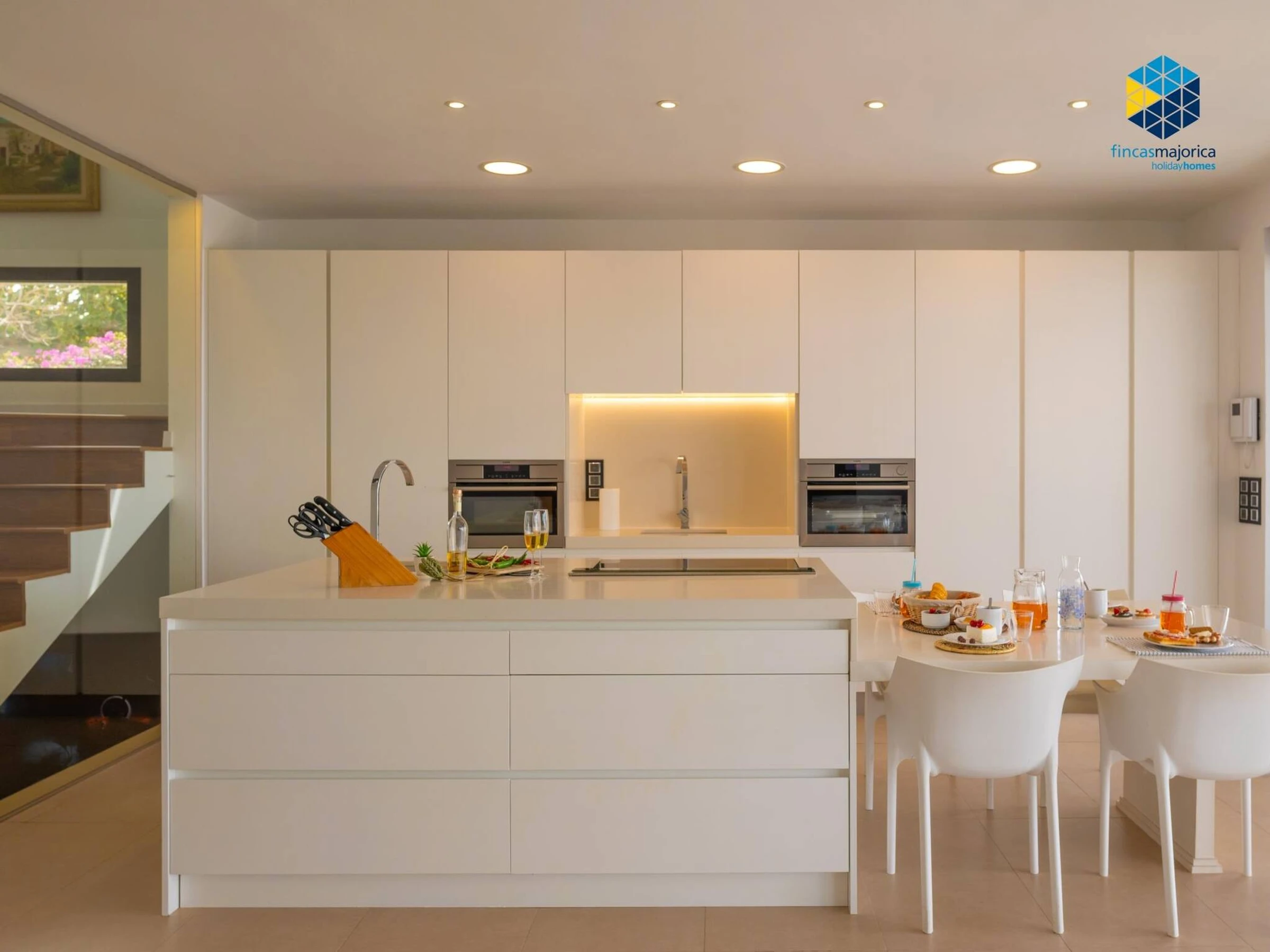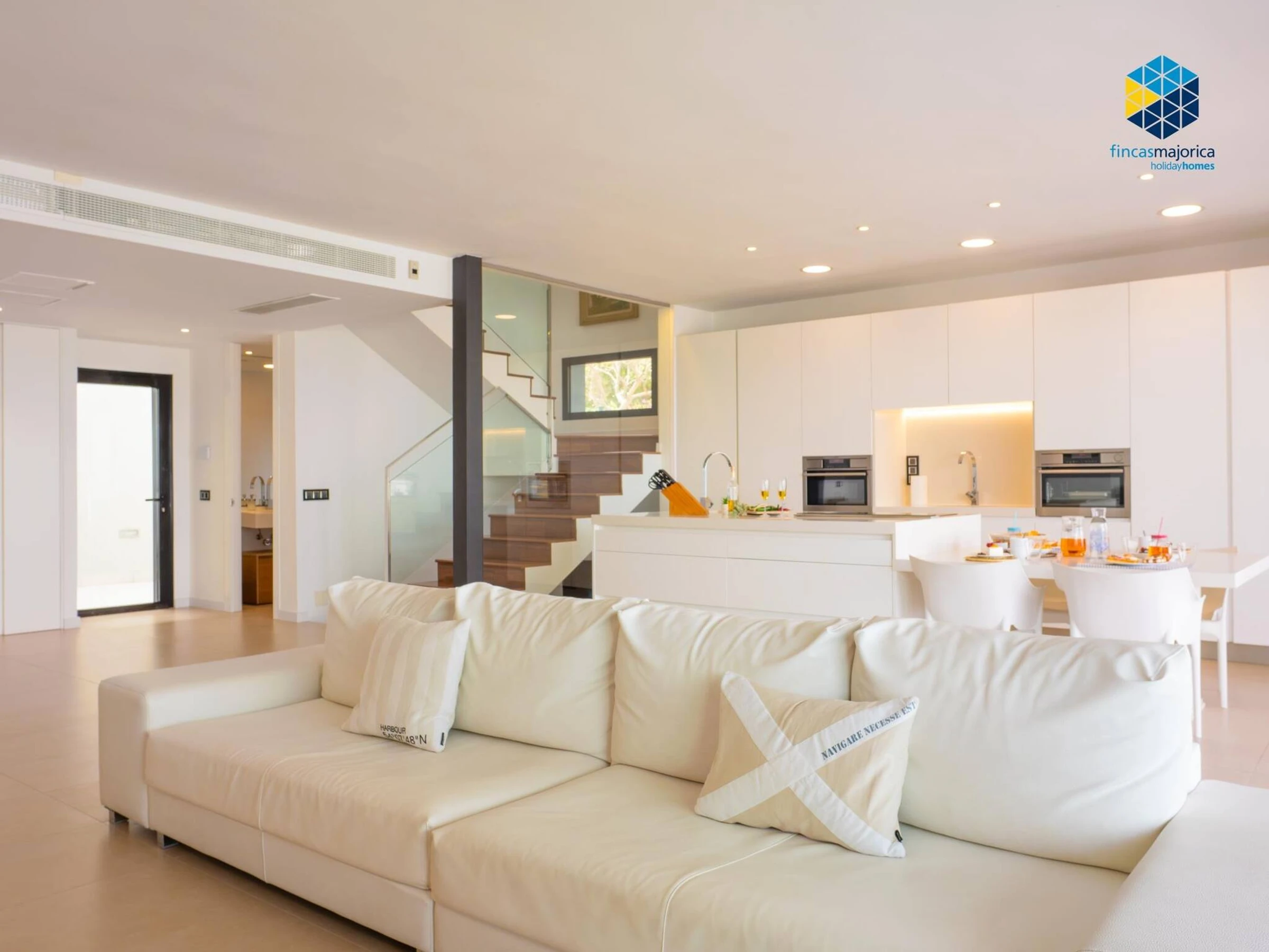The house consists of a large open space on the ground floor, where you will find all the comforts. The kitchen is well equipped and includes a microwave/oven and steam oven. On the ground floor there is also 1 full bathroom and 1 study room that has a sofa bed. Upstairs, there are 3 bedrooms that sleep up to 5 people and 2 full bathrooms. In one of the bathrooms there is a fantastic hot tub. All blinds and shutters are motorized. Air conditioning (hot and cold modes) throughout the property.
