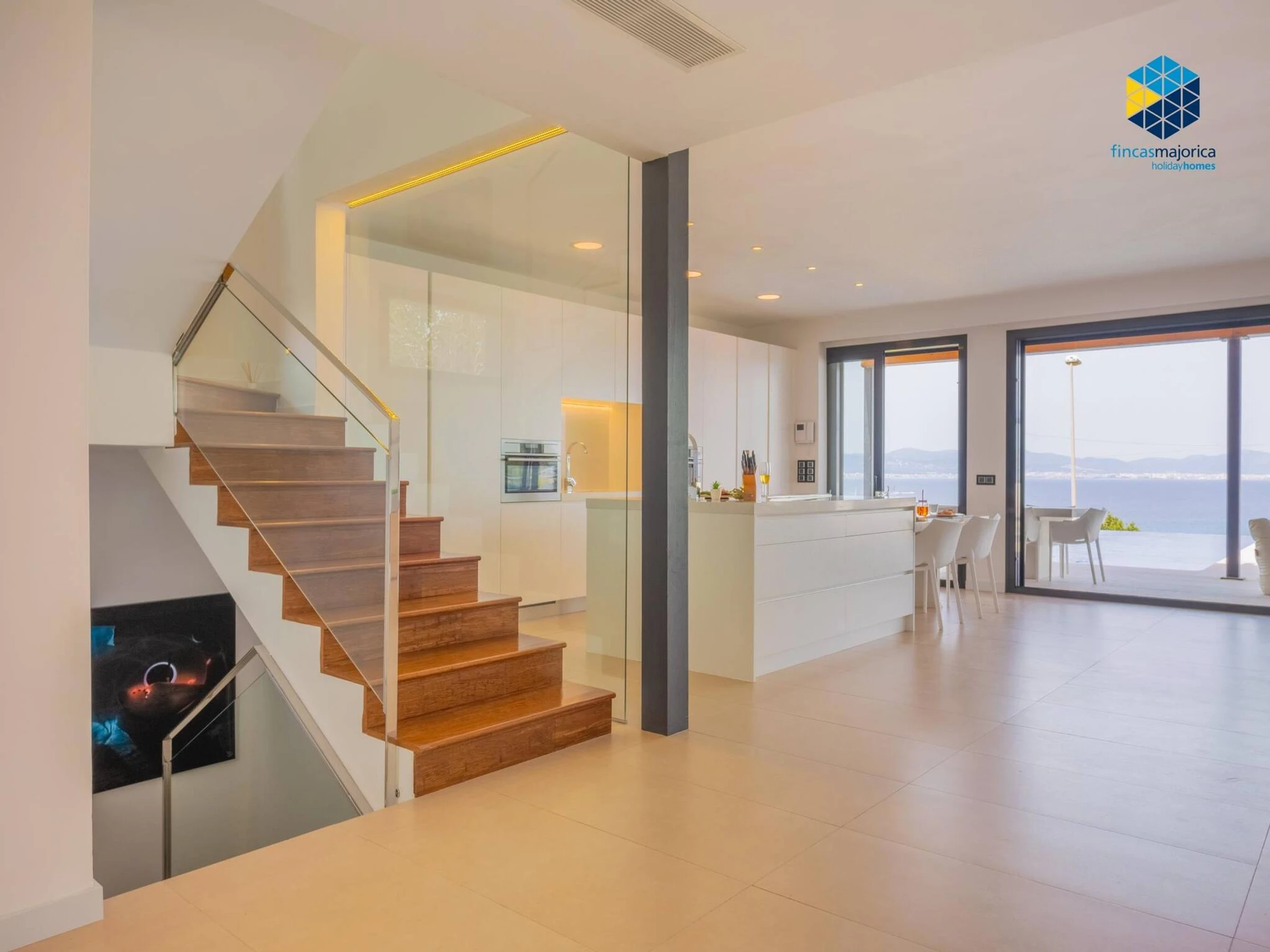 This modern Villa with stunning sea views is located a short distance from Palma, just 15 minutes by car. It is equipped with high quality elements and flooded with light thanks to the large windows at the front. From all rooms and terraces you can enjoy the incredible view of the sea and the bay of Palma.There are several beach accesses located in front of the house, which are very convenient for taking a dip in the sea, the closest access, which is right in front of the property, has a restaurant with a pool on the seashore, ideal to enjoy the sunsets.