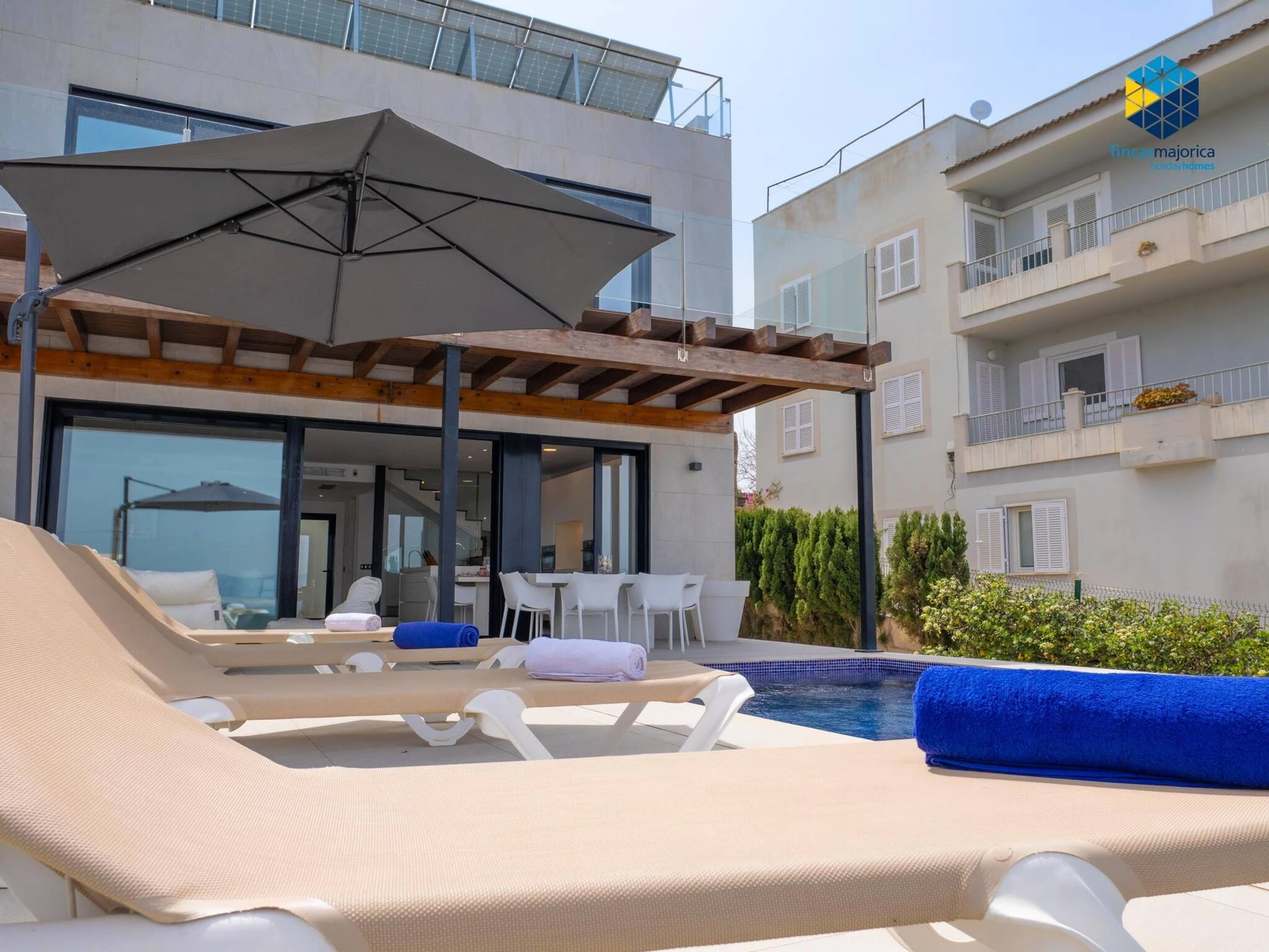 Villa BahÃa Palma is located on the second line of the sea in Cala Blava in the Bellavista urbanization, near the Cap Rocat luxury hotel. From here you can enjoy magnificent sea views of the Bay of Palma and it is just 10 minutes by car from the island's capital. Mallorca's pristine beach, Es Trenc, can also be reached in less than 30 minutes by car.