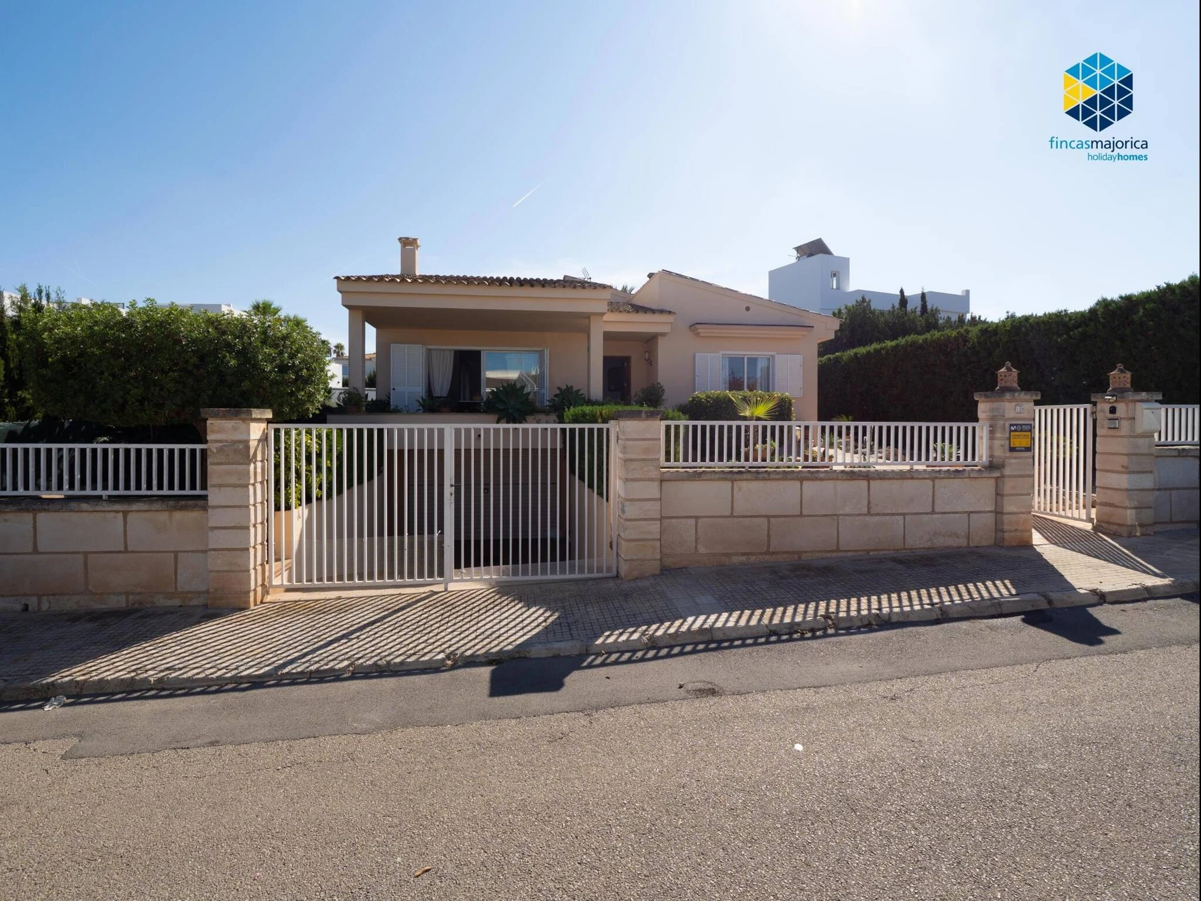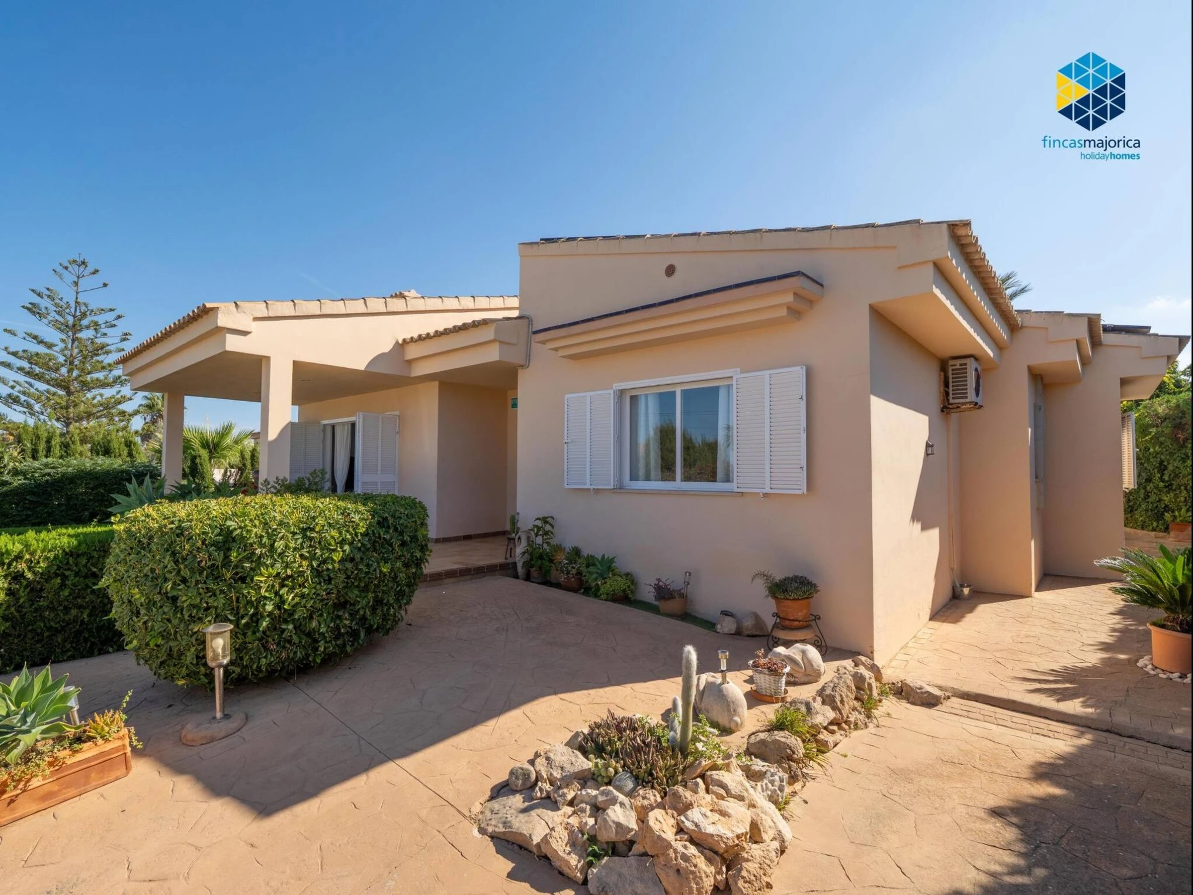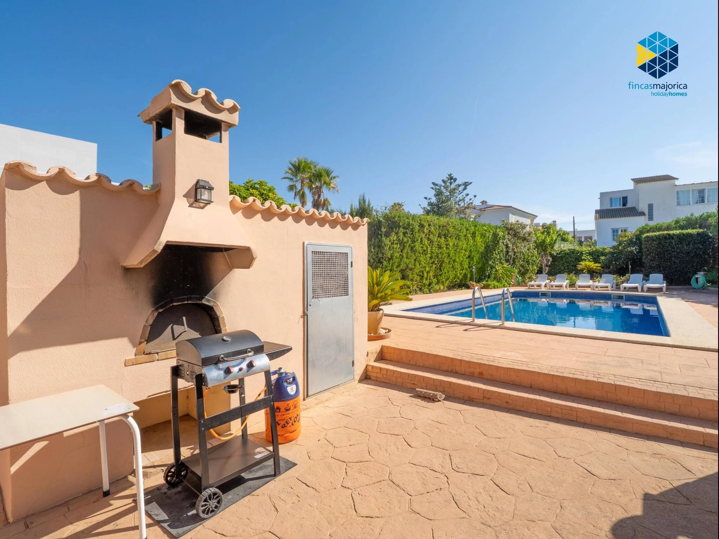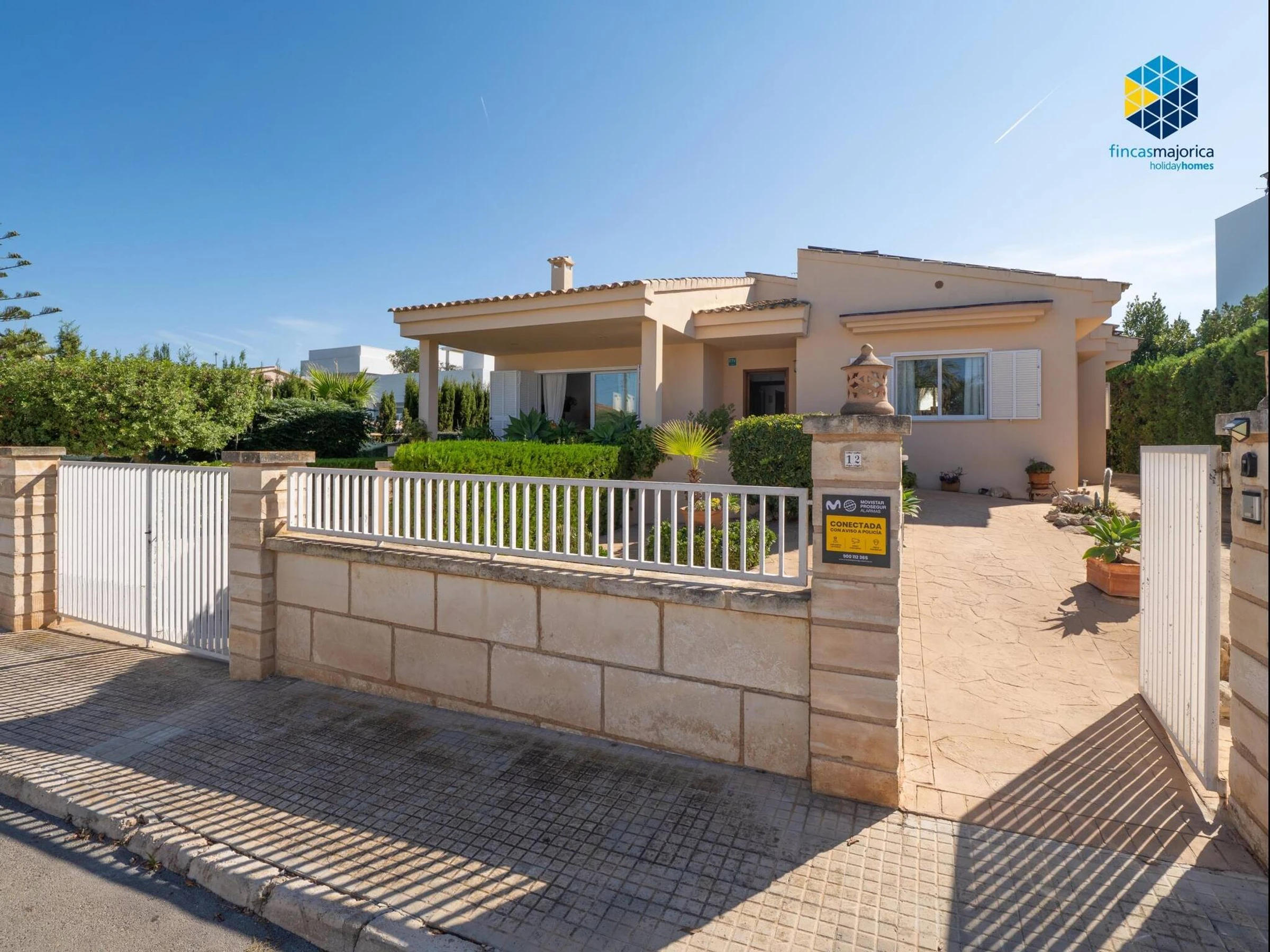 The property has 160 m² built on a spacious plot of 900 m² and features three double-bedded rooms and two bathrooms, one en suite with a shower and another with a bathtub. It offers all the amenities for a comfortable stay, including high-speed WiFi with Movistar, heating throughout the house, air conditioning in the living room and one of the main bedrooms, fans, washing machine, dryer and a fully equipped gas kitchen with Italian and American coffee makers, oven, microwave and kettle. The living-dining room has a Smart TV and direct access to the outside, where the large private swimming pool of 12 x 5 metres with different depths stands out, surrounded by six sunbeds and a gas barbecue area ideal for enjoying the outdoors. The property, which also has solar panels and free outdoor parking, is perfect for those looking to relax by the sea and enjoy the tranquillity of the Mallorcan coast.