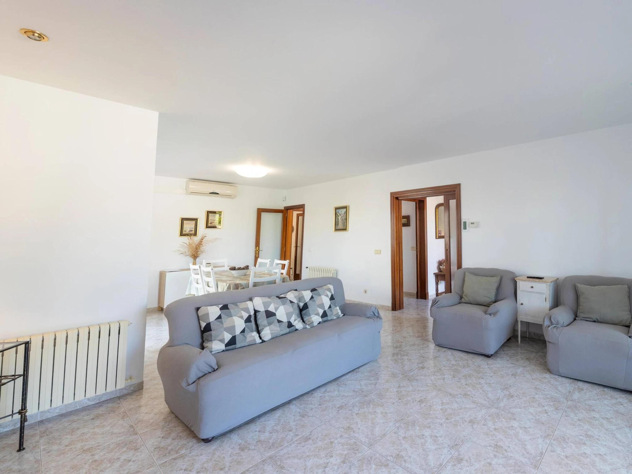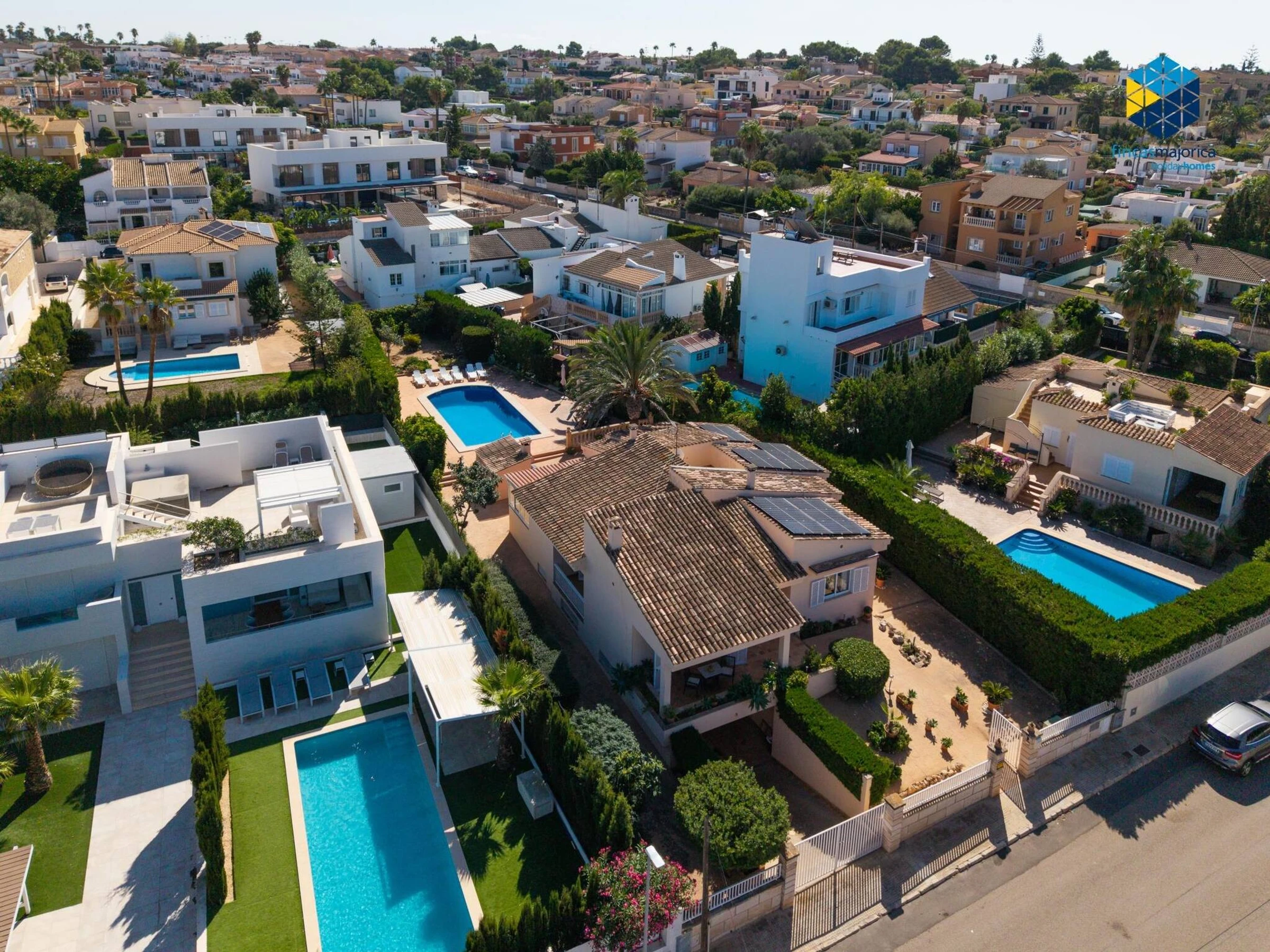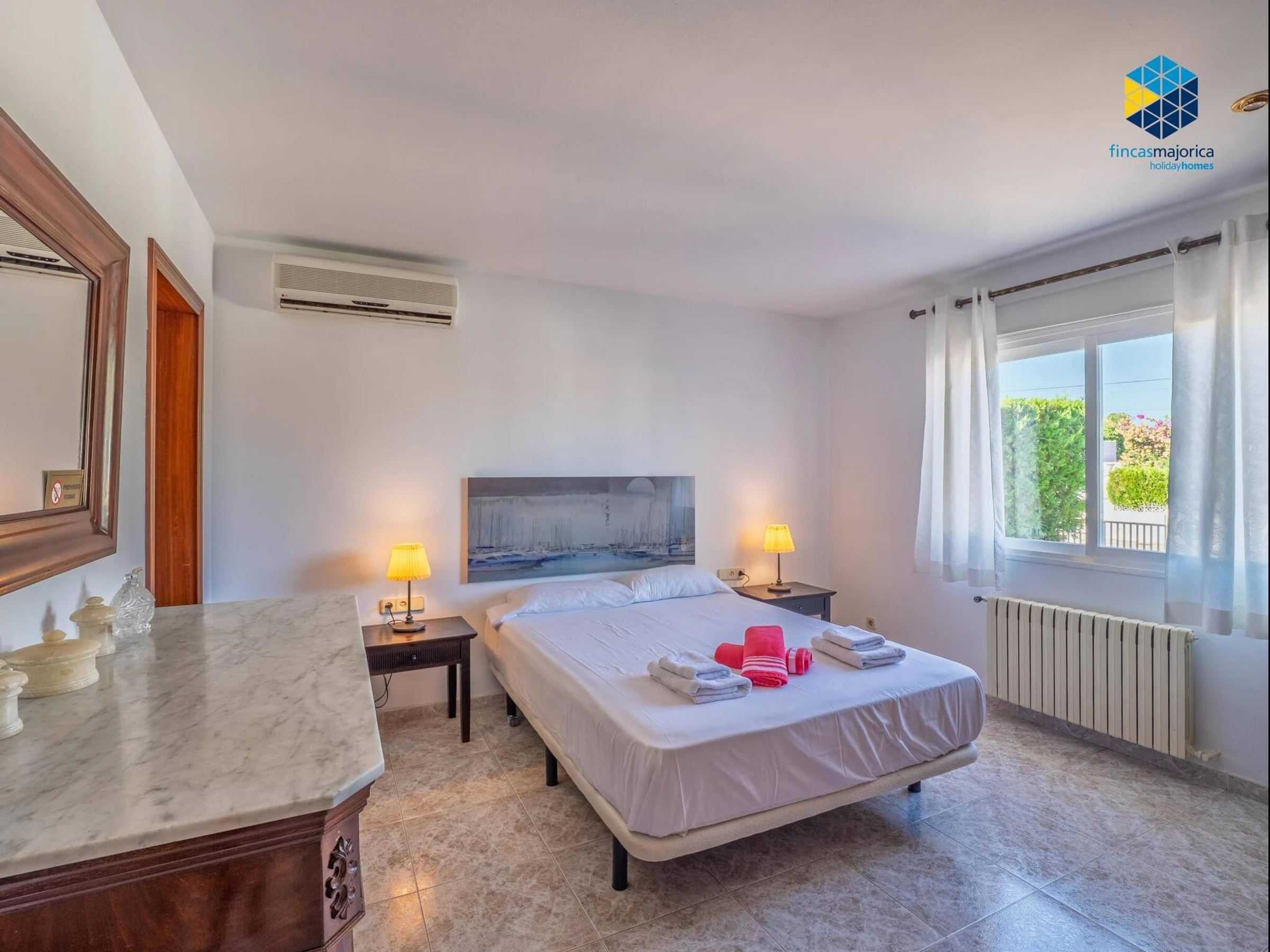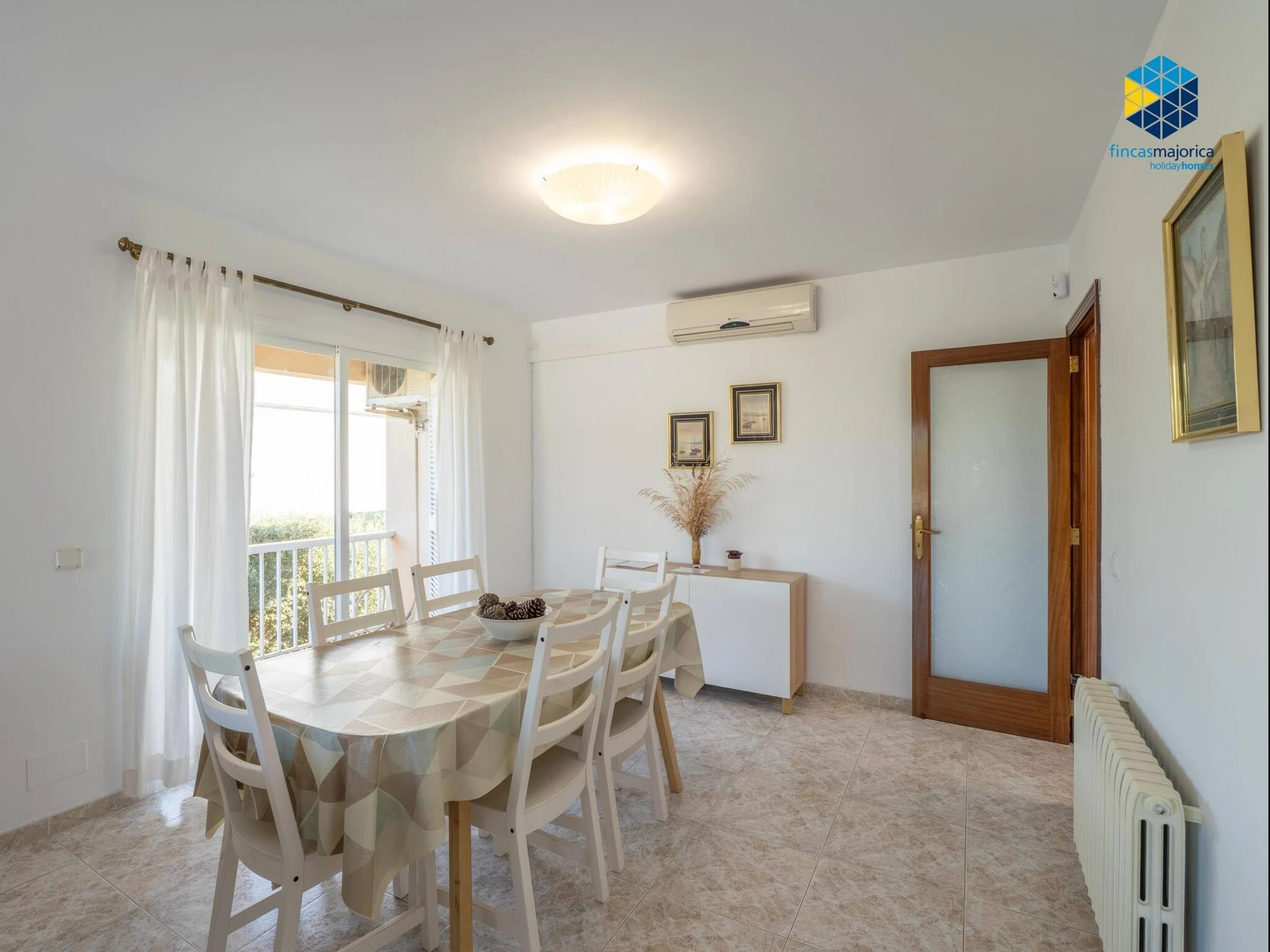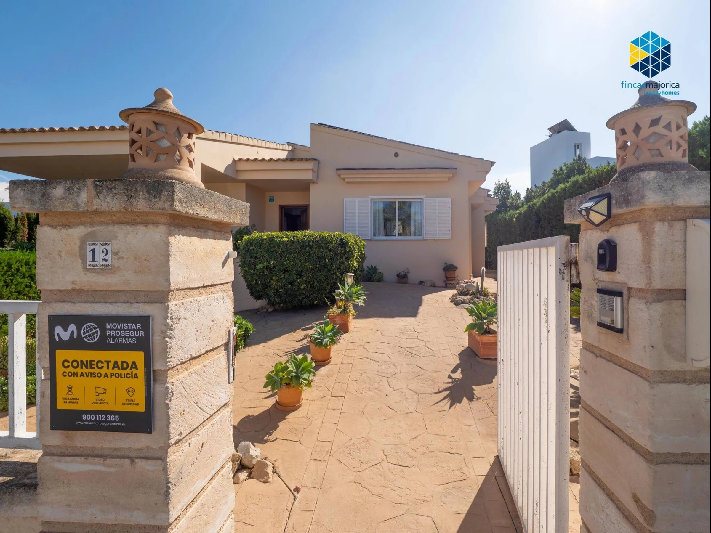 The property has 160 m² built on a spacious plot of 900 m² and features three double-bedded rooms and two bathrooms, one en suite with a shower and another with a bathtub. It offers all the amenities for a comfortable stay, including high-speed WiFi with Movistar, heating throughout the house, air conditioning in the living room and one of the main bedrooms, fans, washing machine, dryer and a fully equipped gas kitchen with Italian and American coffee makers, oven, microwave and kettle. The living-dining room has a Smart TV and direct access to the outside, where the large private swimming pool of 12 x 5 metres with different depths stands out, surrounded by six sunbeds and a gas barbecue area ideal for enjoying the outdoors. The property, which also has solar panels and free outdoor parking, is perfect for those looking to relax by the sea and enjoy the tranquillity of the Mallorcan coast.
