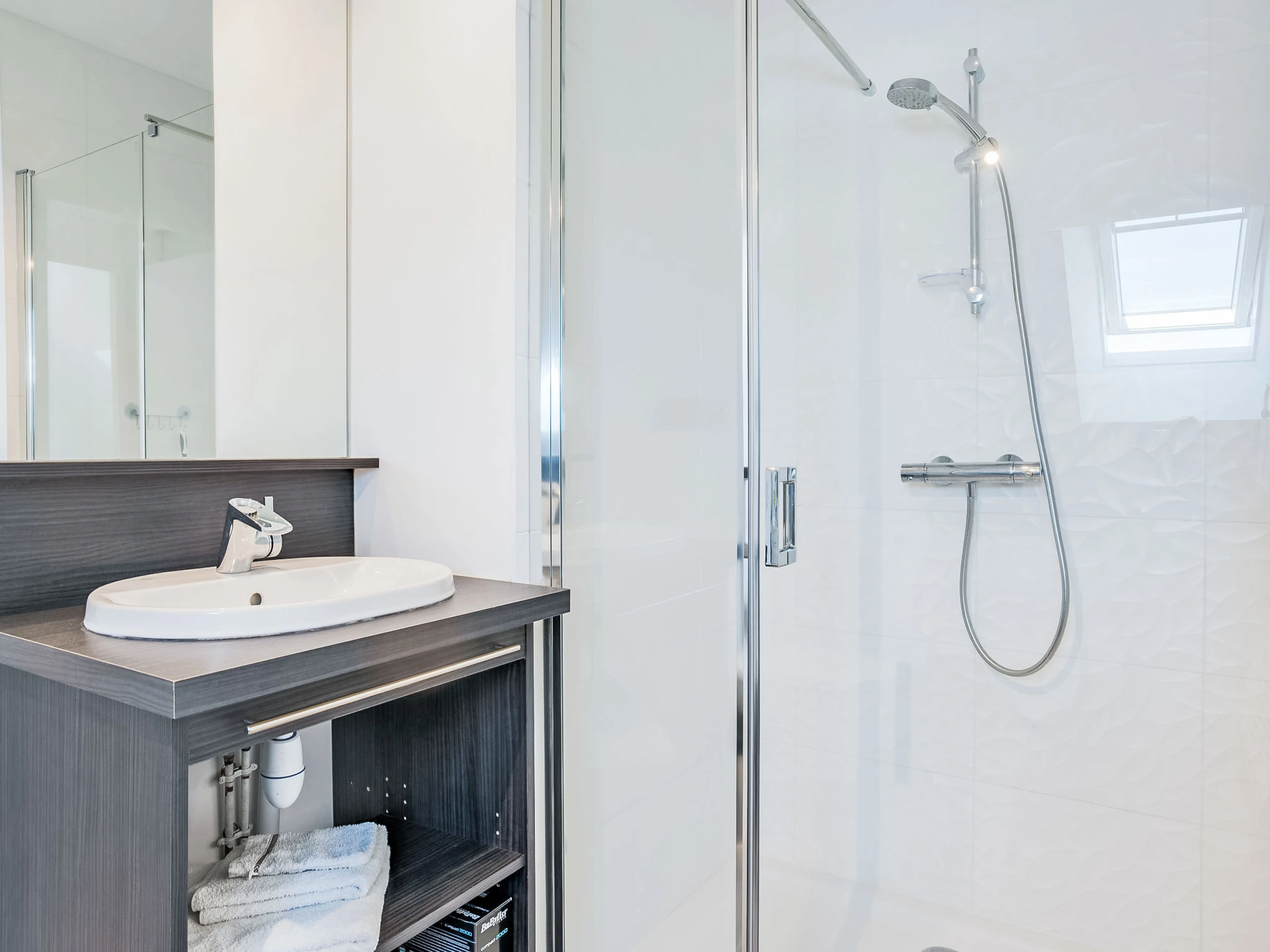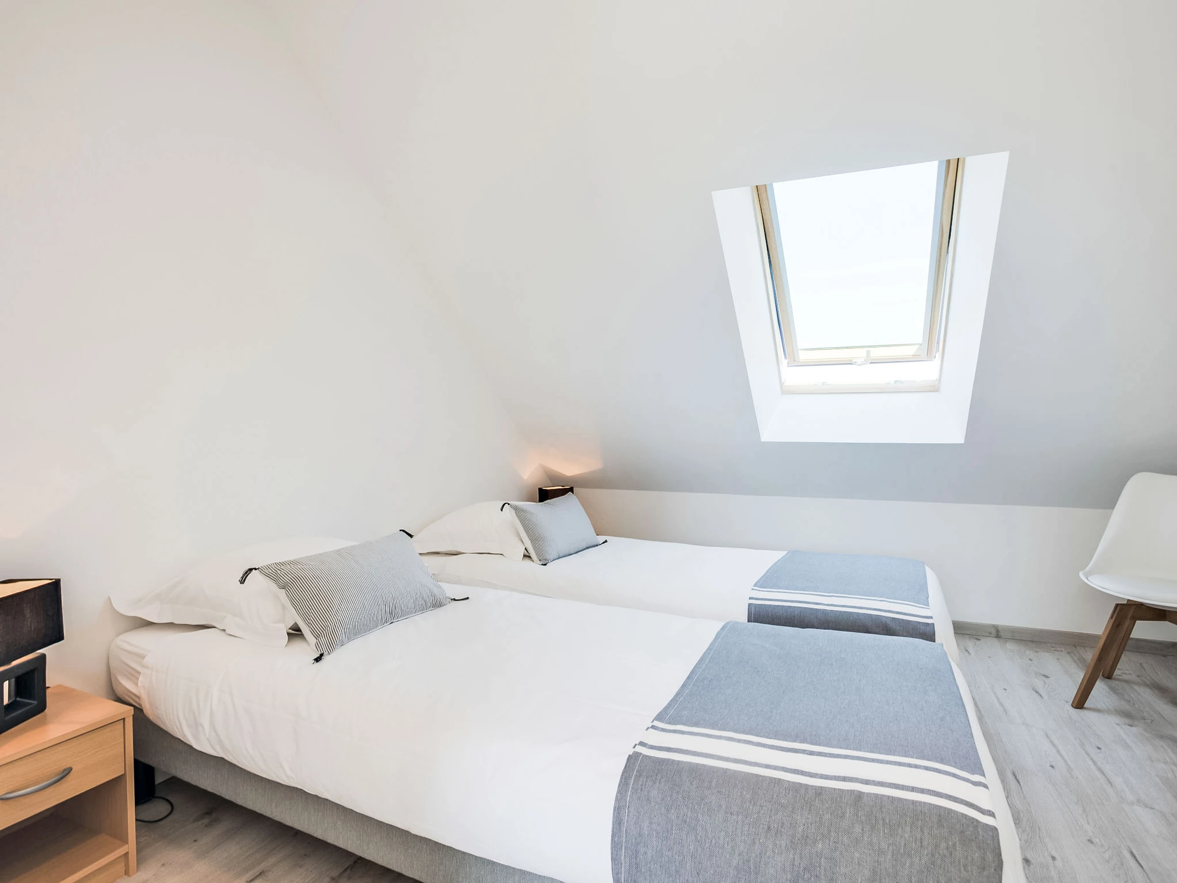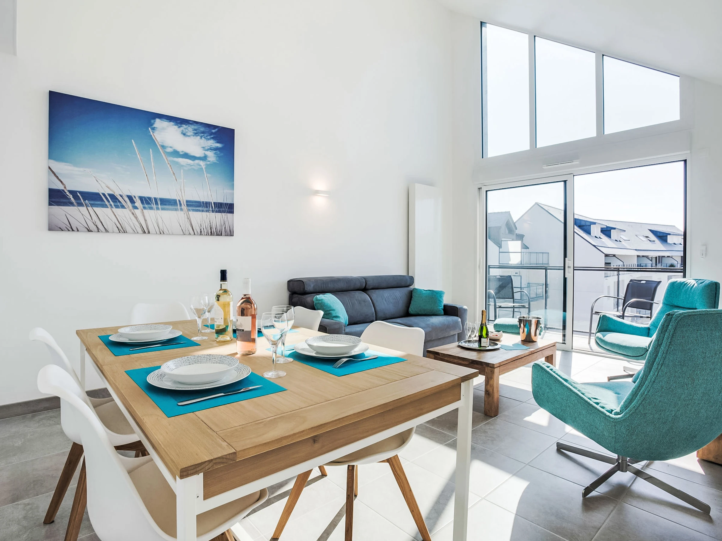Residence "Parc Océan", 50 m [hidden], 3 storeys, built in 2018. In the centre of Quiberon, in the residential district, excellent location: right in the centre but still quiet, 50 m from the sea, from the beach. In the complex: lift, storage room for bicycles. Shop 50 m, grocery, supermarket 1.3 km, restaurant, 3 minute walk to the centre, bus stop 100 m, ferry 50 m, sandy beach "Plage du Port" 50 m, indoor swimming pool 1.5 km, thermal baths "Thalassothérapie de Quiberon" 2 km. Sports harbour 1.5 km, golf course (9 hole) 1.5 km, sailing school 3 km. Nearby attractions: Presqu'ile de Quiberon, Belle ile en Mer, Houat et Hoedic, Carnac et les Alignements 18 km, La Trinité sur Mer 22 km, Vannes 50 km, Lorient 60 km. Hiking paths: Le Golfe du Morbihan. Residence with electric gates. The keys‘ handover takes place by the agency in Quiberon, 2 km.
