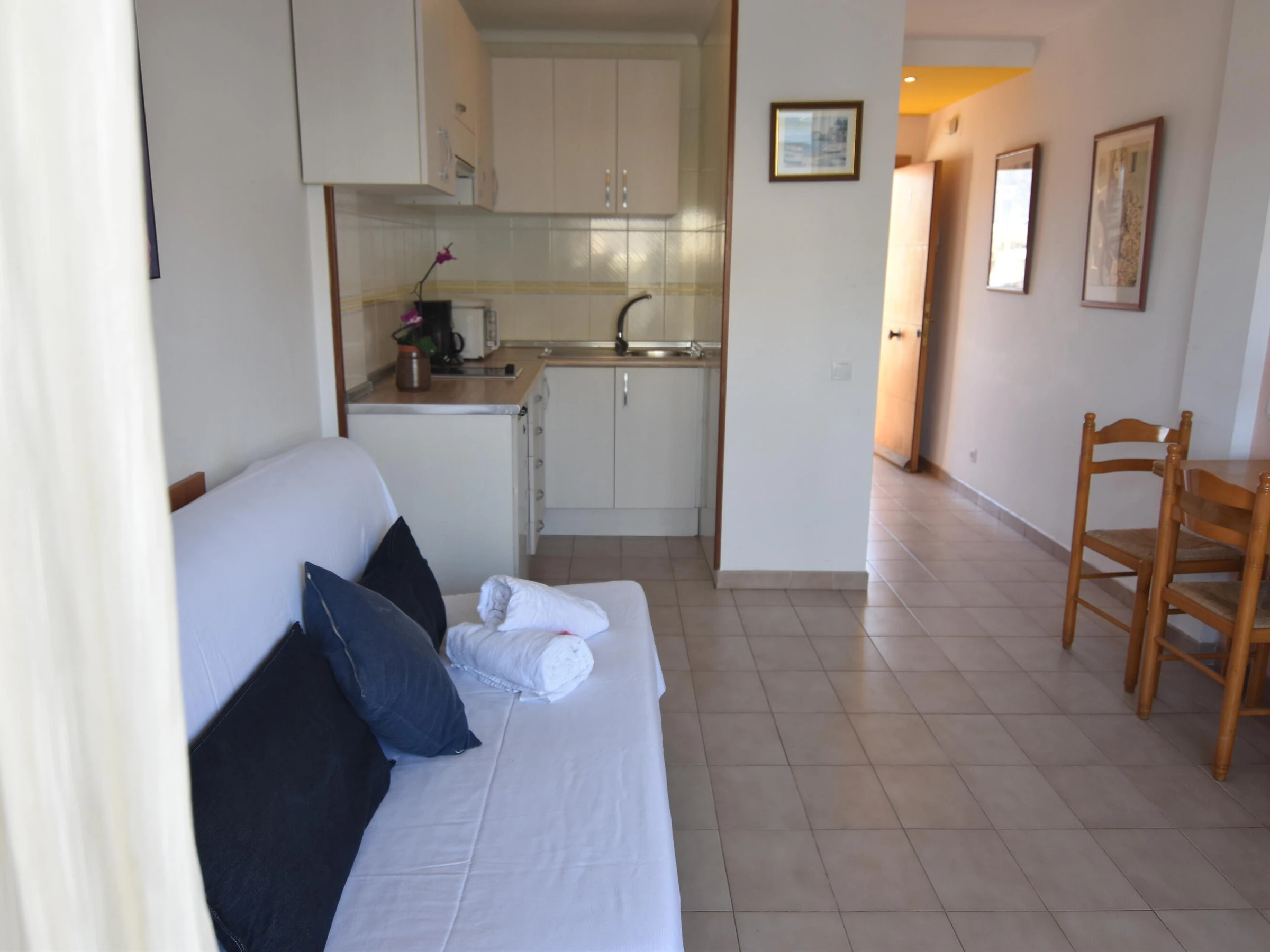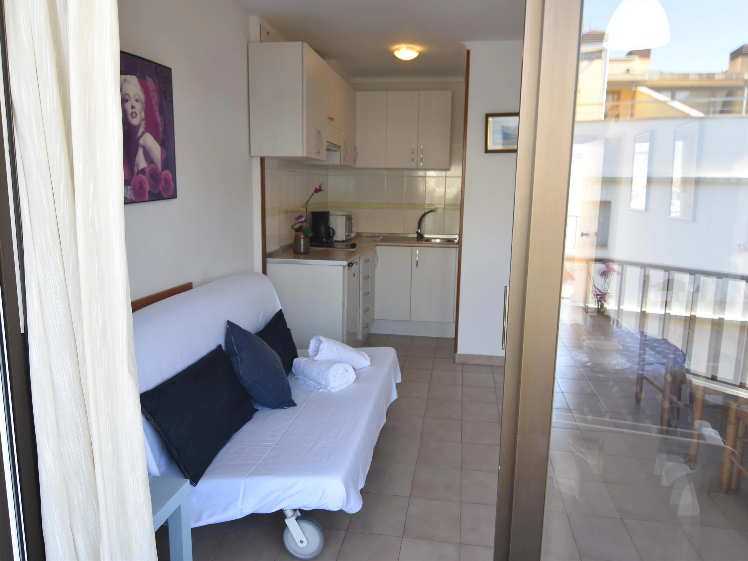 Welcome to our charming studio for rent in Roses, Costa Brava! Located just 20 meters from Santa Margarita Beach, this cozy studio is ideal for those looking to enjoy a relaxing holiday near the sea. ️ This studio in Roses (Costa Brava) accommodates up to 2 people. The 30 m² exterior accommodation is located on the beachfront. It features an elevator, terrace, iron, electric heating, air conditioning, 1 TV, and satellite TV (Languages: Spanish, English, German, Dutch, French). The electric open-plan kitchen is equipped with a refrigerator, microwave, freezer, washing machine, dishes/cutlery, kitchen utensils, coffee maker, and toaster. The studio is located in a family-friendly area, right by the sea. ️ In case of a group of young people, please consult conditions. The studio is located: ️ 20 m from the sandy beach; Salata 200 m from the Joncar Mar supermarket ️ 1 km from the city of Roses 3 km from the Roses/Sarfa bus station 3 km from the Aquabrava water park ️ 5 km from the Almadrava rocky beach 17 km from the Peralada golf course 17 km from the Figueres train station ️ 80 km from Girona Airport