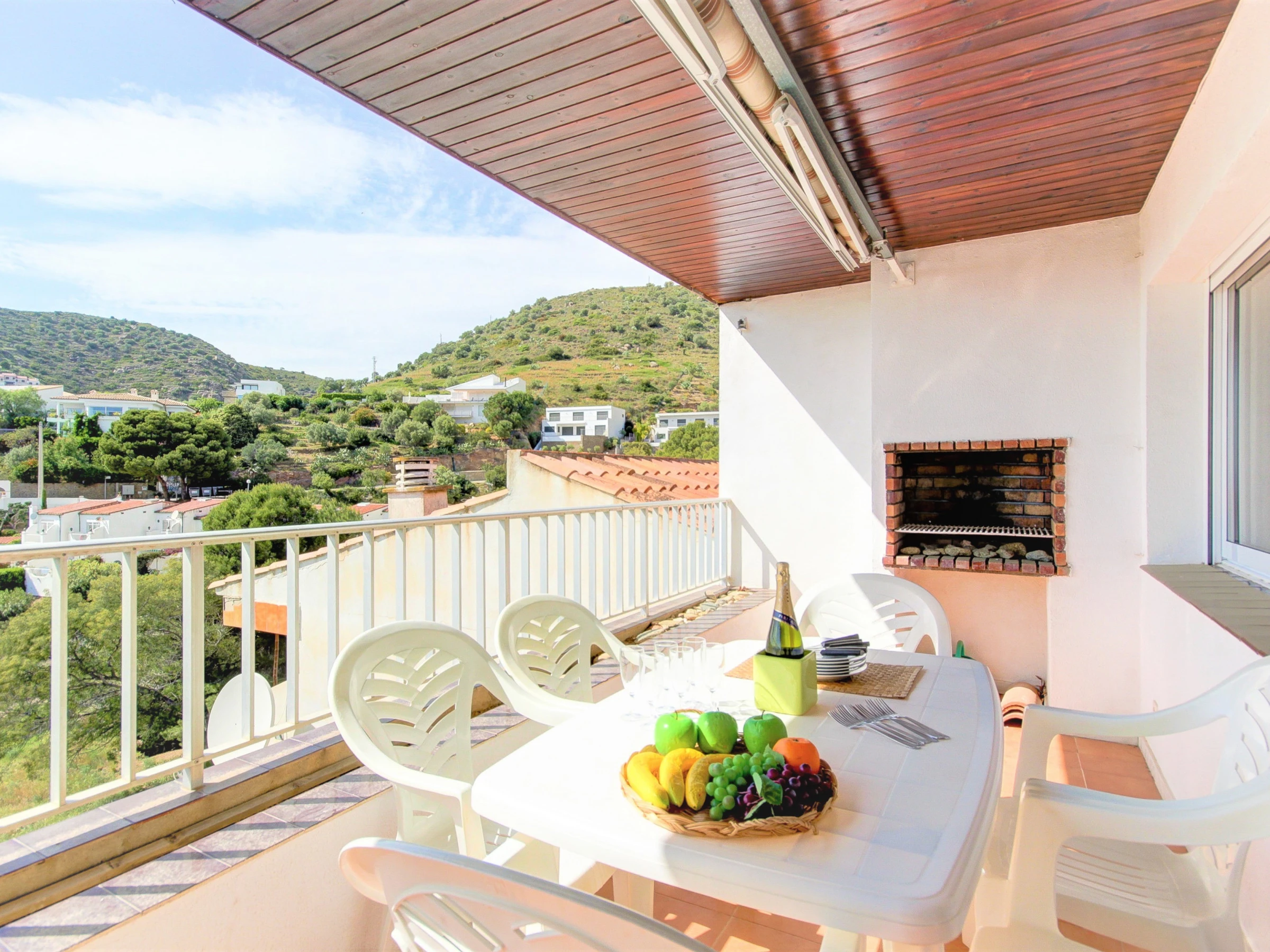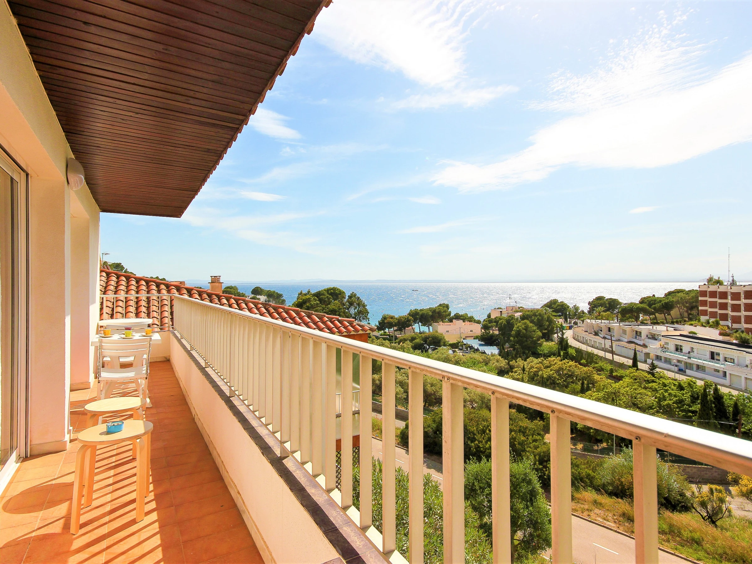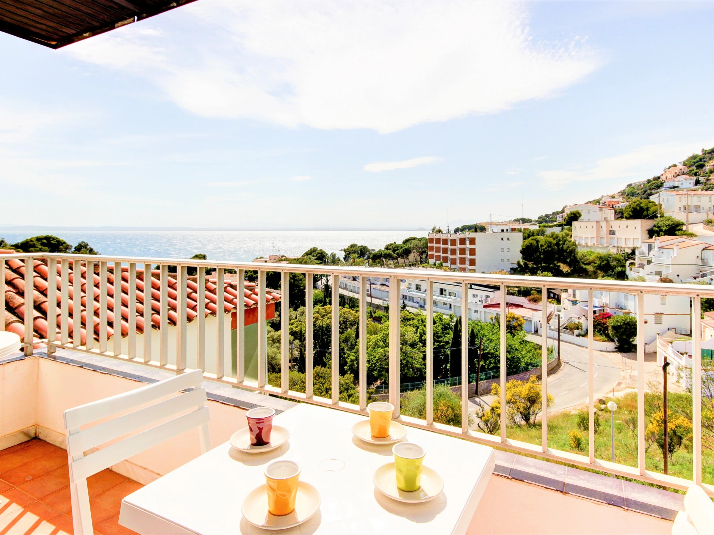 - Balcony (12 m2) with outdoor furniture and spectacular view of the Bay of Roses..