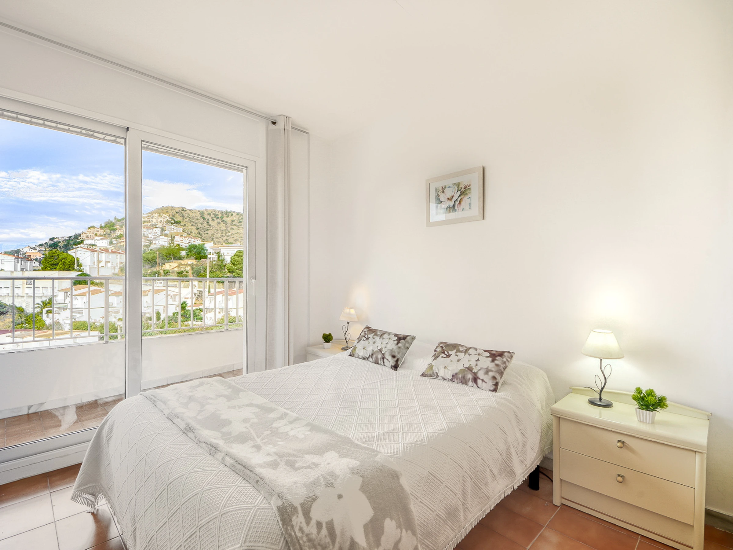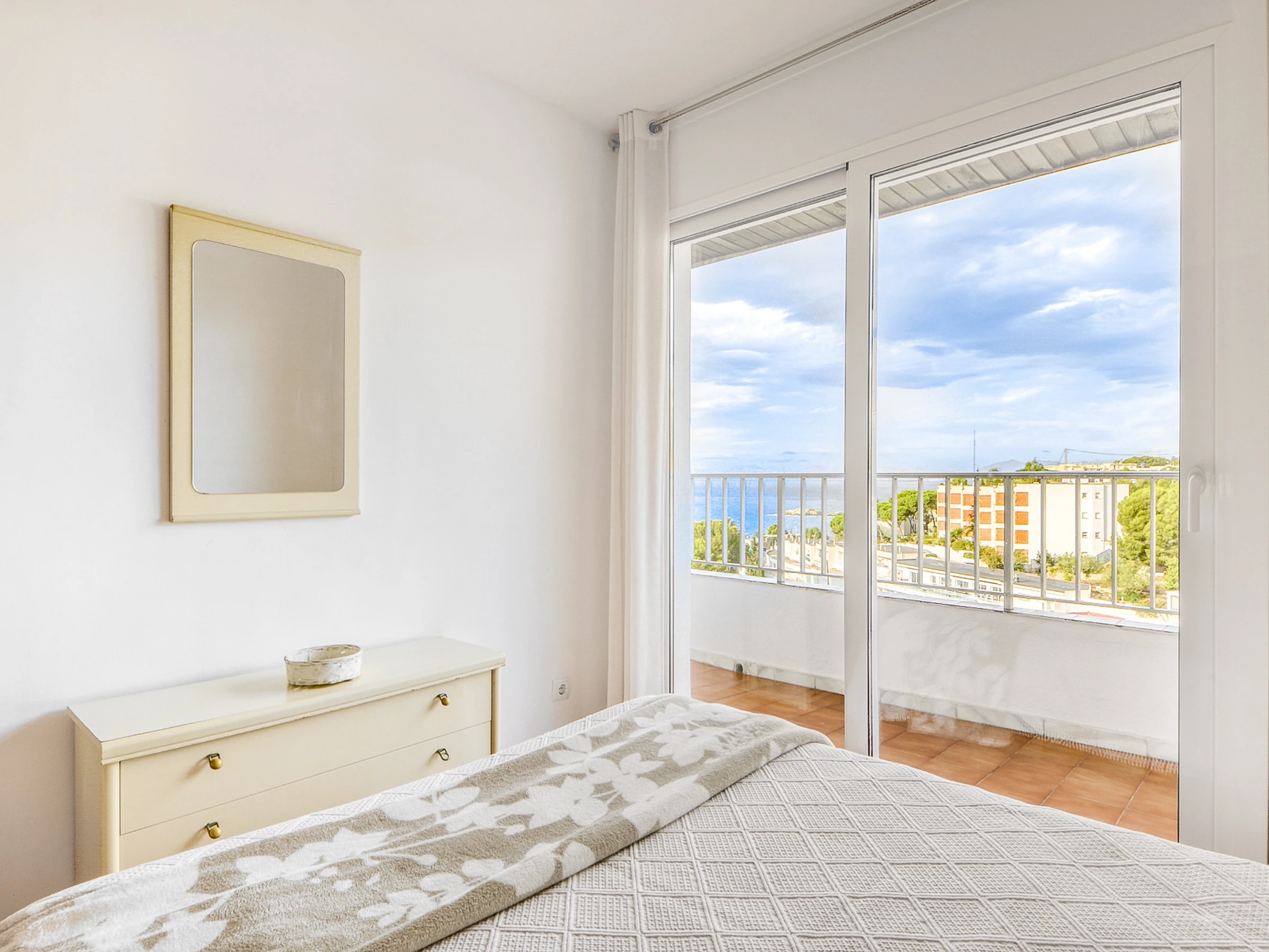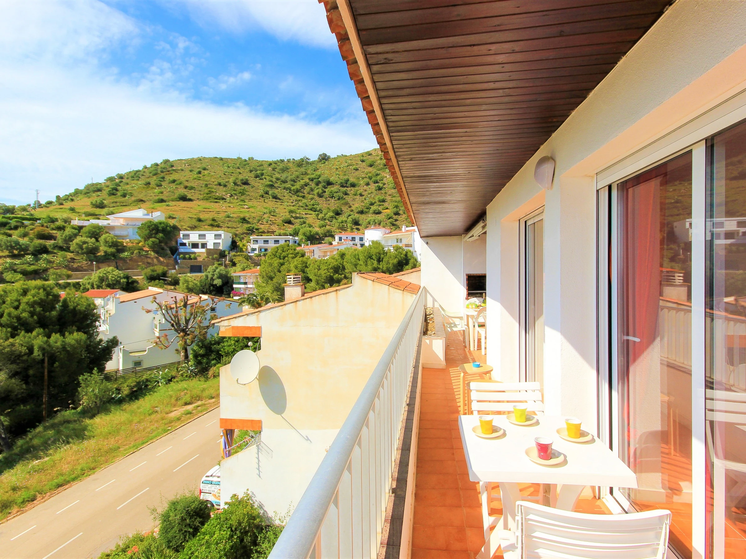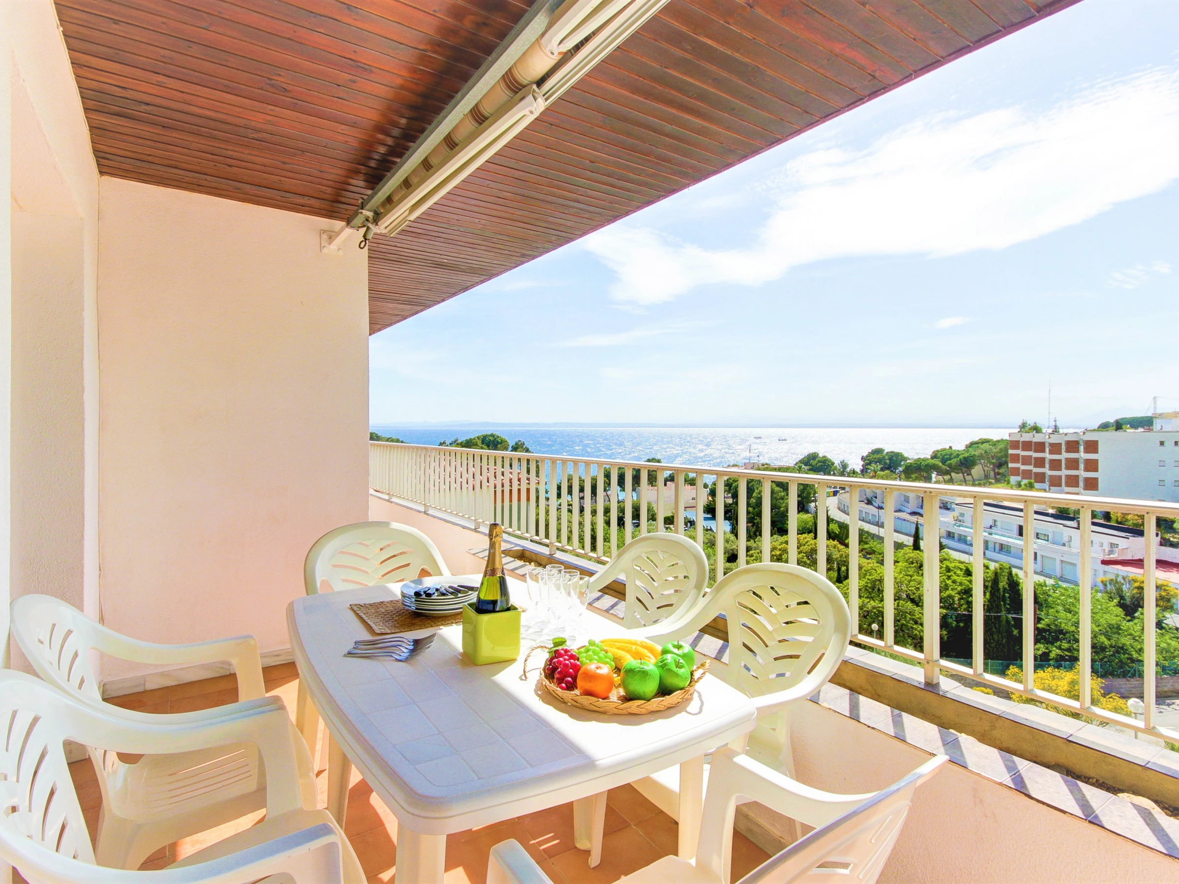 - Balcony (12 m2) with outdoor furniture and spectacular view of the Bay of Roses..