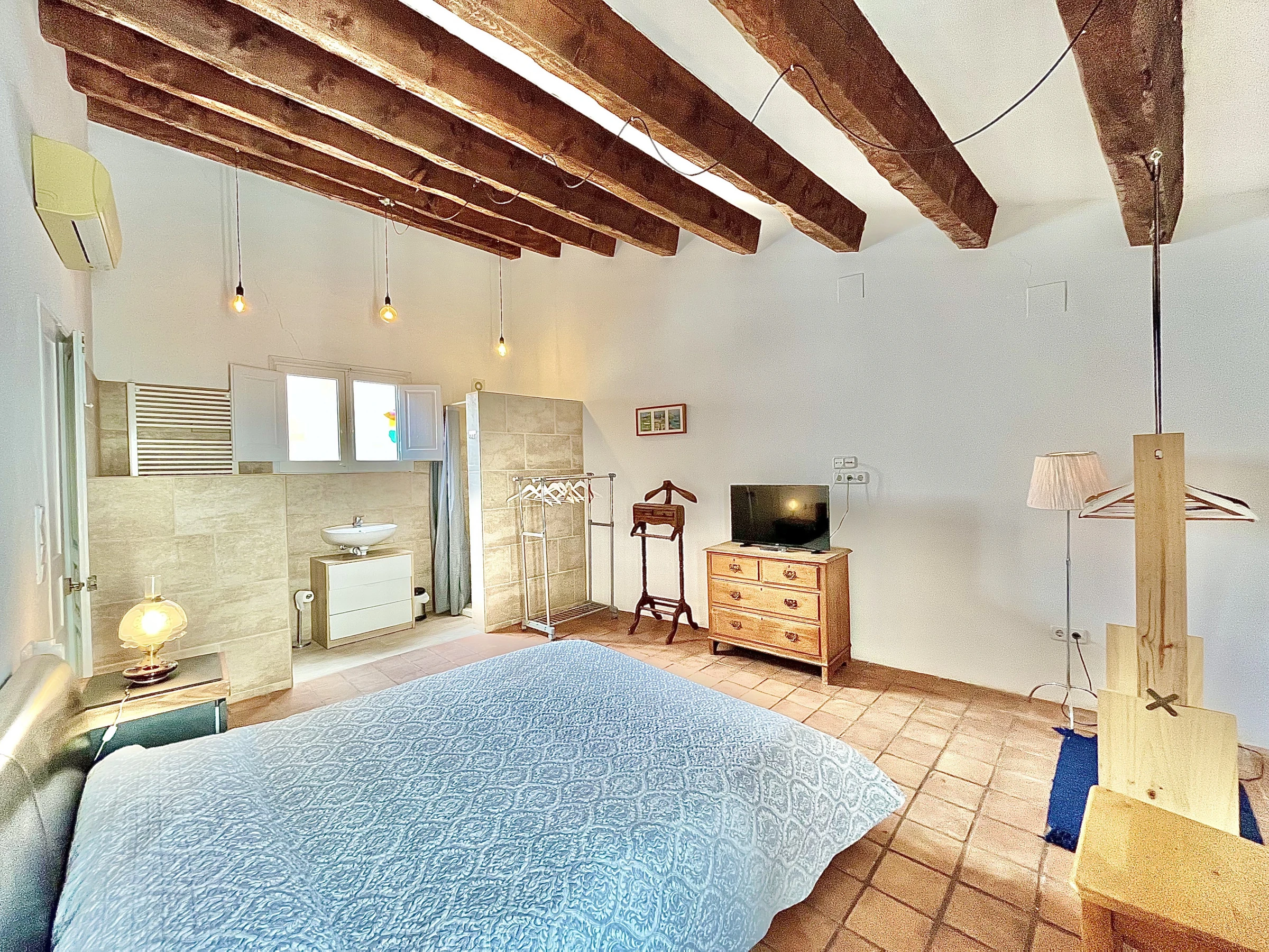It has 2 double en-suite bedrooms with wardrobes on the second floor. On the ground floor, there is a large fully equipped kitchen and a bedroom of over 20 m² with a full bathroom and laundry room.