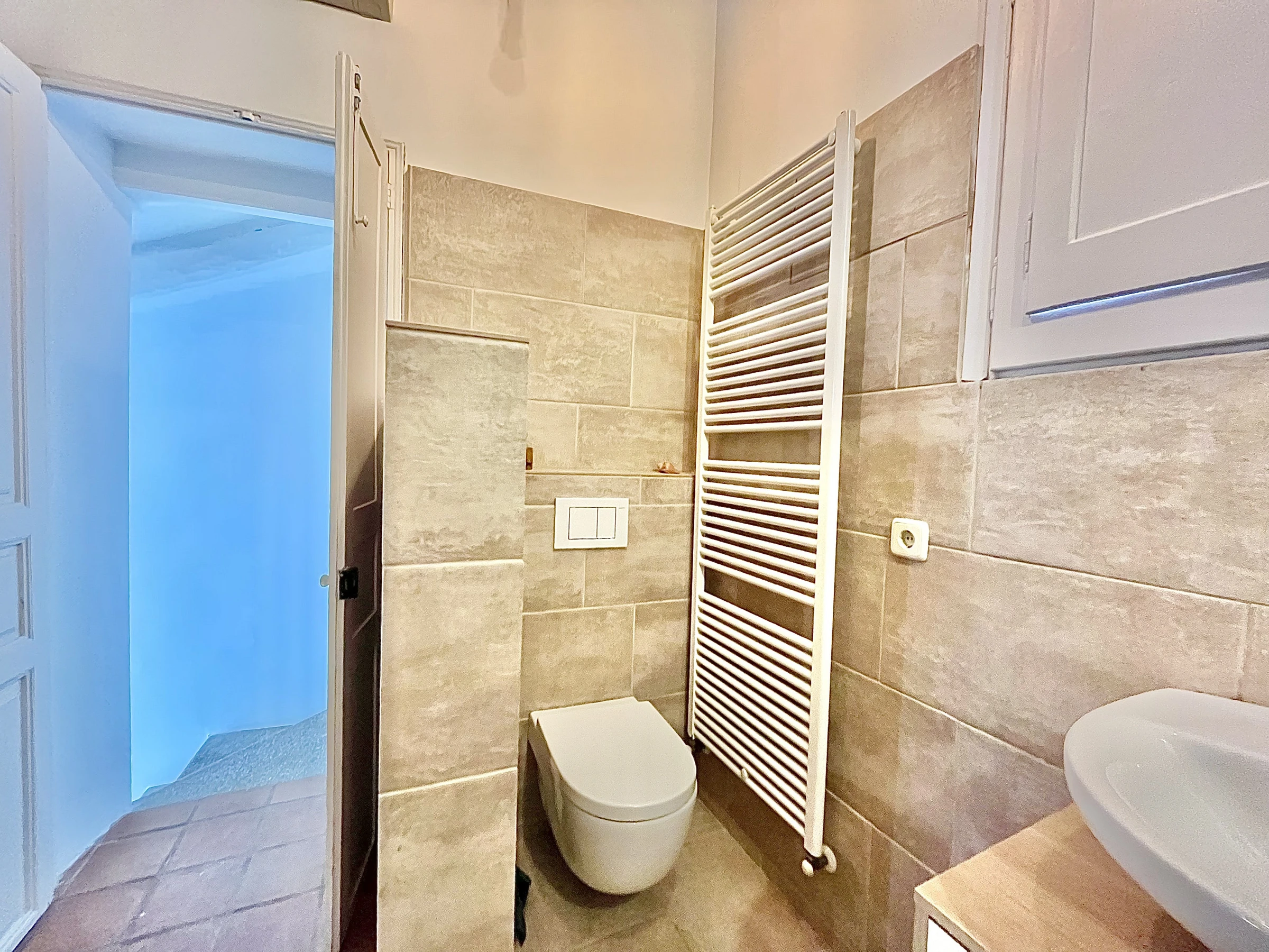 On the third floor is the third bedroom with a private bathroom and a small balcony overlooking the inner pedestrian street.