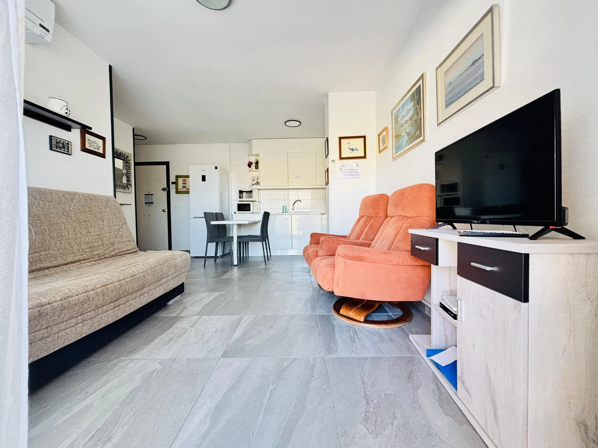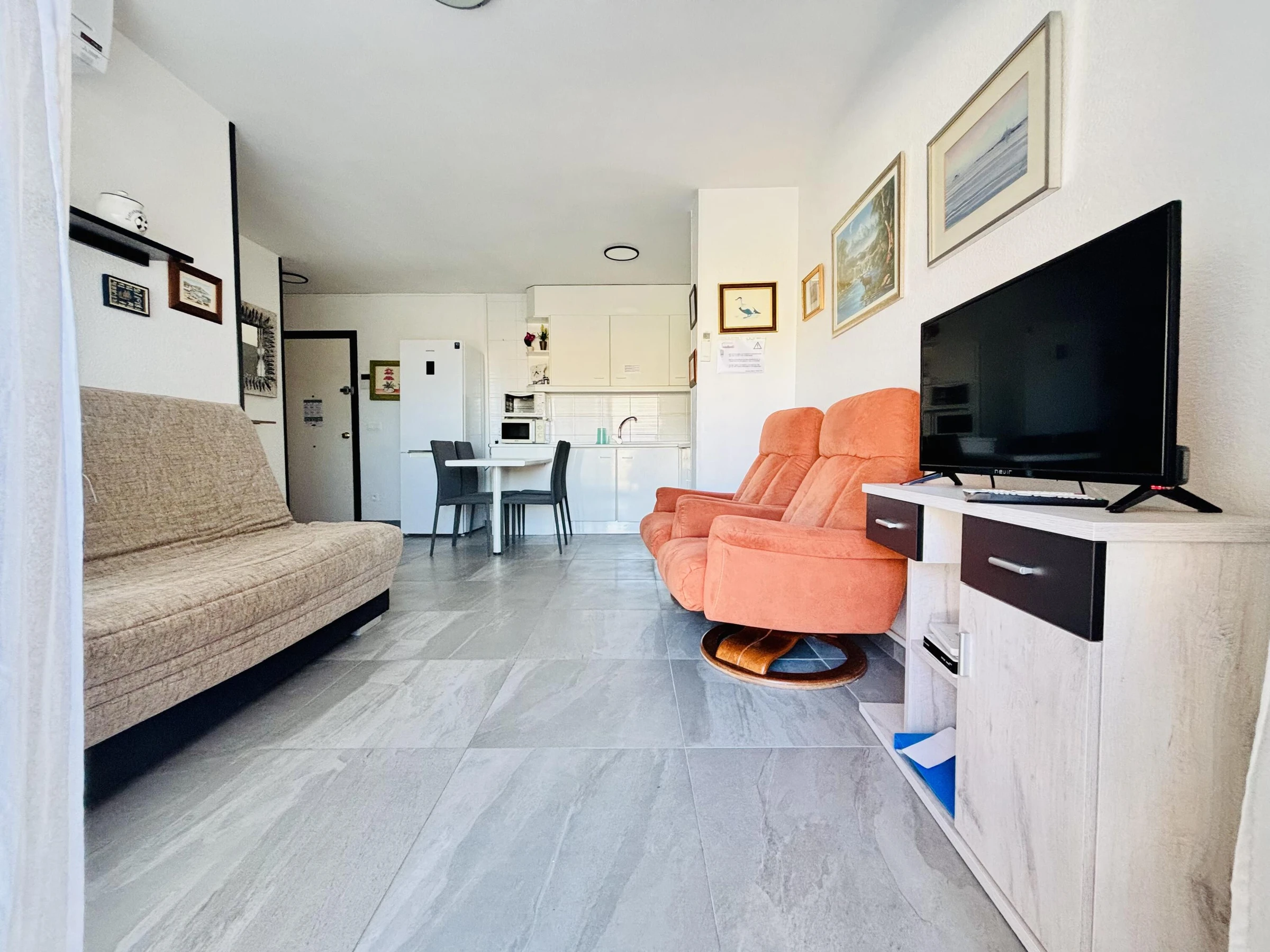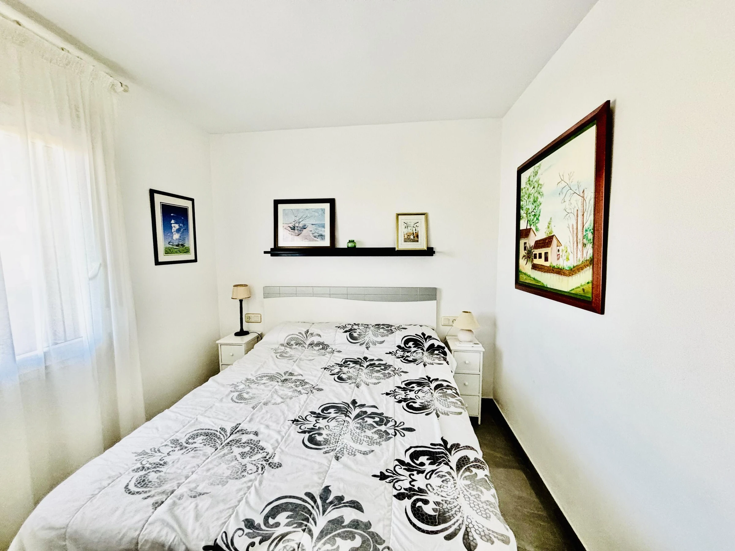 If you are looking for a place in the center of Roses with sea views, this one bedroom apartment is ideal for you. Located right in front of the fishing port and only 300 meters from the city center, this apartment is perfect for those who want to enjoy the beach, the sea and the city life. The apartment has one bedroom with a comfortable double bed (135 cm) and a double sofa bed in the spacious dining room. The kitchenette is equipped with everything you need to cook delicious meals. The apartment also has a full bathroom and a terrace with stunning sea views. To ensure your comfort, the apartment is equipped with air conditioning. The nearest beach is only 300 meters away, and you will find a variety of stores, restaurants and entertainment venues in the area. Also, if you like to explore the area, the apartment is only 21 km from Cadaqués, 6 km from Cala Pelosa and 4 km from Cala Montjoi. Book your stay now and enjoy an unforgettable vacation in Roses!