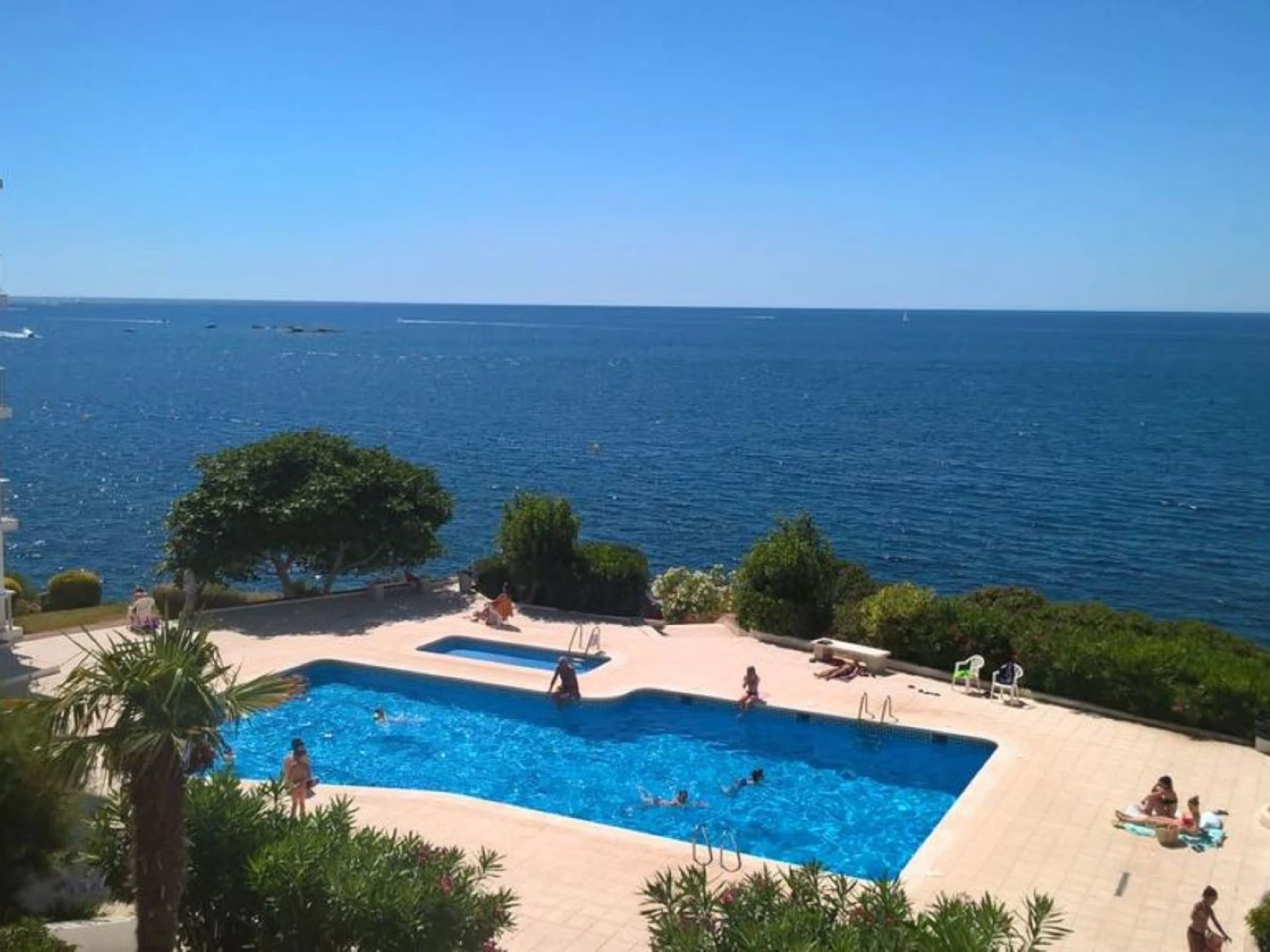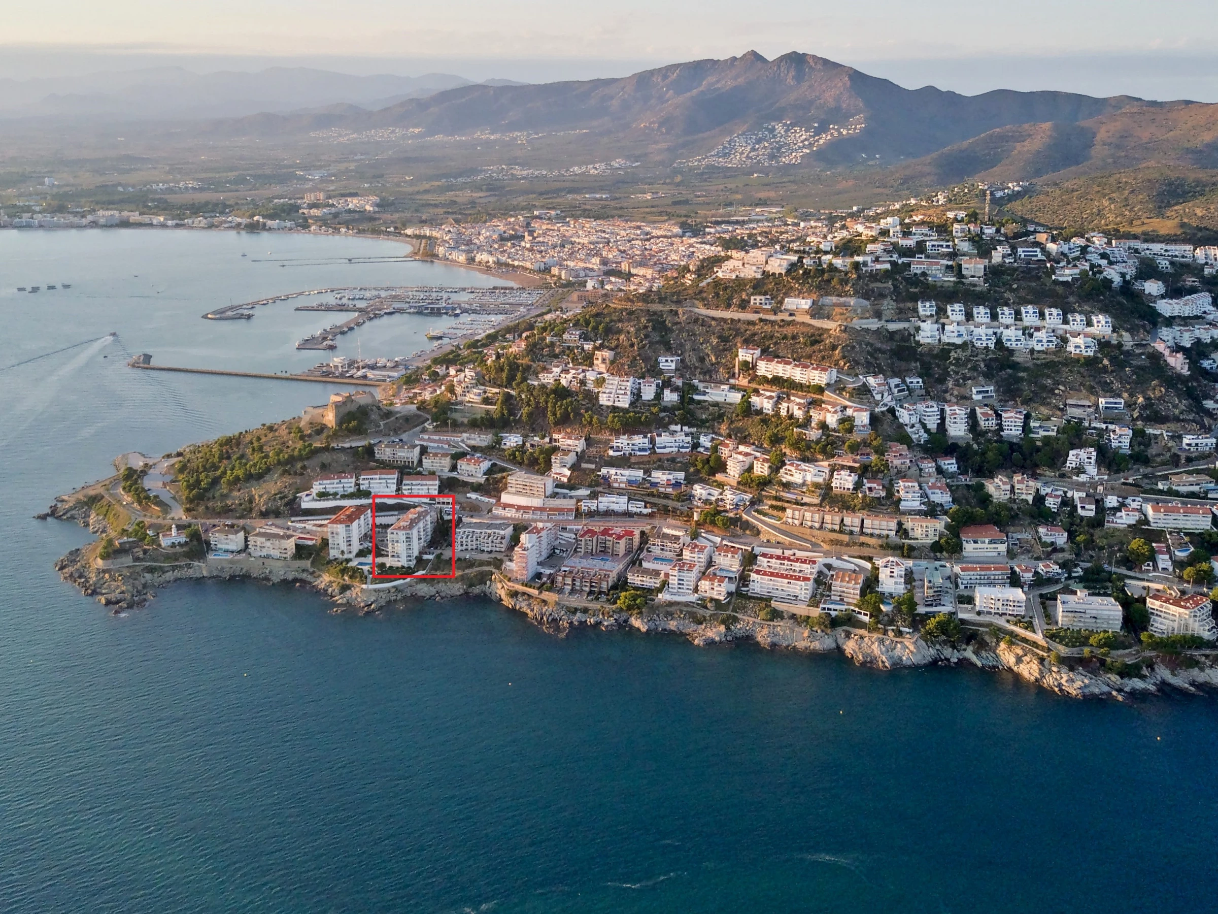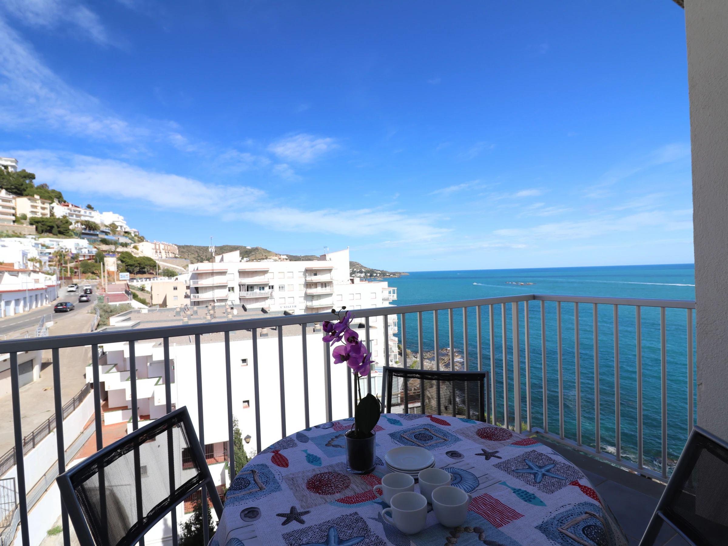 Immo Barneda Roses . This beautiful flat is located on the ninth floor with lift, communal pool and spectacular sea views. It is distributed in a living/dining room with open kitchen and exit to a terrace with magnificent views. It consists of two bedrooms and a bathroom. Excellent location, in front of the sea and 600 metres from the town centre.