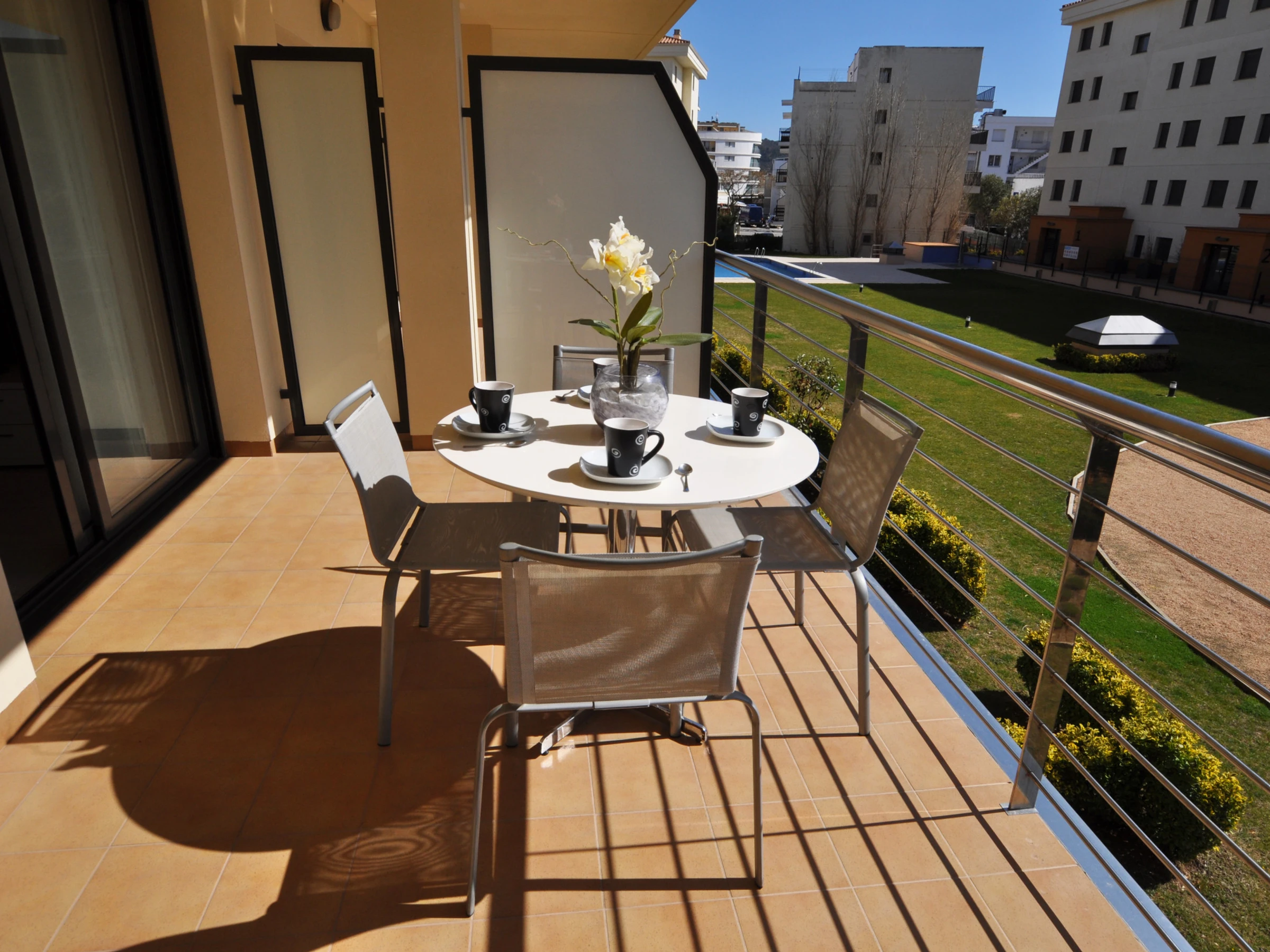 The accommodation is equipped with the following items: lift, garden, garden furniture, fenced garden, 8 m² terrace, iron, internet (Wi-Fi), air conditioning (hot/cold), air conditioning throughout the house, communal swimming pool, garage the same building, 1 TV, tv satellite (Languages: Spanish, English, German, French).