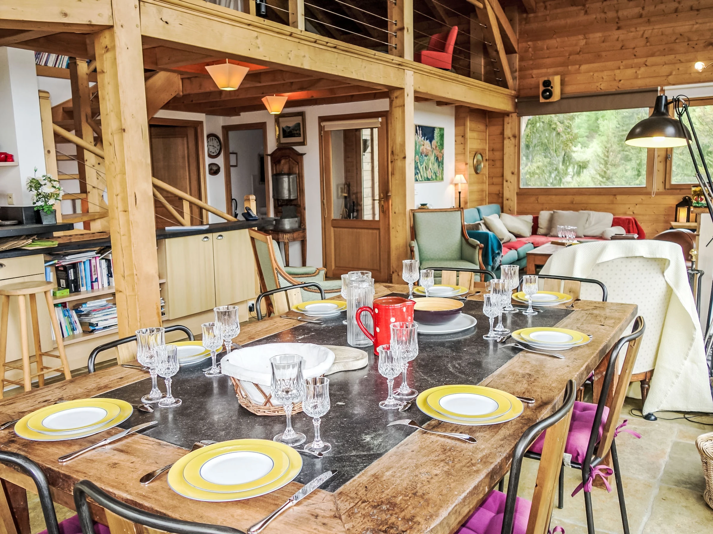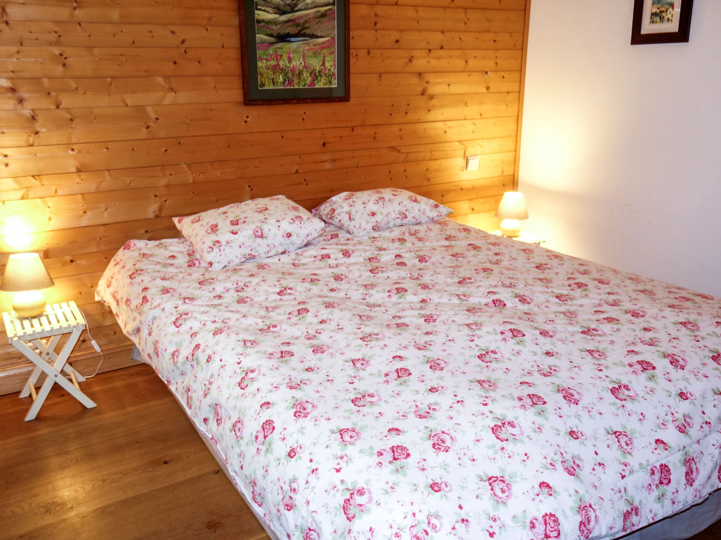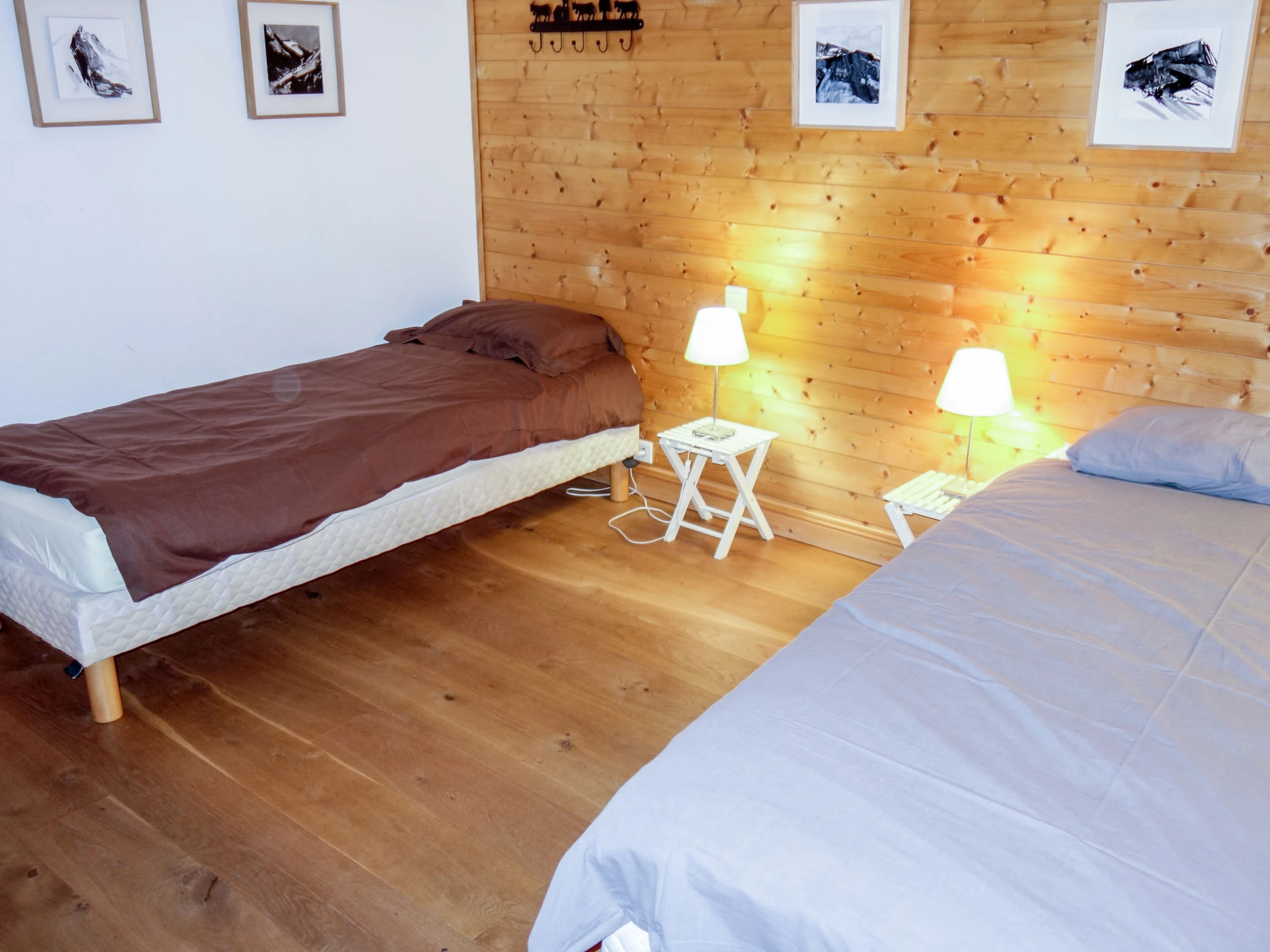 "L'Epachat", 7-room chalet 200 m2 on 3 levels. Very comfortable and beautiful furnishings: entrance hall. Living/dining room 60 m2 with open-hearth fireplace, separate WC, radio and hi-fi system. 1 room with 1 french bed (160 cm), bath/WC. Exit to the terrace. Kitchen (4 hot plates, oven, dishwasher, toaster, kettle, microwave, freezer, electric coffee machine, raclette grill). On the lower ground floor: 1 room with 1 french bed (160 cm), shower/WC. Exit to the garden. 1 room with 1 french bed (160 cm). Exit to the garden. 1 room with 2 beds (80 cm). Exit to the garden. Bathroom, shower/WC, sep. WC. Upper floor: lounge with library, satellite TV and flat screen. 1 room with 2 beds (80 cm). Bathroom, sep. WC. Balcony 39 m2. Very beautiful view of the mountains and the valley. Facilities: washing machine, dryer. Internet (WiFi, free). Parking (roofed, 2 cars). Please note: non-smoking house. TV only FR. Smoke alarm. Offer by a private individual according to Art. 155, IV of CGI.