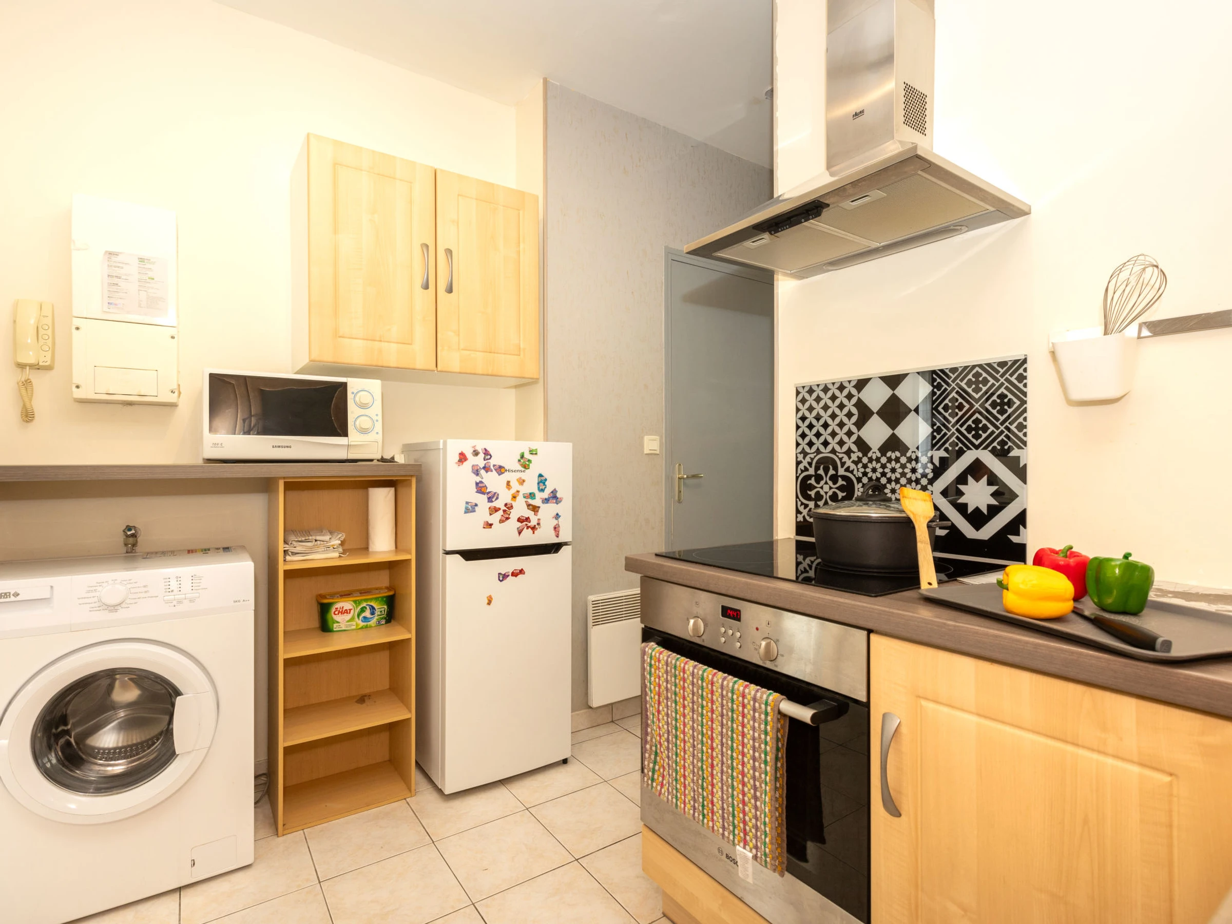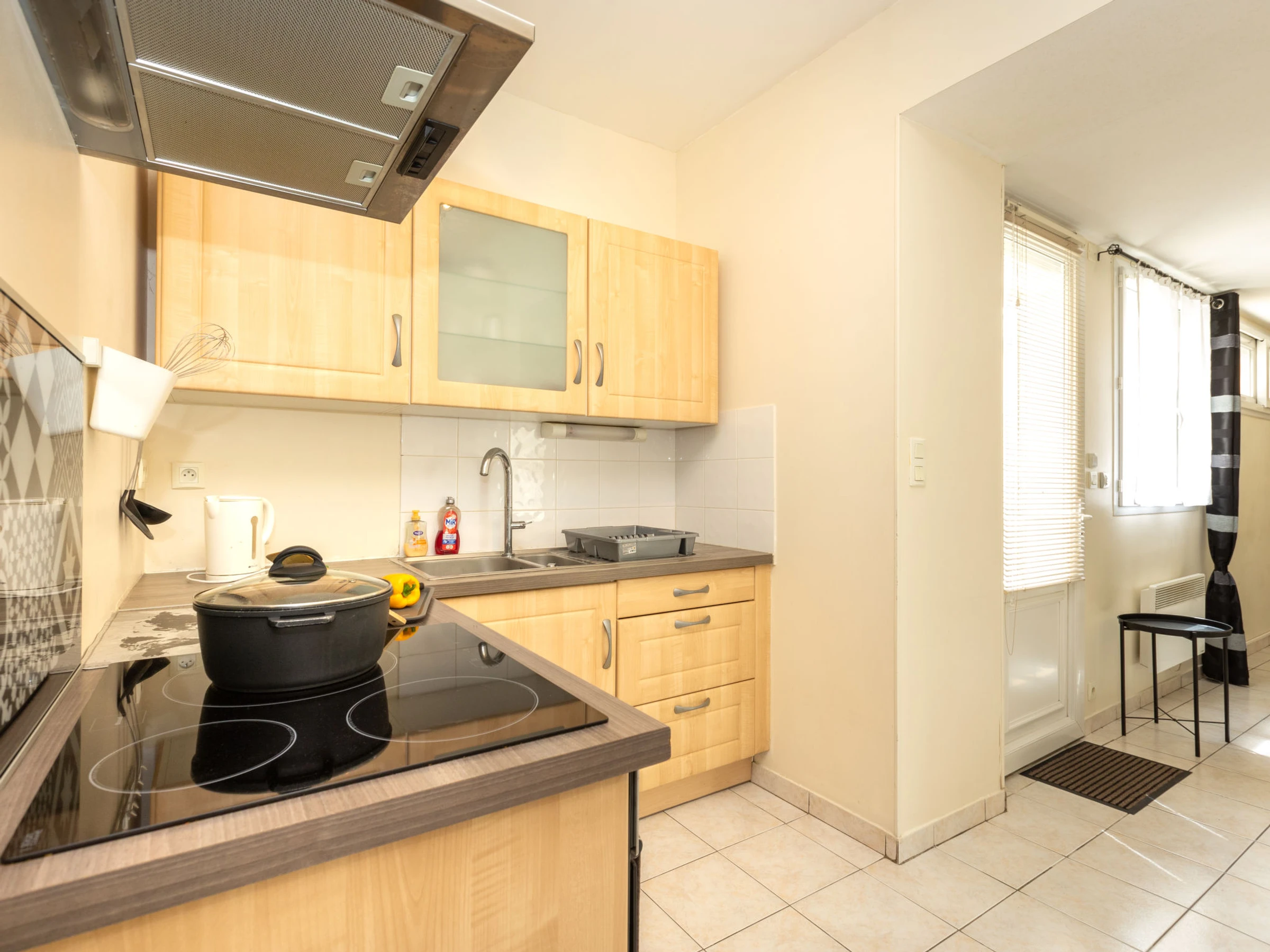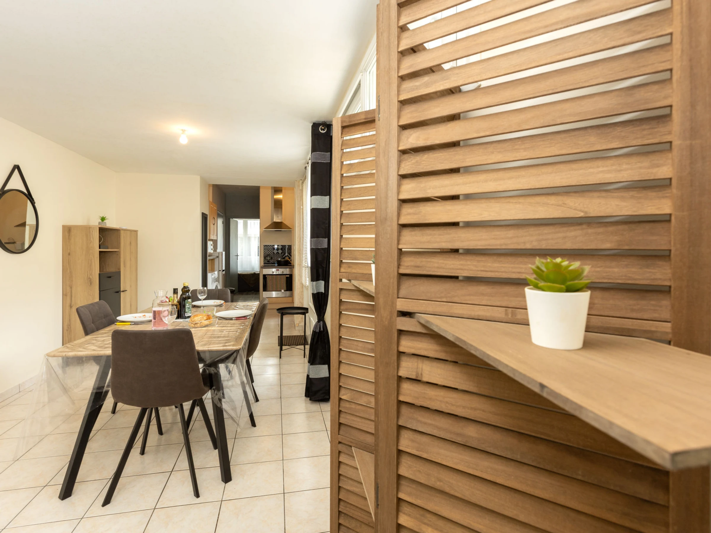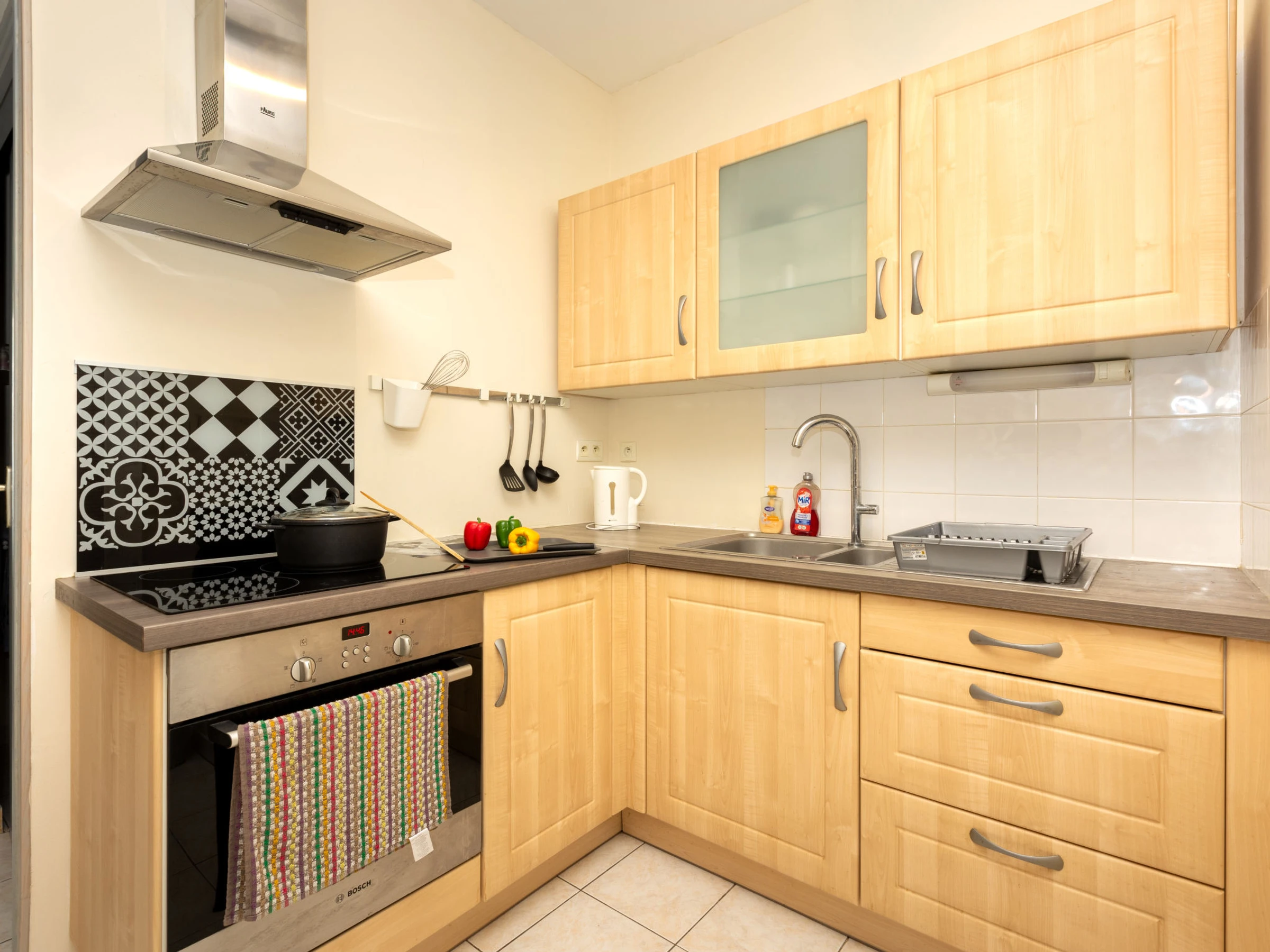 "Ange", 2-room apartment 43 m2, on the ground floor. Comfortable and tasteful furnishings: living/dining room with TV (flat screen). 1 room with 1 french bed (1 x 140 cm, length 190 cm). Open kitchen (oven, 3 induction hot plates, toaster, kettle, microwave, freezer, electric coffee machine). Bathroom, sep. WC. Electric heating. Heating available only from 15.10. to 15.04. Small terrace 4 m2. Terrace furniture. Facilities: washing machine. Internet (WiFi, free). Please note: apartment courtyard side. Smoke alarm. Offer by a private individual according to Art. 155, IV of CGI. [hidden]