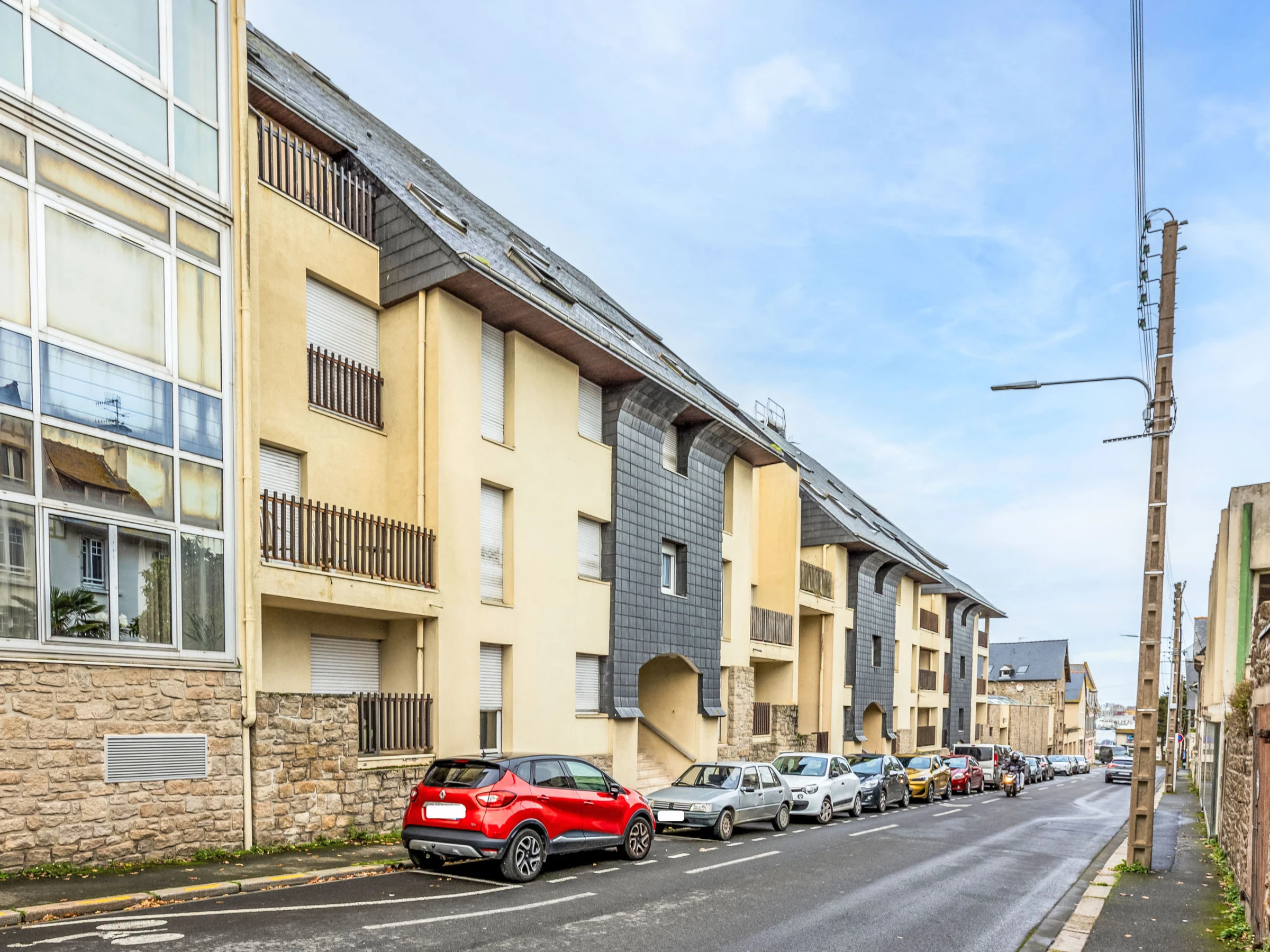 Apartment house "Pomellec", 4 storeys. In the district of Saint Servan, in the residential district, excellent location: right in the centre but still quiet, in the heart of the city, 80 m from the sea, 500 m from the beach. For shared use: park (fenced) with lawn and trees. In the complex: lift, storage room for bicycles. Shop 100 m, supermarket 500 m, shopping centre 800 m, bakery 200 m, bus stop "Mairie de St Servan" 80 m, railway station "Gare TGV St Malo" 1.5 km, ferry "Gare maritime du Naye" 700 m, sandy beach "bas sablons" 500 m, thermal baths "Thermes marin de Saint Malo" 3.1 km. Nearby attractions: grand aquarium de St Malo 2.1 km, Cancale 17 km, Dinan 31 km, Dinard 9.4 km, Dol de Bretagne 27 km. The keys‘ handover takes place by the agency in Saint Malo, 1 km.