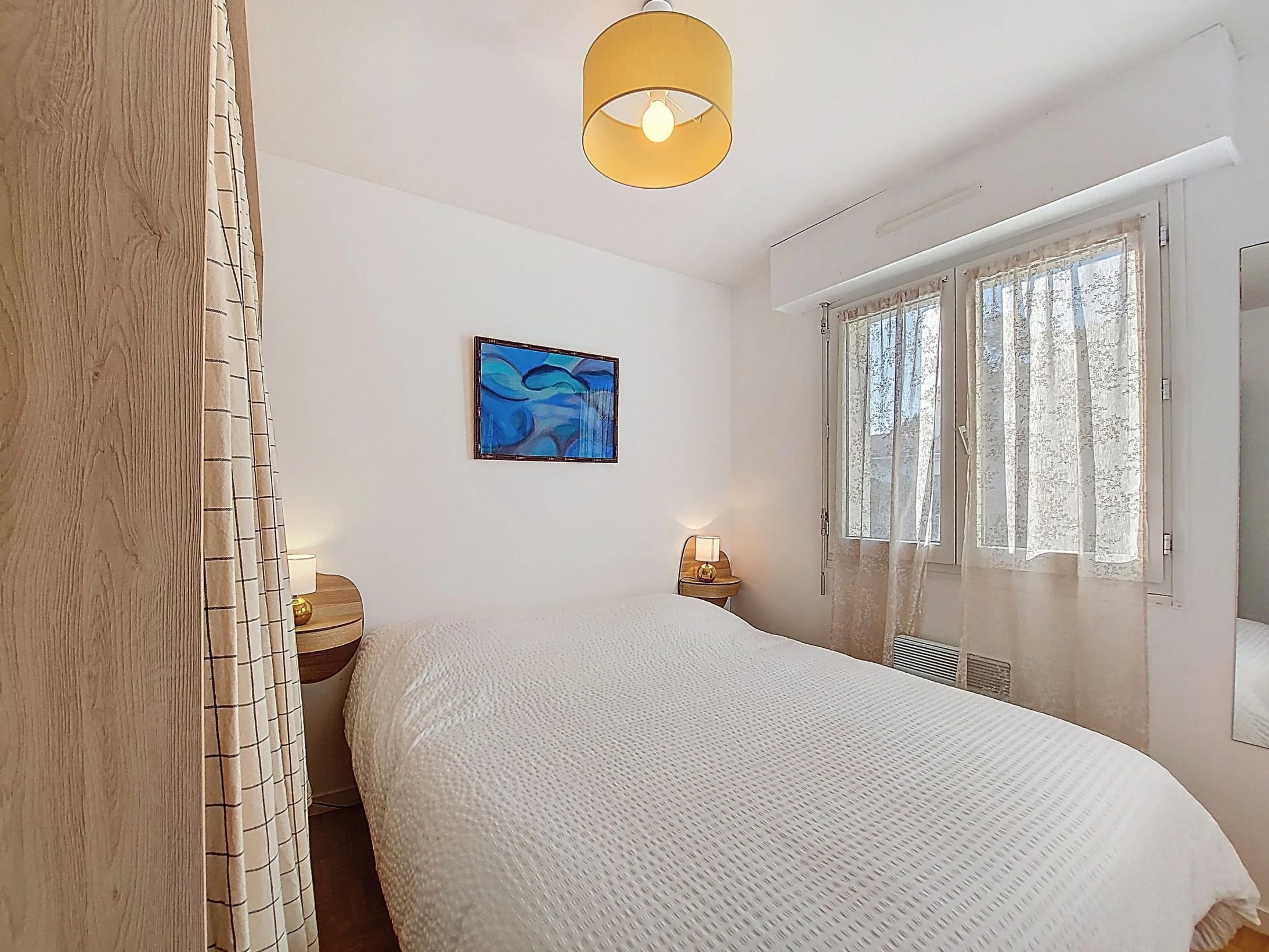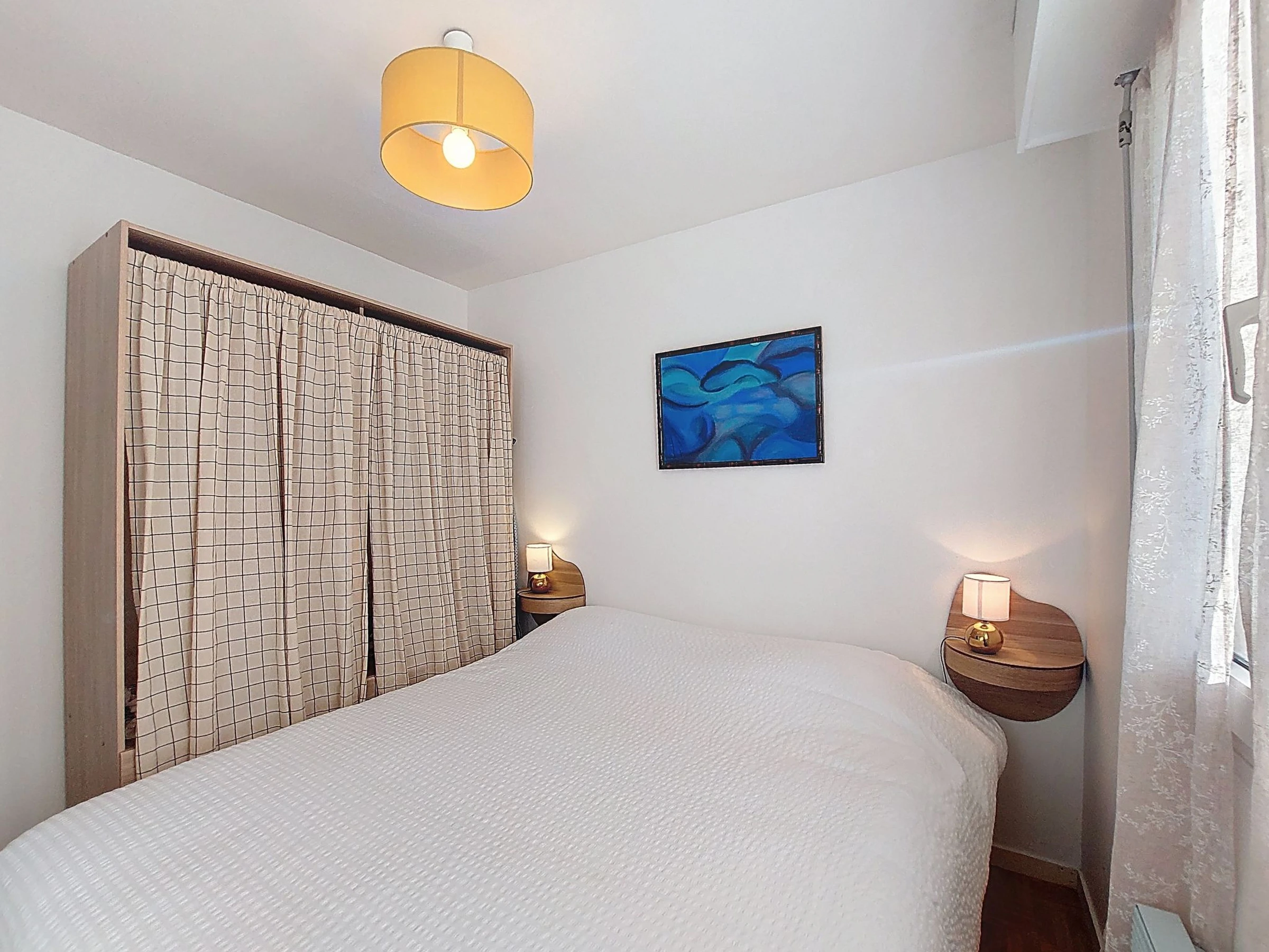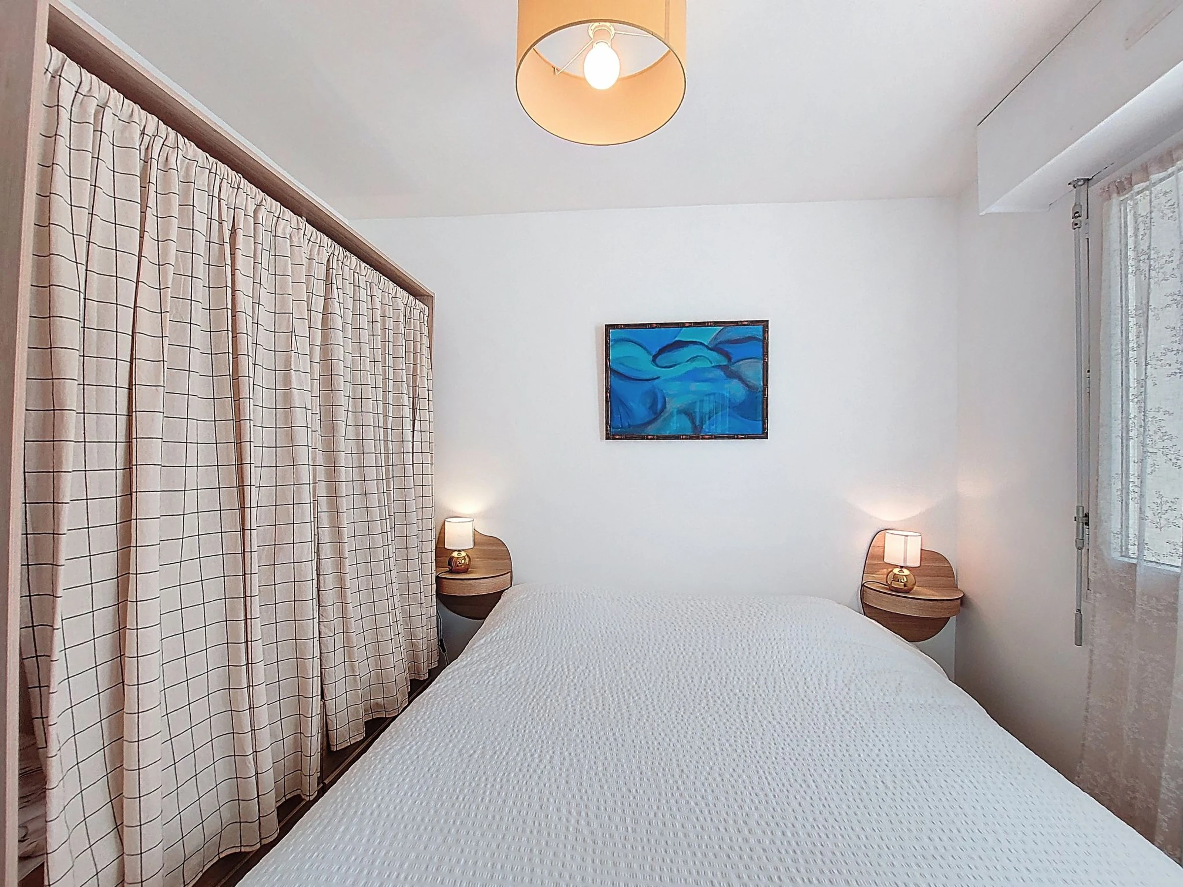 2-room apartment 35 m2 on 1st floor. Renovated in 2024, modern furnishings: living/dining room with TV (flat screen). Exit to the balcony. 1 small room with 1 french bed (1 x 160 cm, length 190 cm). Kitchenette (oven, 3 induction hot plates, toaster, microwave, freezer, electric coffee machine). Shower, sep. WC. Electric heating. Balcony 7 m2. Balcony furniture, electric barbecue. Facilities: washing machine. Internet (WiFi, extra). Garage space n 3. Please note: maximum 1 pet/ dog allowed. Smoke alarm. Offer by a private individual according to Art. 155, IV of CGI.
