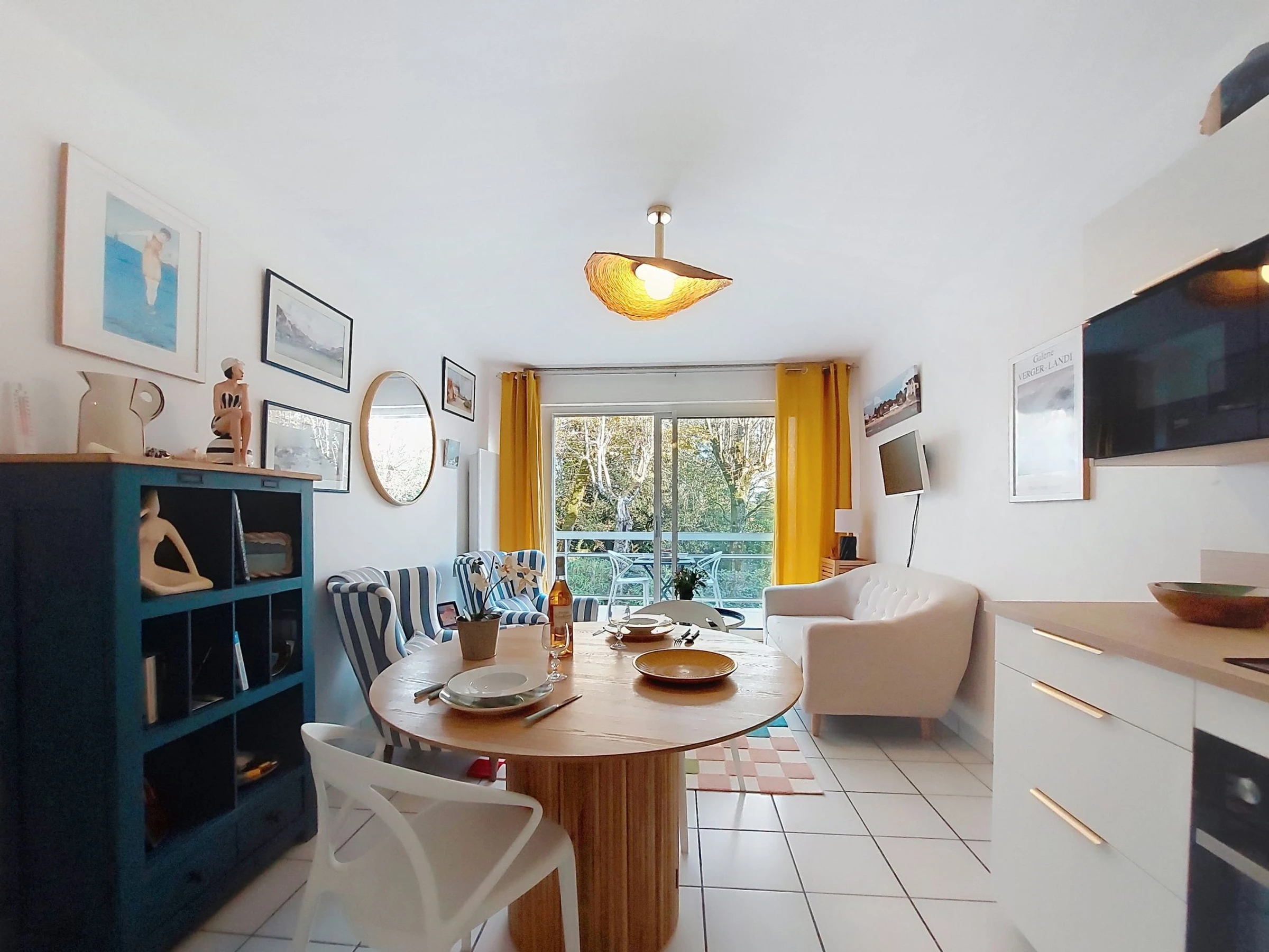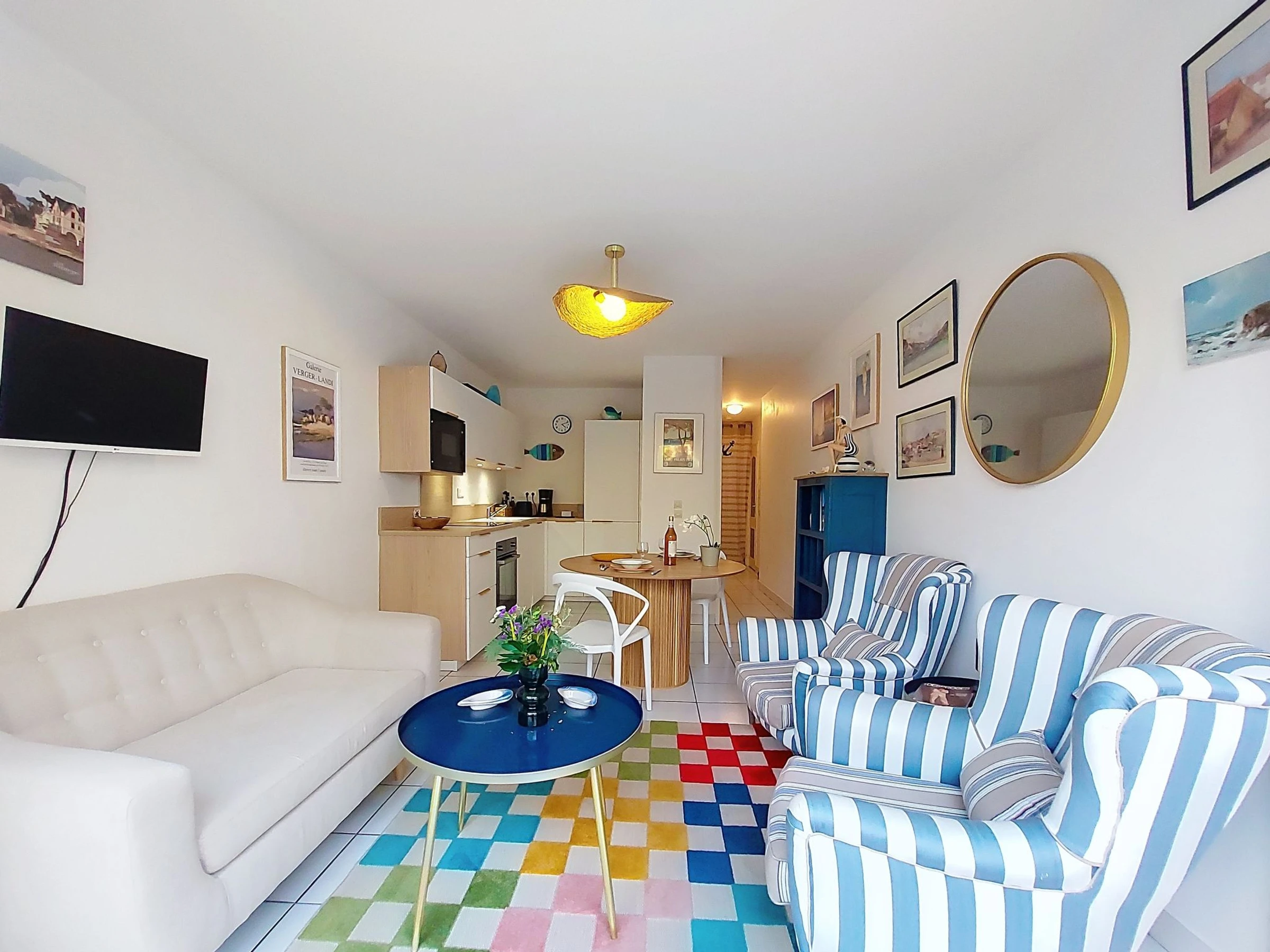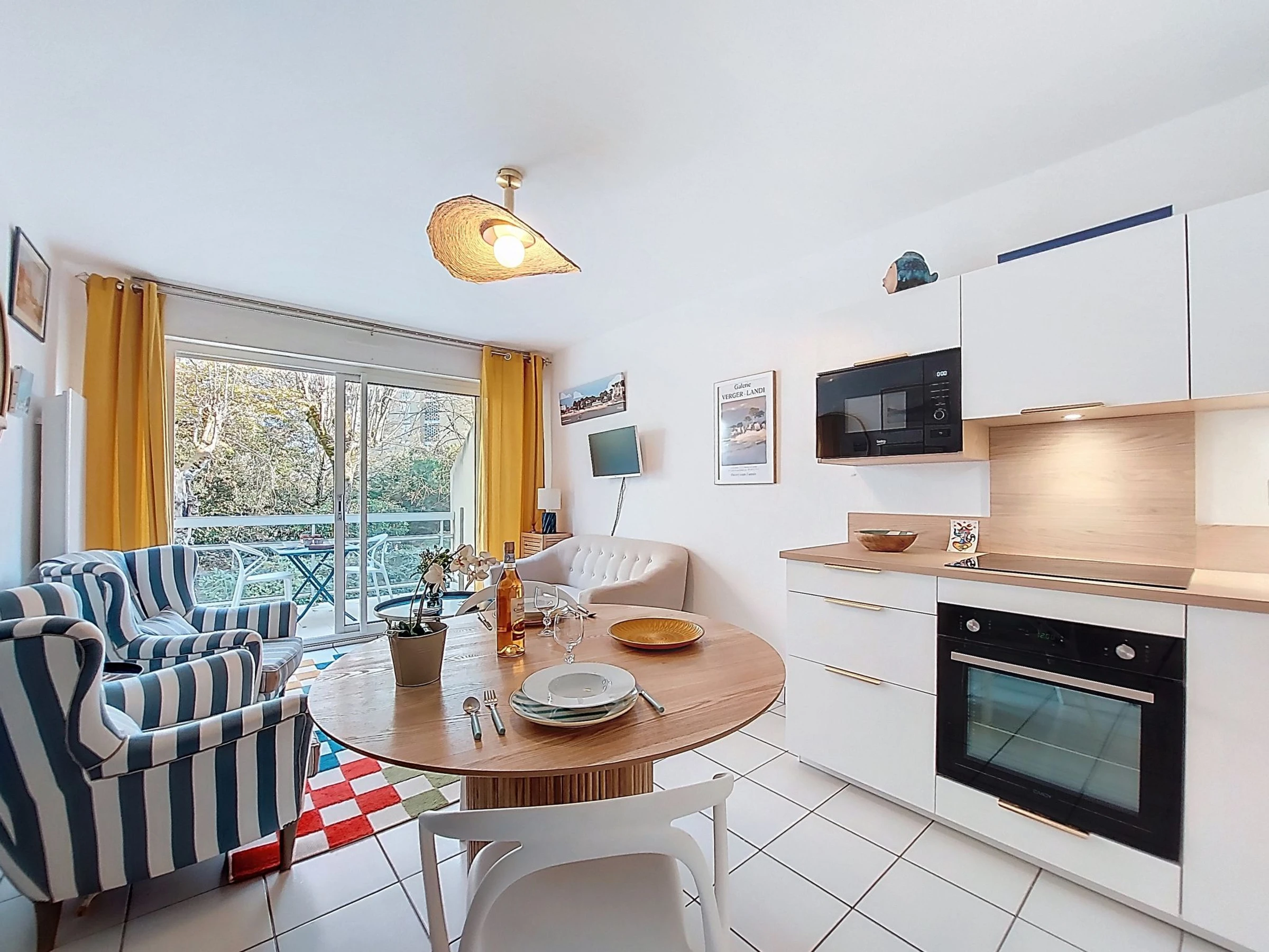 2-room apartment 35 m2 on 1st floor. Renovated in 2024, modern furnishings: living/dining room with TV (flat screen). Exit to the balcony. 1 small room with 1 french bed (1 x 160 cm, length 190 cm). Kitchenette (oven, 3 induction hot plates, toaster, microwave, freezer, electric coffee machine). Shower, sep. WC. Electric heating. Balcony 7 m2. Balcony furniture, electric barbecue. Facilities: washing machine. Internet (WiFi, extra). Garage space n 3. Please note: maximum 1 pet/ dog allowed. Smoke alarm. Offer by a private individual according to Art. 155, IV of CGI.