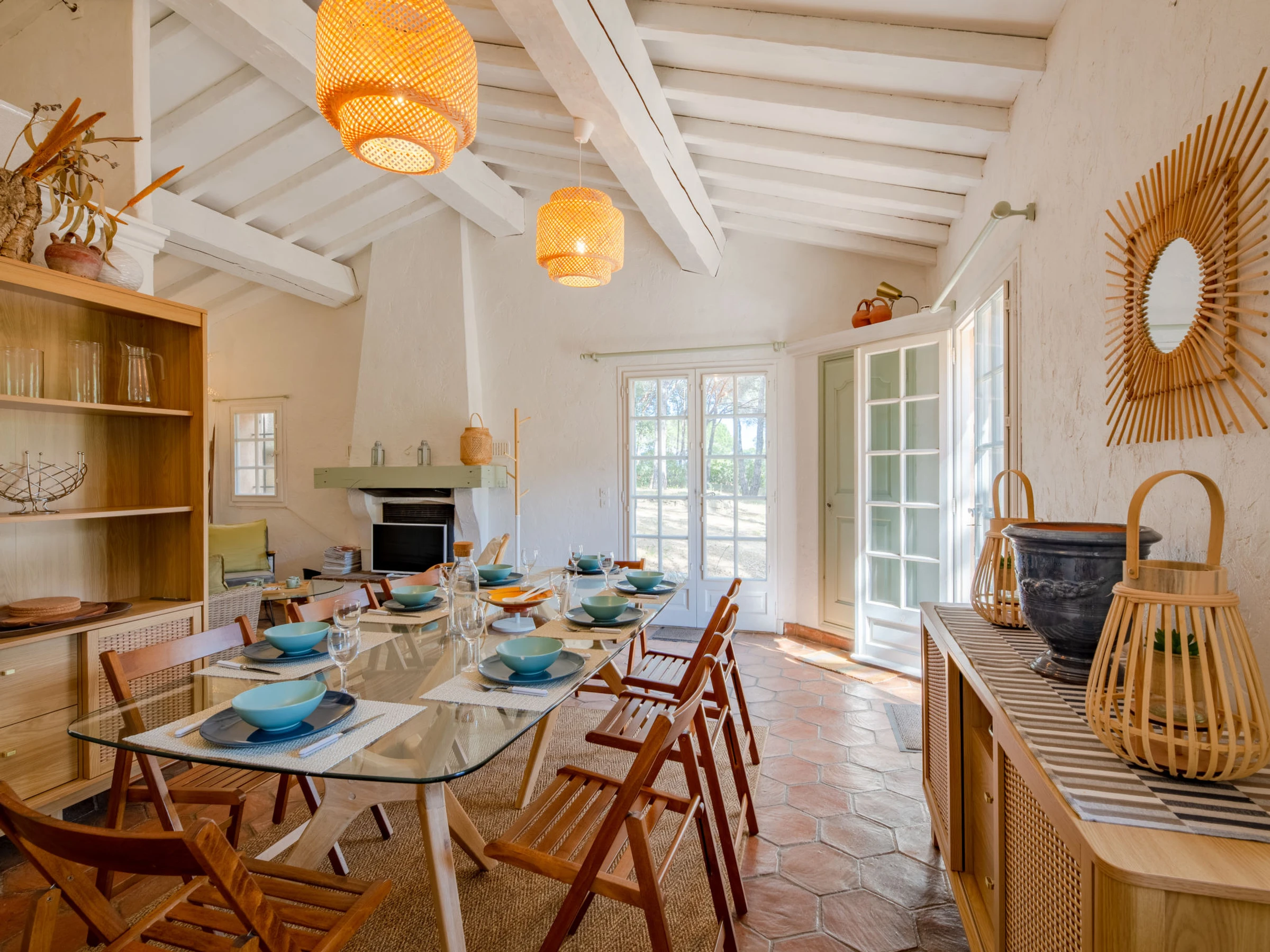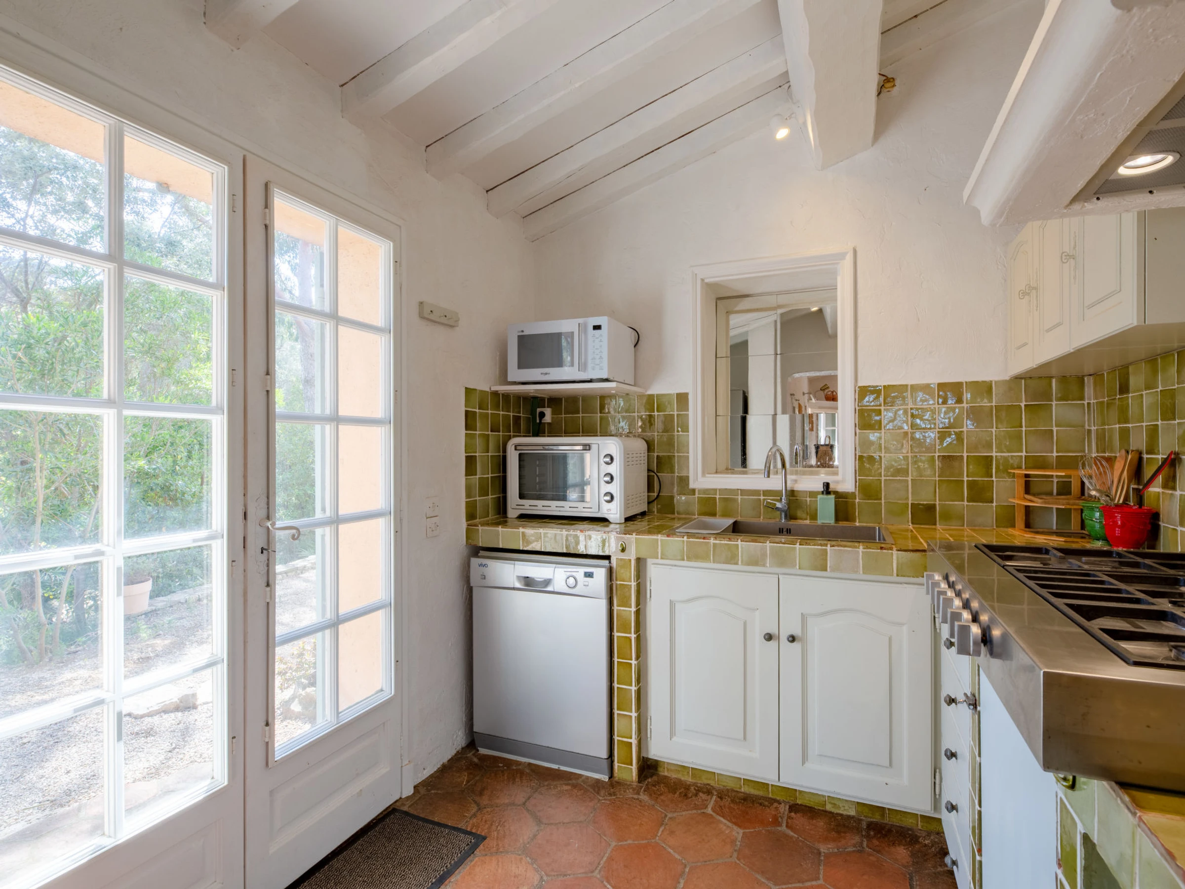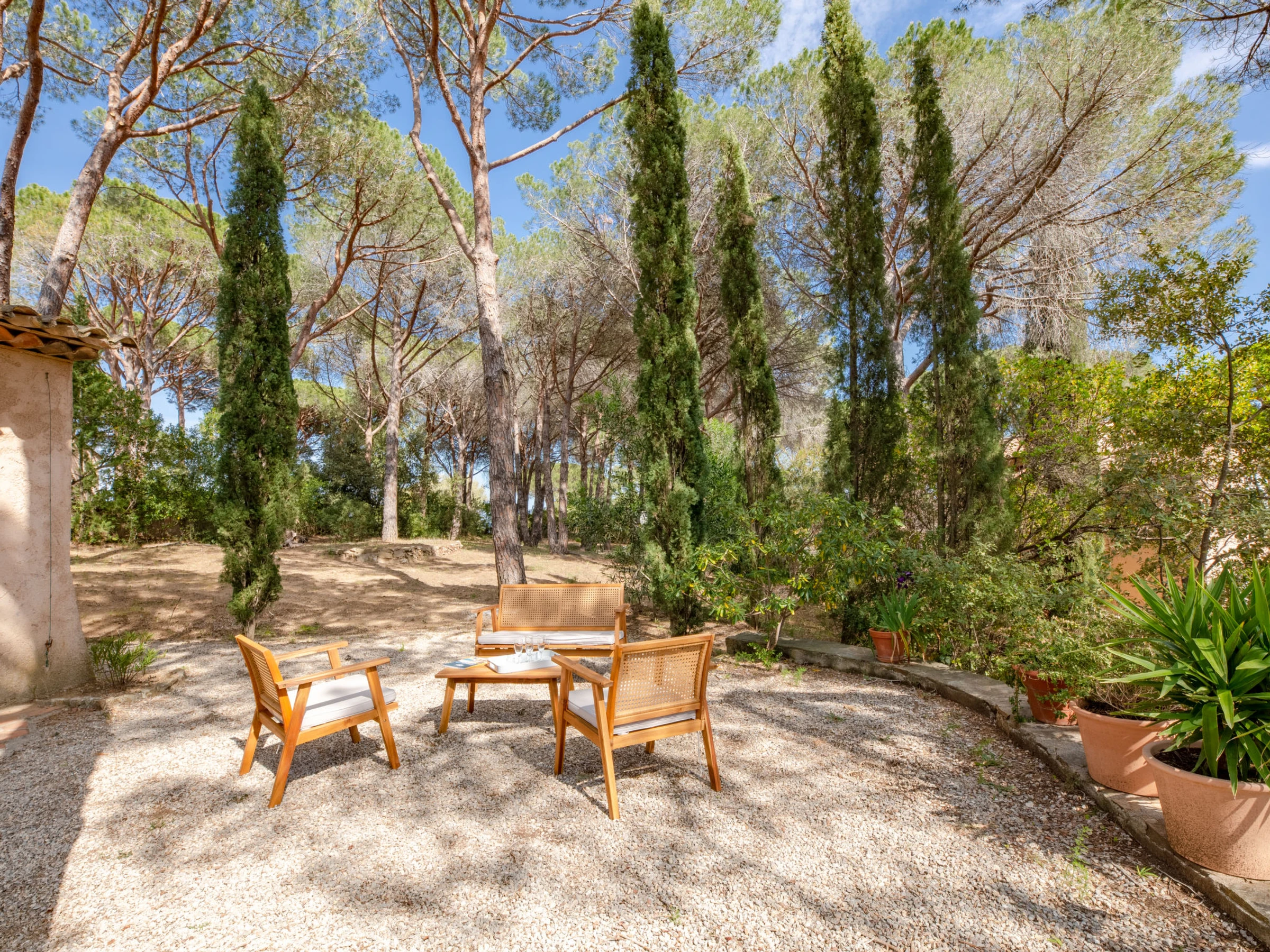 Beautiful single-family house "Les Agasses", surrounded by trees. In the district of de la Vierge Noire, in the resort 3 km from the centre of Sainte-Maxime, in a quiet, sunny position, 900 m from the sea, 900 m from the beach, south-east facing position. Private: natural state property 2'400 m2, terraced garden (not fenced) flowers and trees. Boules, volleyball court, garden furniture, barbecue. Narrow motor access (100 m via unmade road). Parking. Shop 4 km, grocery 1.5 km, supermarket 3 km, shopping centre 4 km, restaurant 900 m, bakery 3 km, bus stop 850 m, railway station "Saint Raphael", sandy beach "La Nartelle" 900 m, thermal baths "Thalasso Les Issambres" 7 km. Sports harbour 3 km, golf course (18 hole) 4 km, tennis 850 m. Nearby attractions: Aqualand waterpark 7 km, Azur Park attractions 16 km, Saint-Tropez/Ramatuelle 18 km, Port Grimaud 13 km, Gorges du Verdon 95 km, Navette / shuttle boat St-Tropez 15min 3 km. Hiking paths: Massif des Maures 5 km, Massif de l'Esterel 38 km. Please note: car recommended. The keys‘ handover takes place by the agency in Sainte-Maxime. Airfield 70 km from the property.