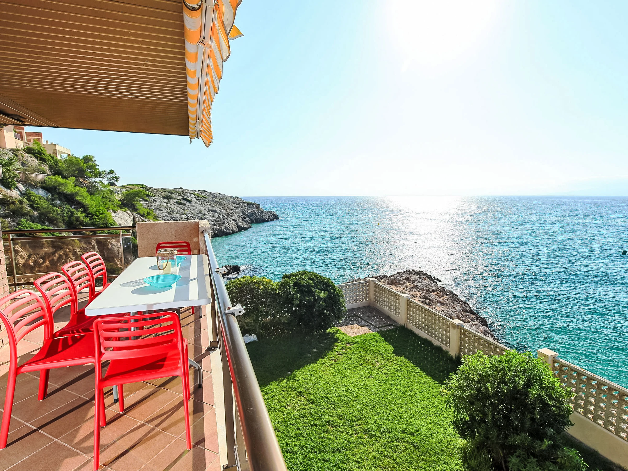 Cap Salou 8 km from Cambrils: Apartment block "Cala d'Or". In a quiet, sunny position, 5 m from the sea, direct access to the beach. Roofed, parking space n 16. Shop, grocery, bakery 500 m, bus stop "Bus La Plana parada C/ Ginesta" 1 km, railway station "Estación Camp Tarragona" 25 km. Nearby attractions: Port Aventura / Ferrari Land 3 km, Aquum Spa 3 km, Aquopolis 3 km, Cambrils 8 km. Hiking paths: La Mussara 45 km. Groups of teenagers on request only.