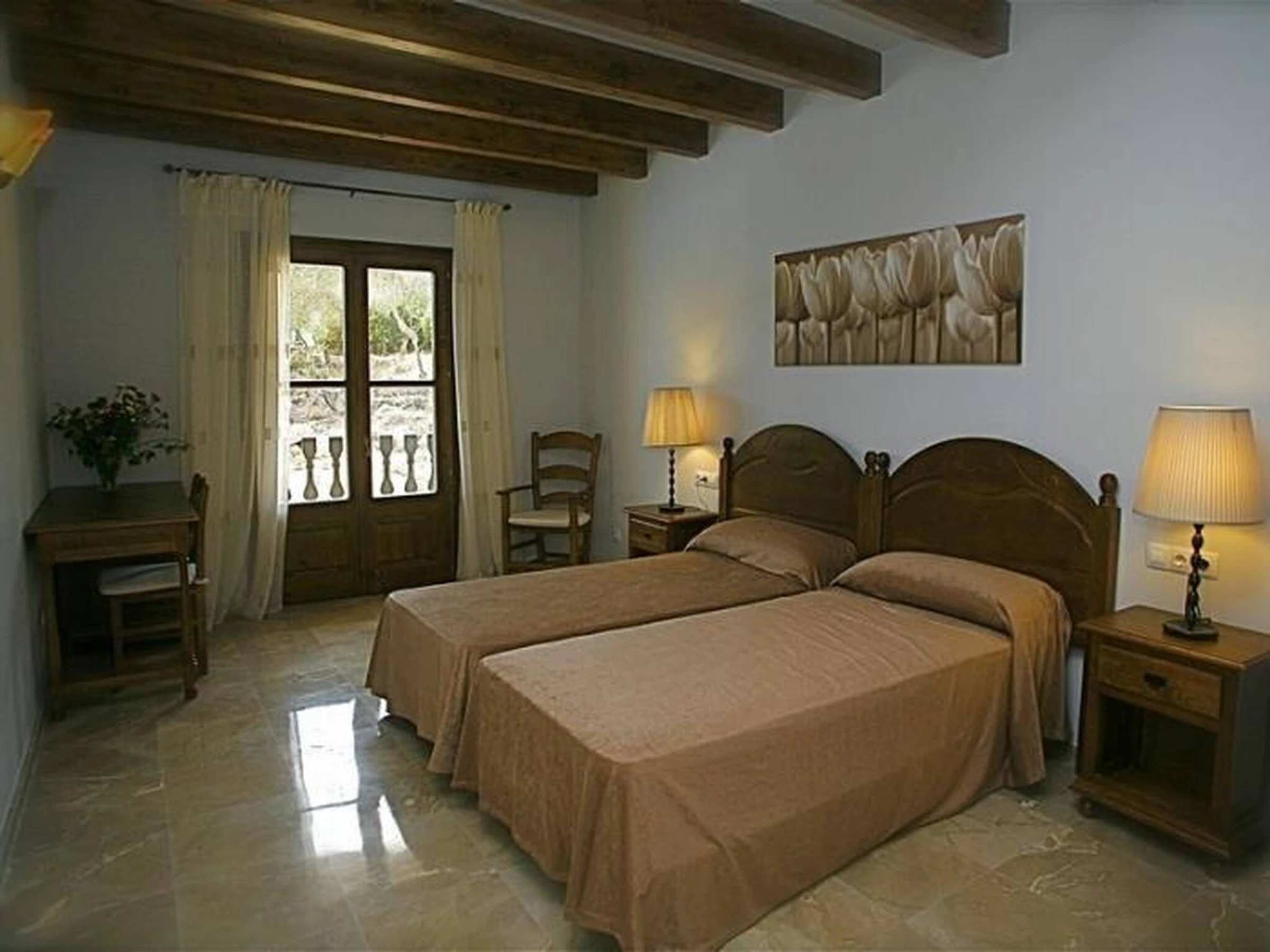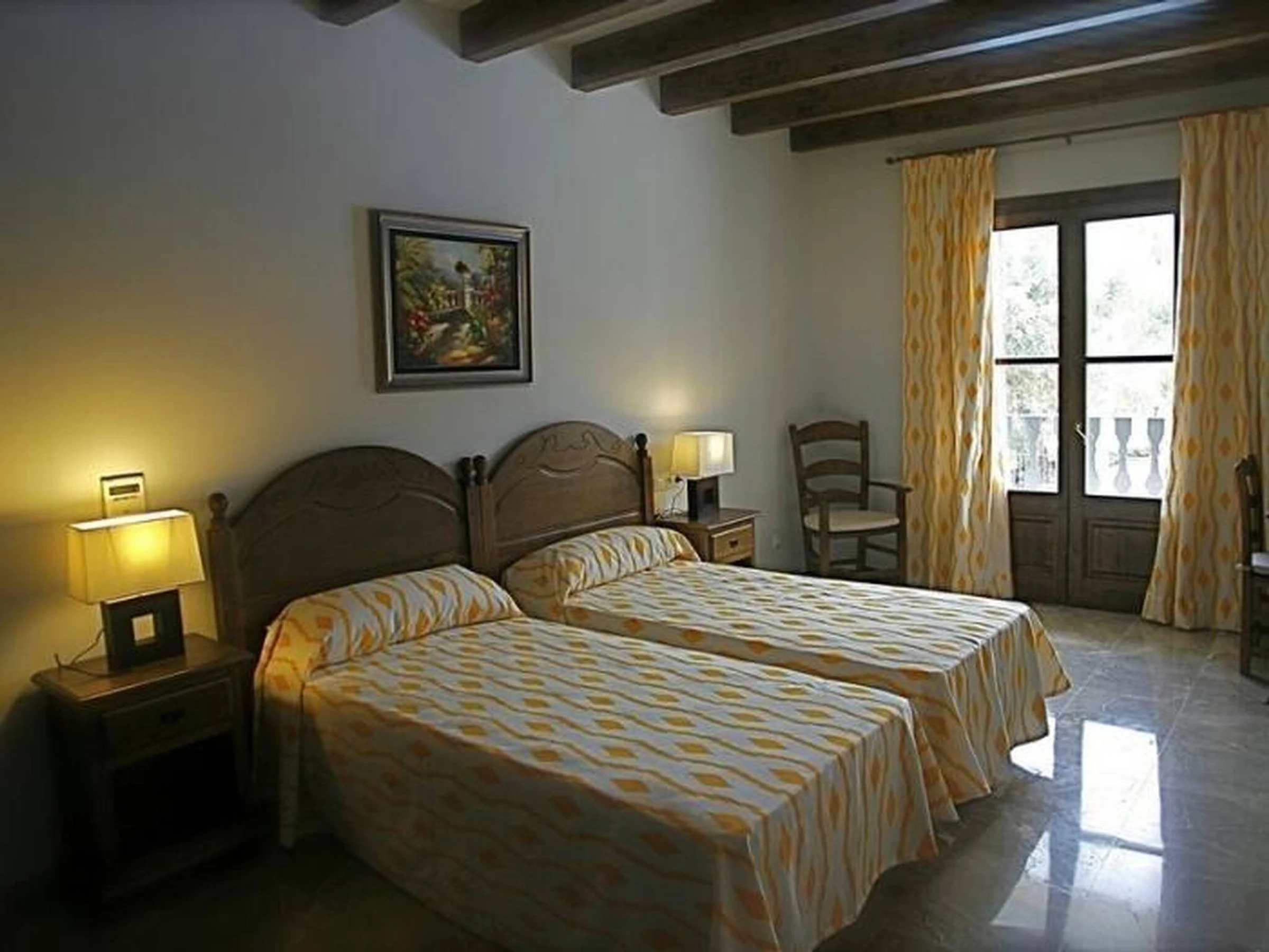 Beautifully handmade wooden banisters on the stairs lead to the main dwelling, with beautiful large windows that allow you to enjoy the beautiful view of the Mallorcan countryside.