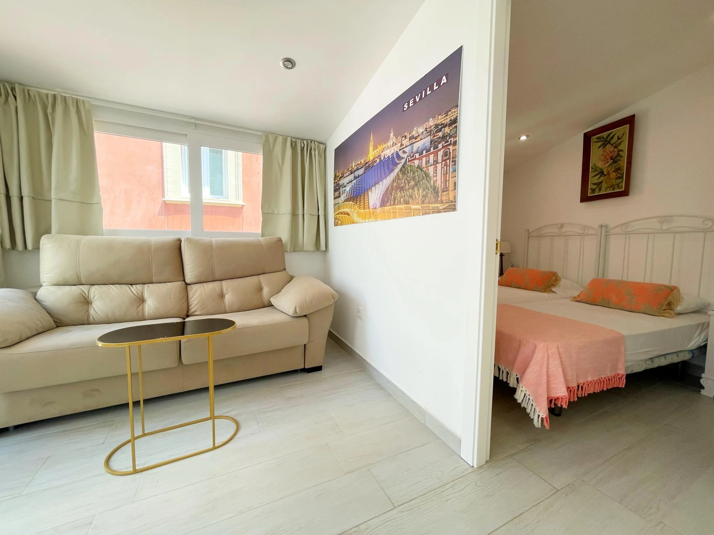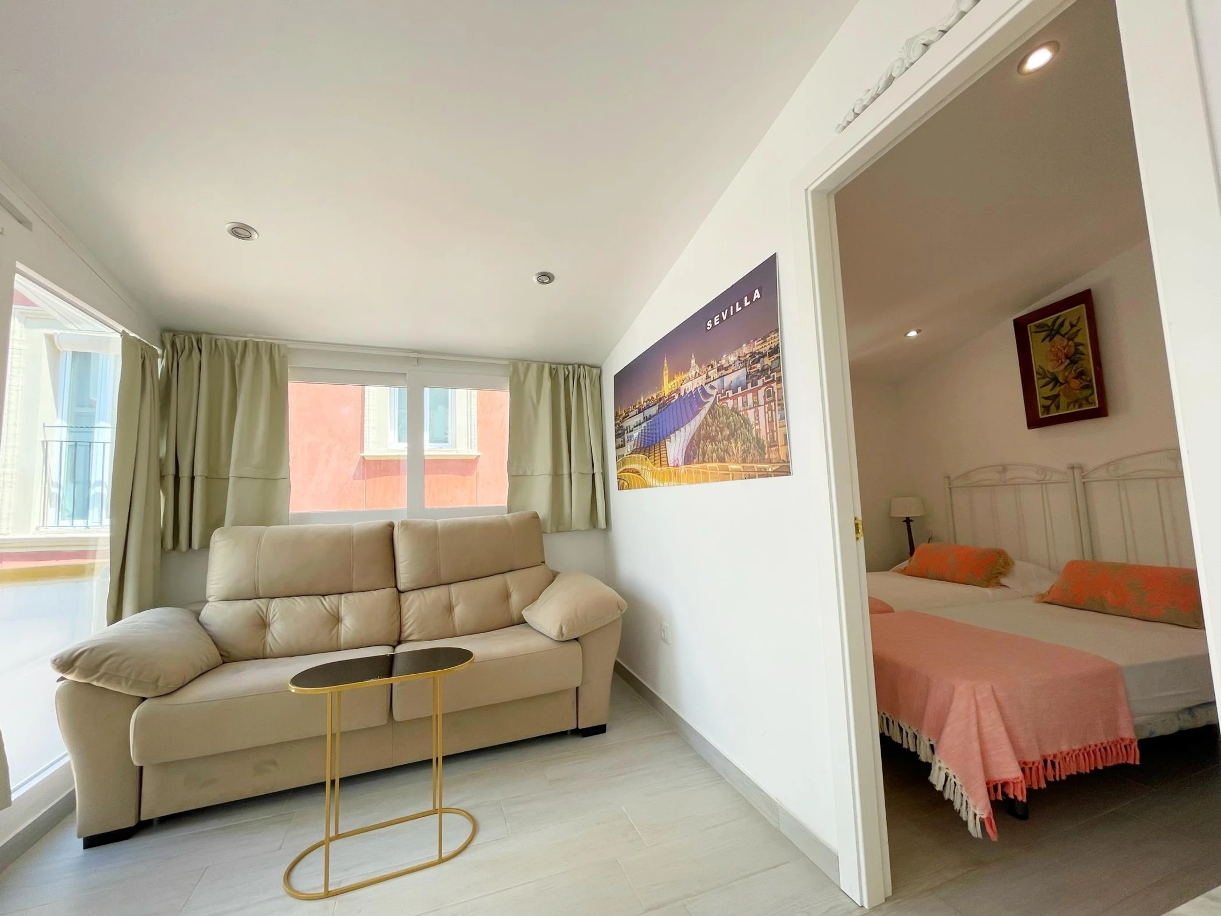 Live a beautiful experience and stay in an authentic Sevillian house in the heart of Seville, just a few metres from the Cathedral.Cosy house in a quiet street with two cosy flats. The entrance and staircase are decorated with traditional old Sevillian tiles. The flat with one bedroom and terrace is on the first floor without lift, separate kitchen and bathroom with shower. It is accessed by an original narrow staircase typical of old Sevillian houses. The apartment has 1 bedroom, with 2 individual beds,1 double sofa bed and 1 bathroom with shower. It can accommodate up to 4 [hidden] interior decoration combines modern and traditional elements: wooden doors and ceilings, wrought iron and hand-painted ceramics.