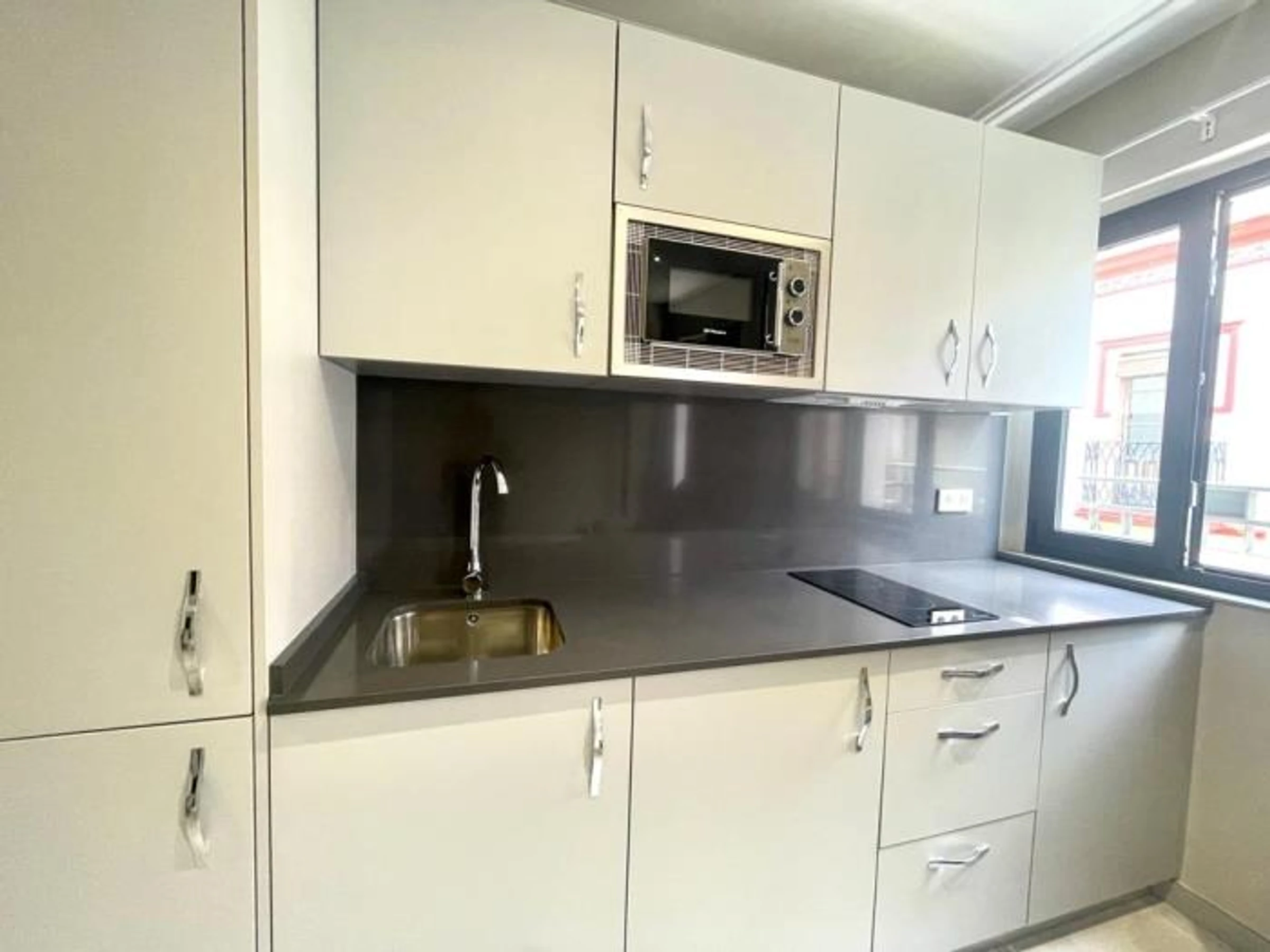 Eva Recommends Soho Alameda apartments offer free Wi-Fi and hot/cold air conditioning, TV, kitchen with ceramic hob, microwave, capsule coffee maker, toaster, kettle, hairdryer, iron, bed linen and towels, and complete kitchenware. kitchen. Modern apartment with 1 bedroom, a bathroom with shower and a living room with an integrated kitchen. It is in a completely renovated house with 6 apartments and elevator. The apartment on the first floor with elevator has a bedroom with a double bed and a balcony facing the street. The bathroom has a comfortable shower. It has towels and toiletries
