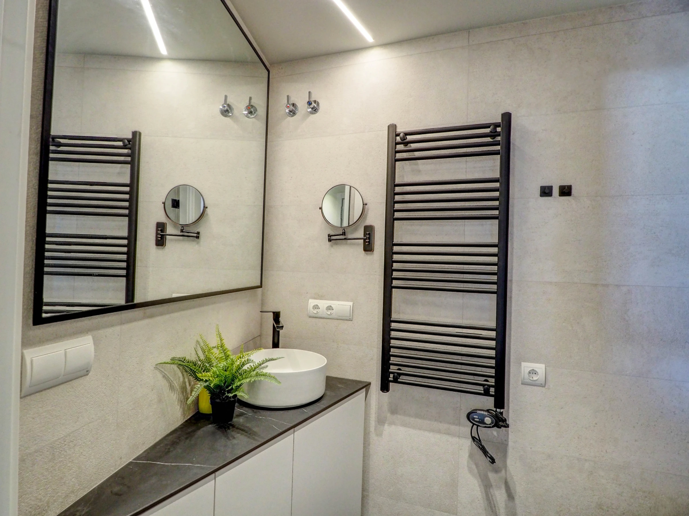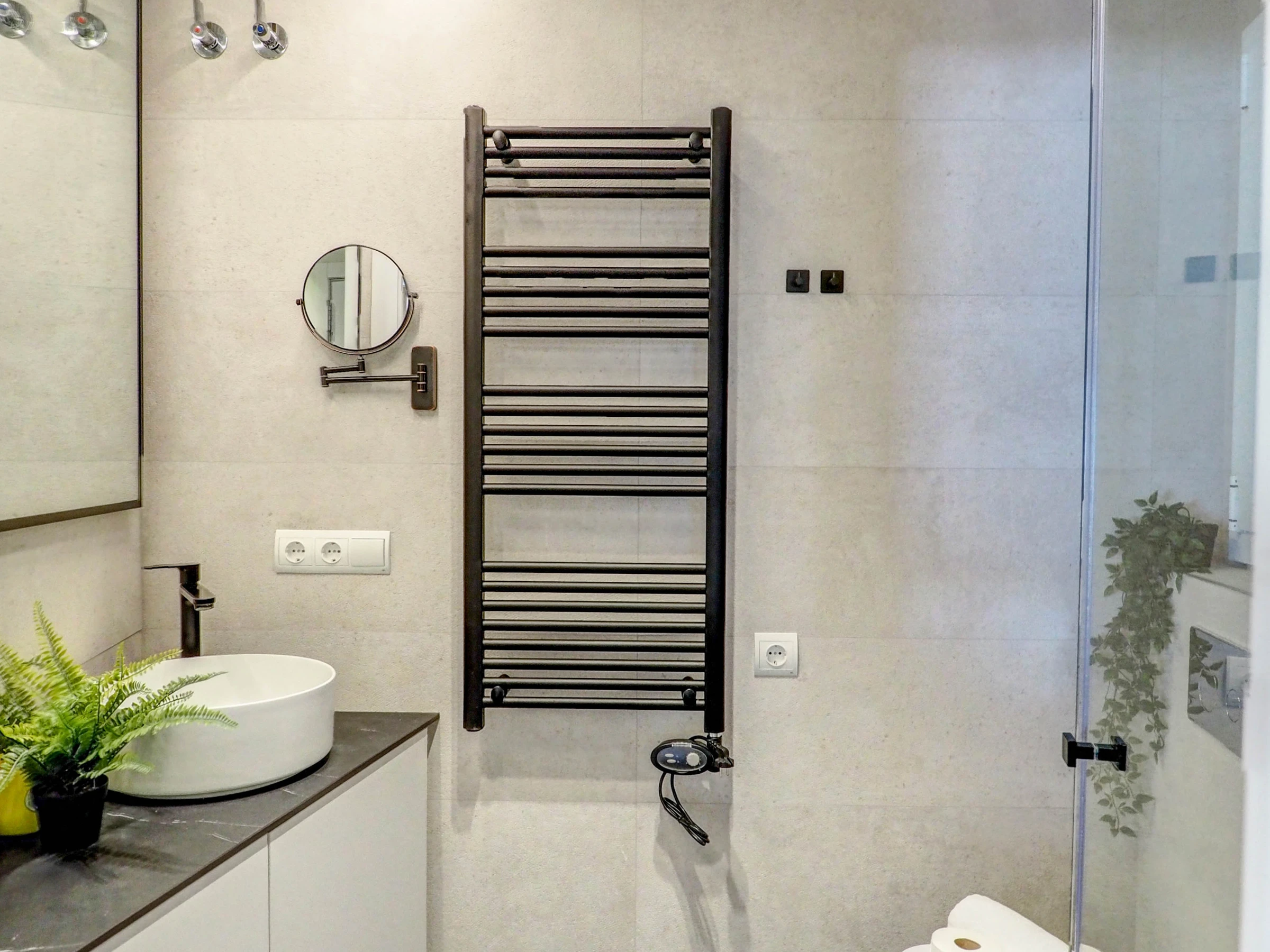 The apartment has several outstanding features, such as a fully equipped kitchen, heating, balcony, air conditioning. The property offers sea views as it is on the seafront.
