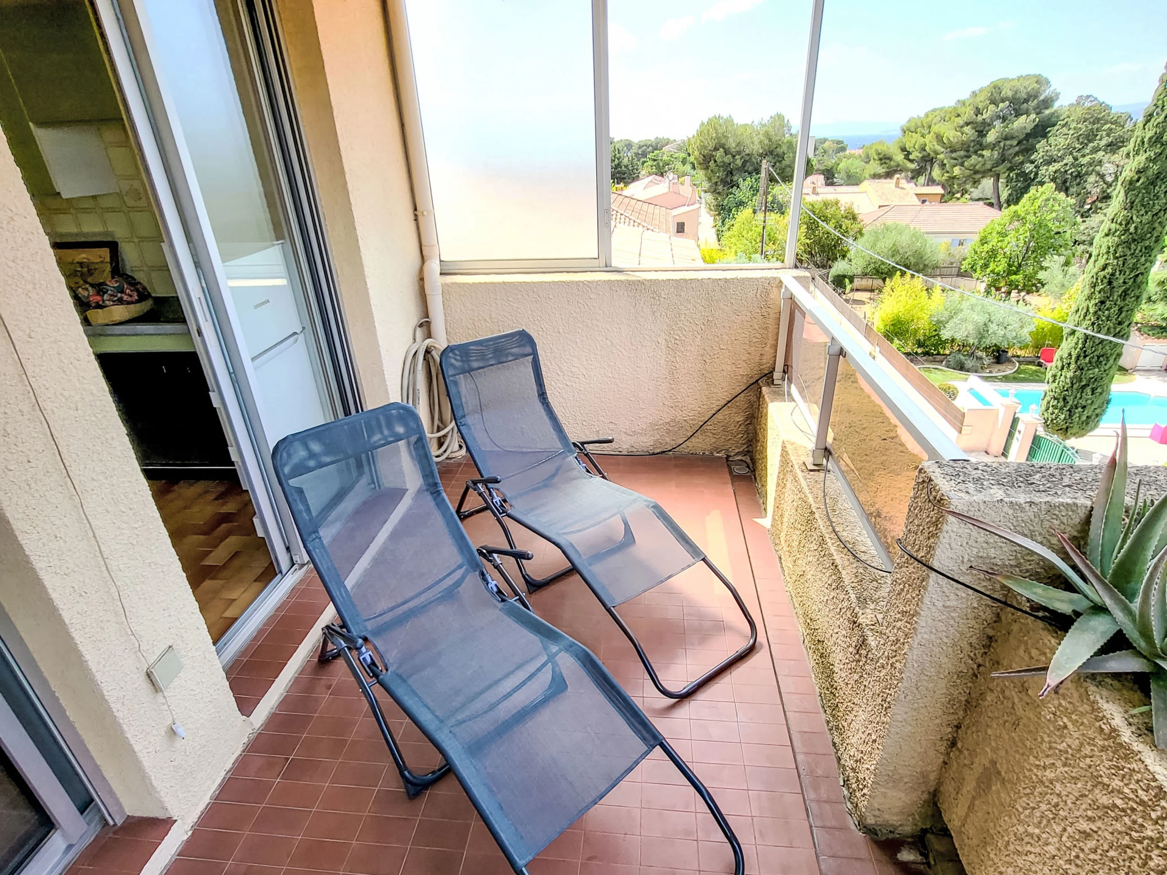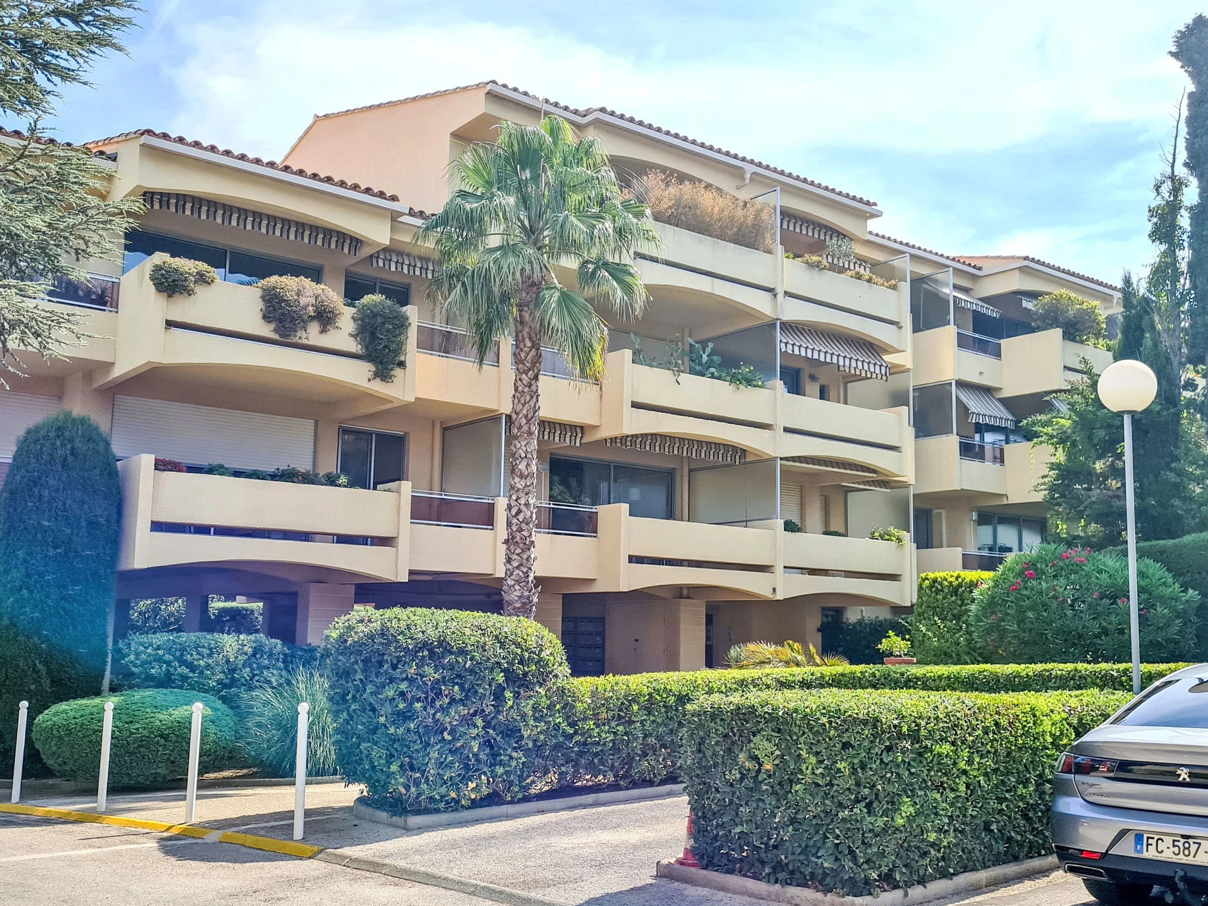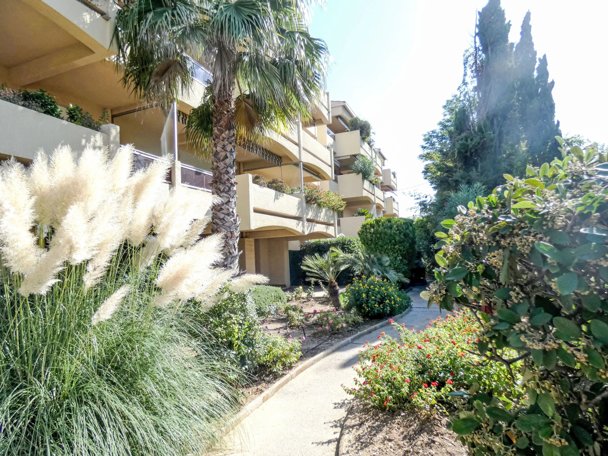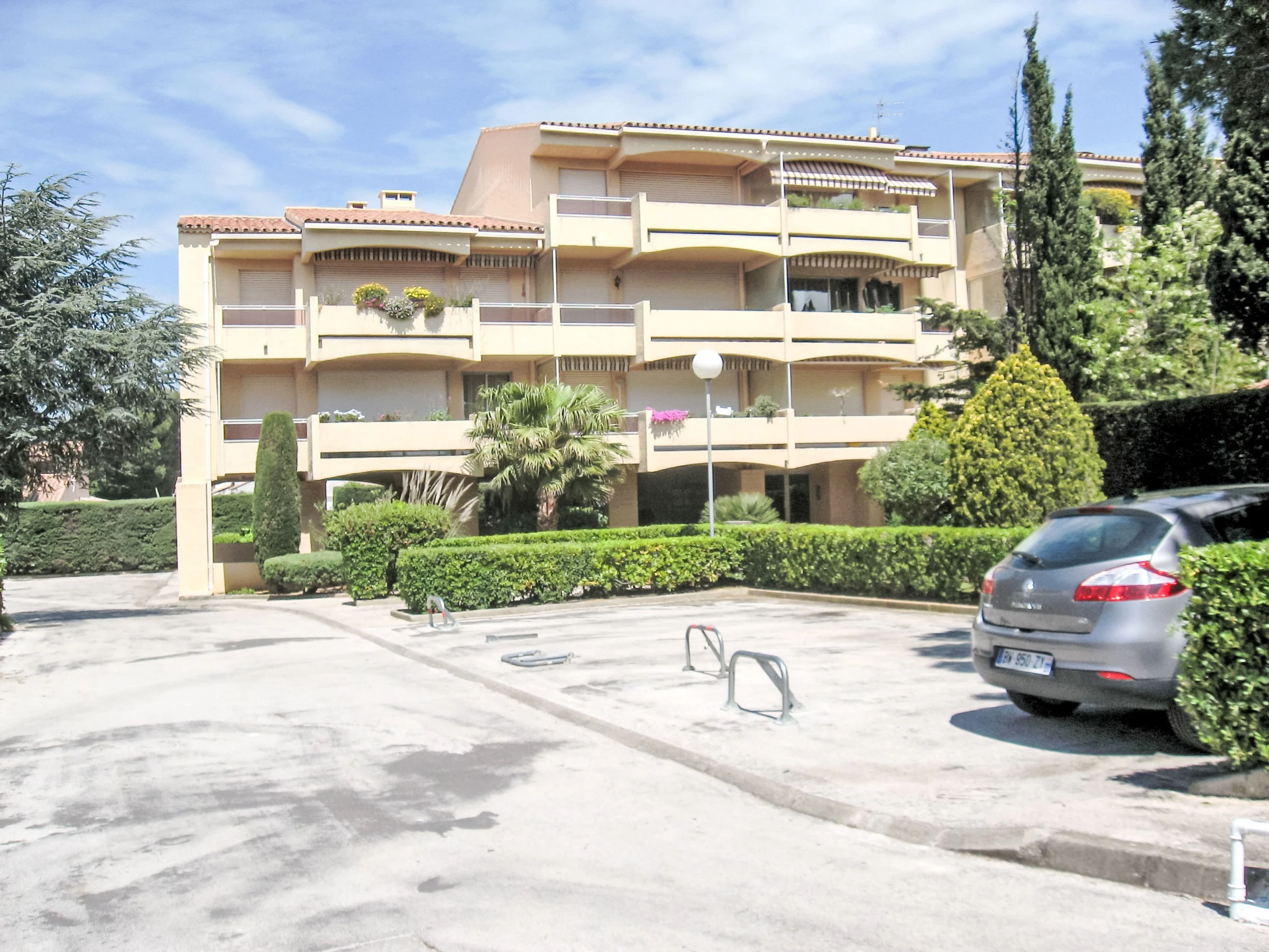 Residence "Les Jardins du Soleil", 3 storeys. In the resort six fours les plages, 700 m from the sea, 700 m from the beach. Parking (limited number of spaces), public parking 100 m. Shop, grocery 300 m, supermarket 1 km, restaurant 200 m, bakery 50 m, bus stop 300 m, sandy beach 700 m. Nearby attractions: Sentier du littoral. Hiking paths: Sainte Baume, Sainte Victoire, Calanques Port-Cros, Porquerolles, Ile verte, Embiez, Figuerolles, Cassis. Please note: the keys‘ handover takes place by the agency in Six fours les plages, 2 km. The photograph shows a typical example.