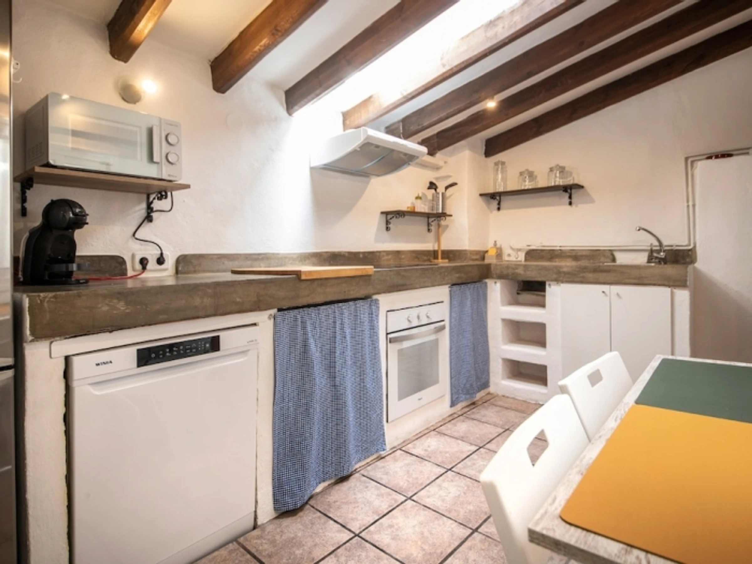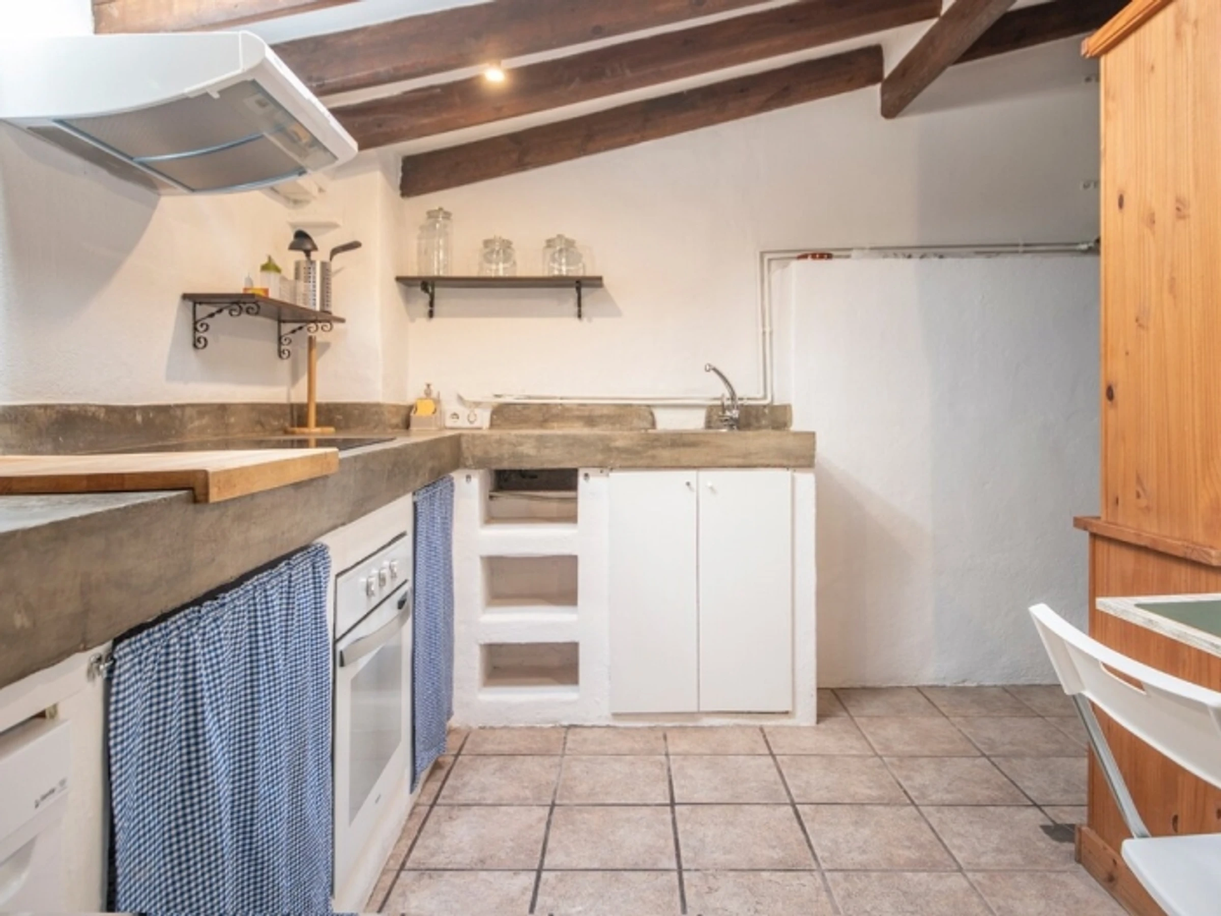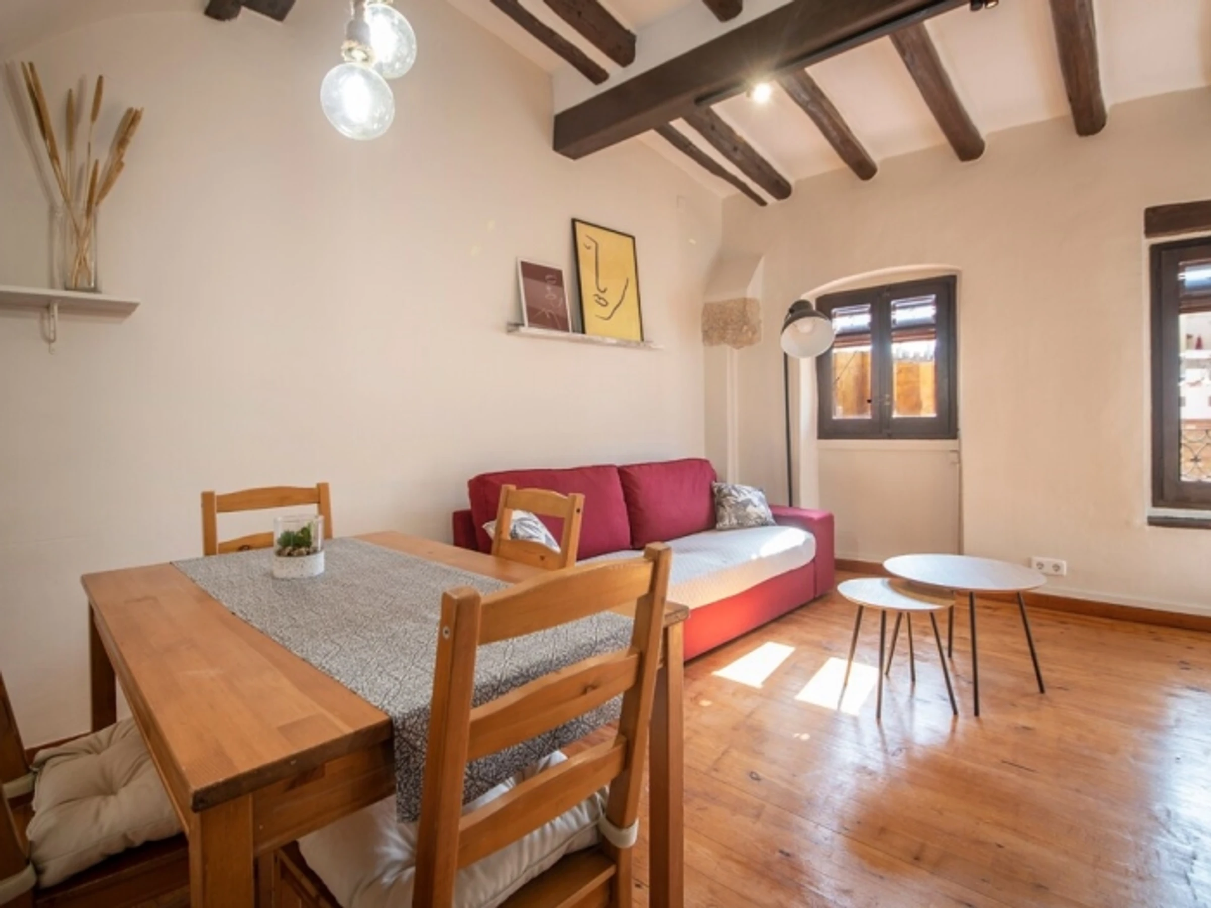 Magnificent penthouse located in the heart of the Upper Part of Tarragona, just a few meters from the famous Cathedral. It is distributed on two levels: main level consists of a spacious living room, kitchen, two bedrooms and a bathroom with shower. Upper level has access by stairs to a large private terrace with panoramic views of the city. There is a small office to study or relax. The apartment is very bright. The kitchen is completely equipped. It is located on the third floor without a lift and is not recommended for people with mobility difficulties. It is an ideal place to visit Tarragona and its famous World Heritage monuments. Perfect for long stays for studies or work. The apartment is located in the pedestrian zone restricted to vehicular traffic, but can be accessed by car for loading and unloading. Nearby there are several paid municipal car parks.