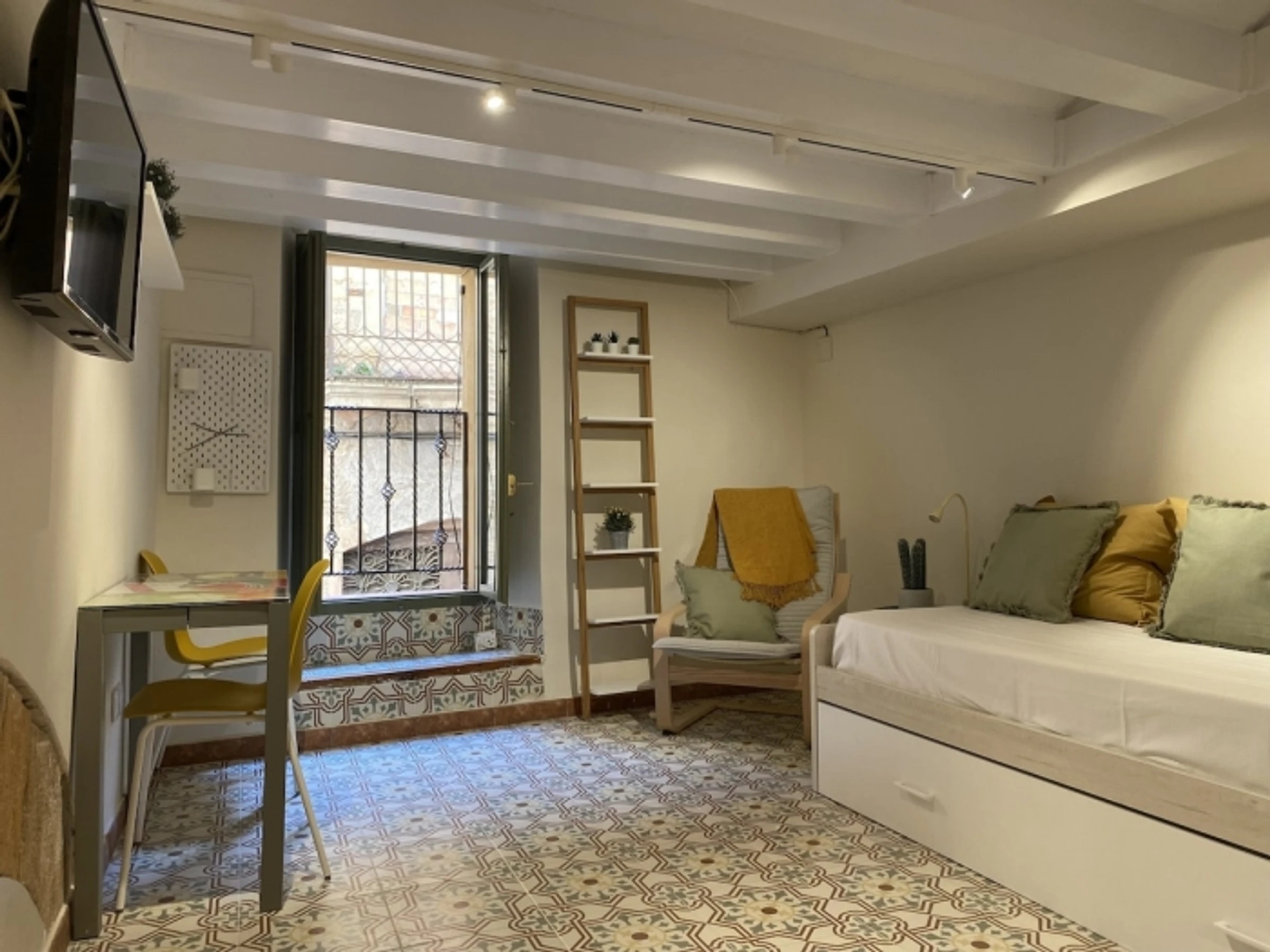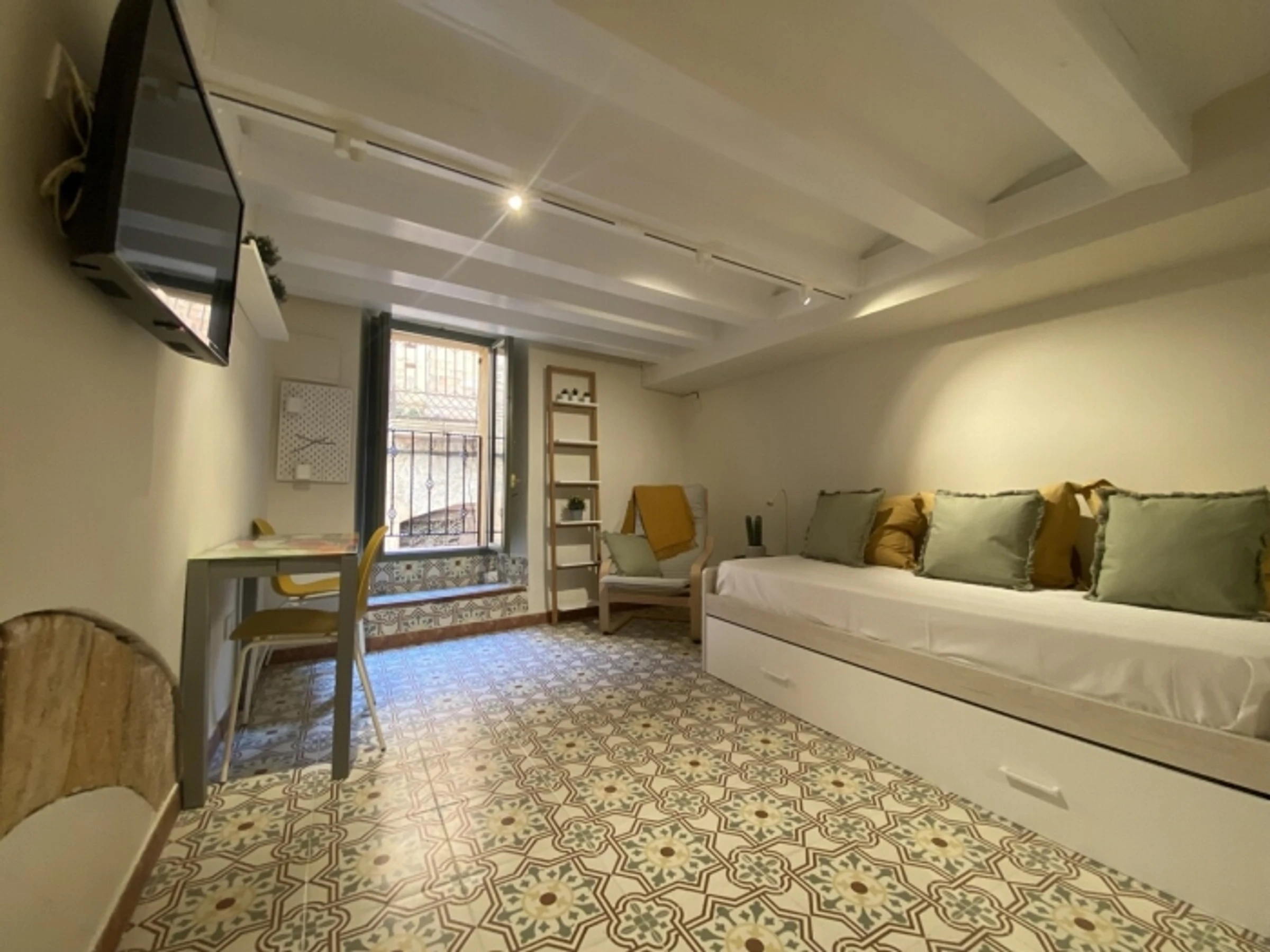 Nice and renovated studio located in the old town of Tarragona, very close to the Plaza de Forum and the famous [hidden] is divided into two spaces connected by the corridor: living room-bedroom and the kitchen and bathroom . It is fully equipped and can accommodate two people. The bed is a trundle [hidden] studio is located on the first floor with access by [hidden] apartment is located in the pedestrian zone, it is surrounded by historical monuments, world heritage sites, numerous shops, bars and restaurants. The beach is about 10 minutes walk. Rovira y Virgili University is a 15-minute walk away.Important: groups of young people under the age of 27 are not accepted. Do not send the request if the requirements are not met. The owner reserves the right to cancel the reservation for guests who do not comply with this condition.This condition does not apply to long-term bookings for students.