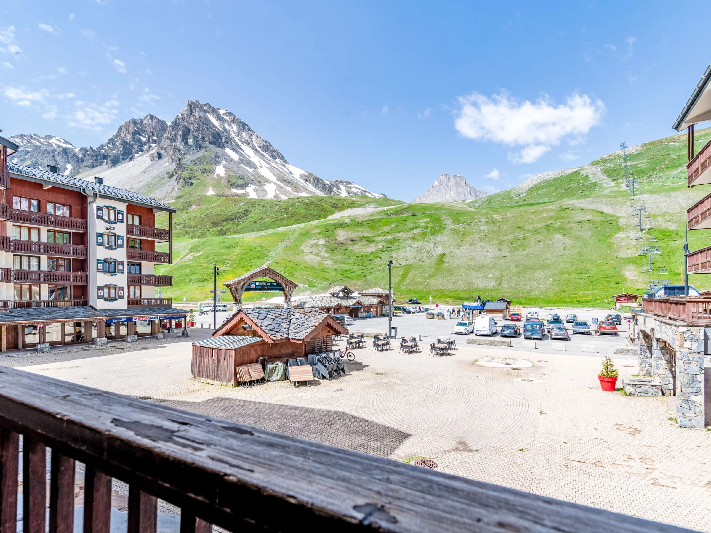 Tignes Val Claret: Residence "Rond Point des Pistes (Val Claret)", 4 storeys. 50 m from the skiing area. In the complex: lift, storage room for skis, central heating system. Shop 50 m, grocery 100 m, restaurant, bus stop 50 m, indoor swimming pool 2 km. Sports centre 800 m, mountain railway, skisport facilities, slopes 50 m, ski rental 20 m, ski bus stop, ski school 50 m. Nearby attractions: LAGON CENTRE AQUATIQUE 2 km, TIGNES ESPACE CENTRE SPORTIF 2 km. Well-known ski regions can easily be reached: TIGNES VAL D'ISERE 50 m. Hiking paths: PARC DE LA VANOISE 200 m. Please note: groups of teenagers on request only. Ski bus (free of charge).