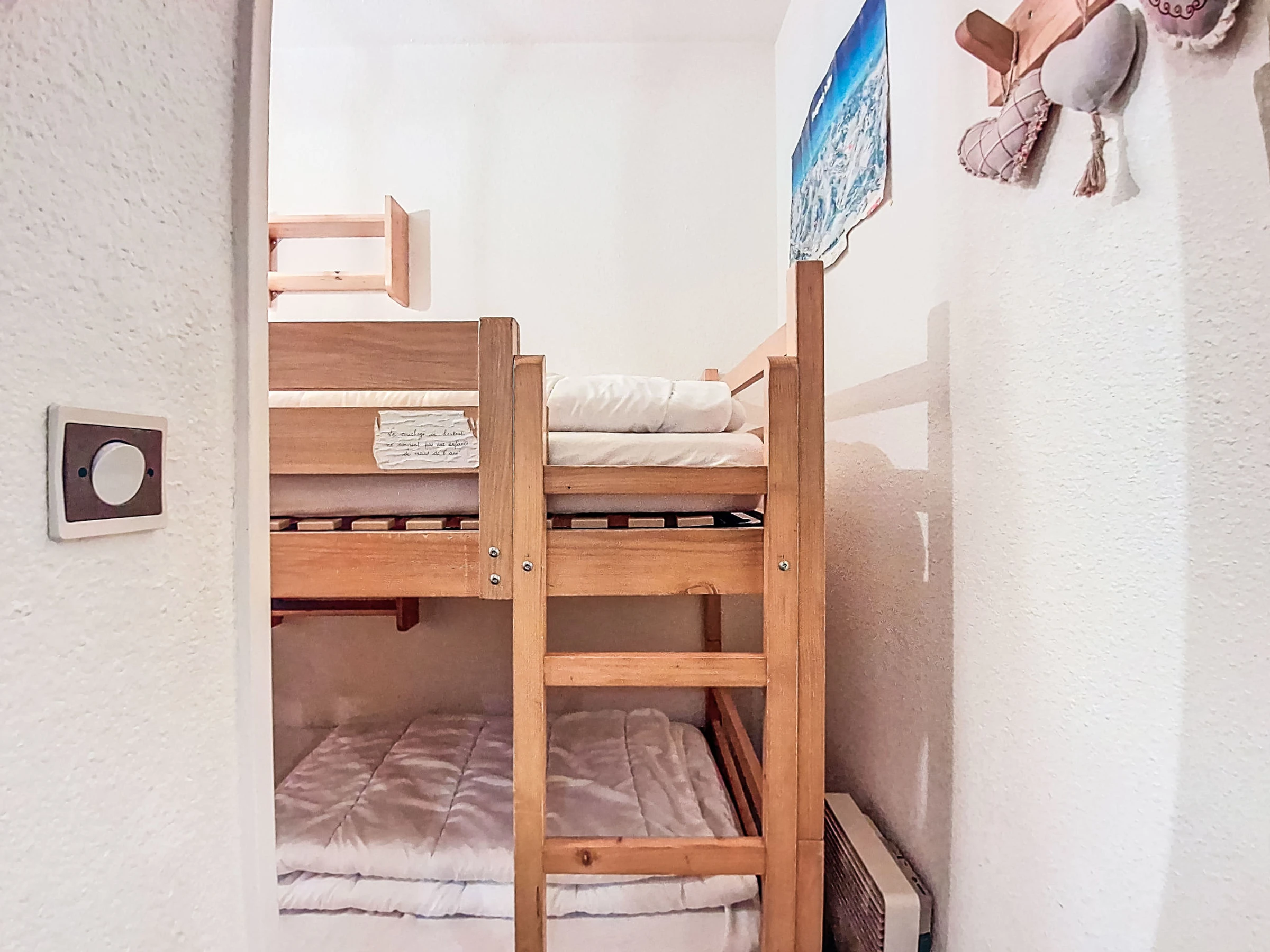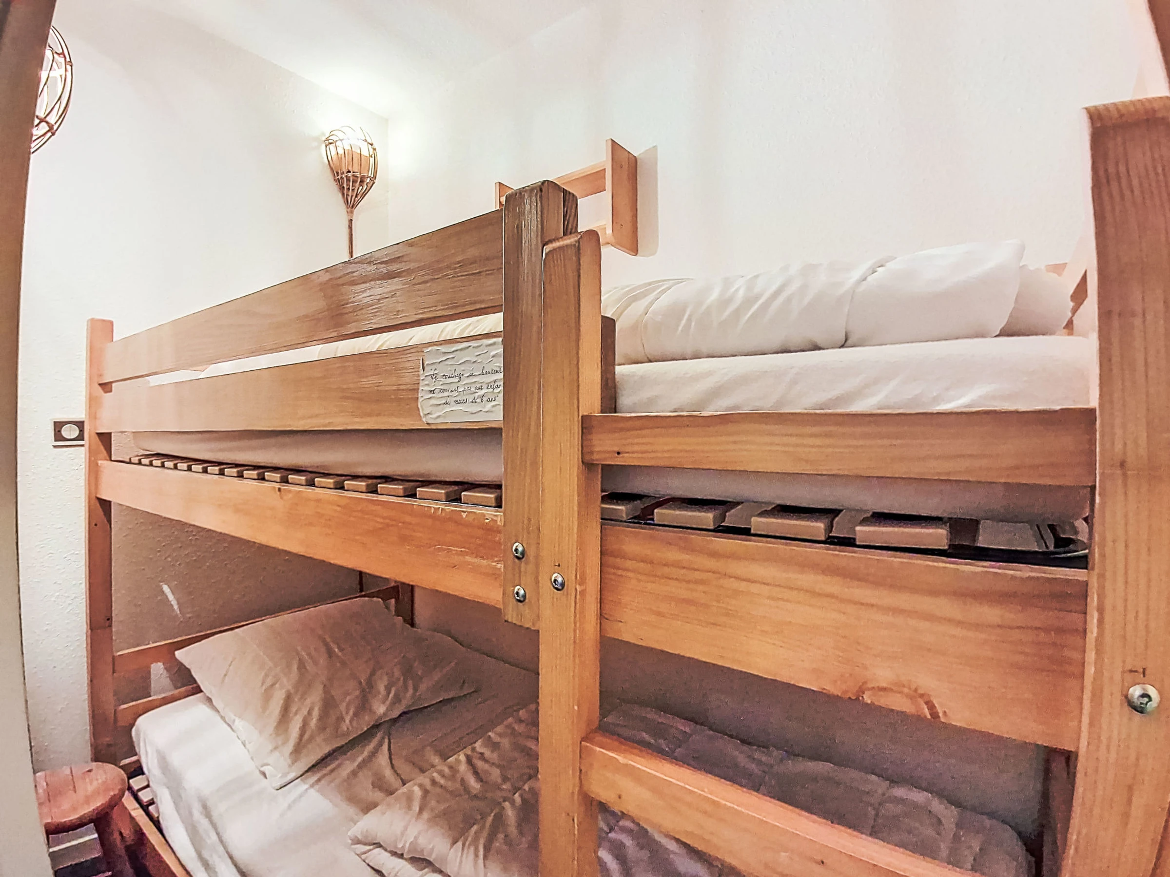 2-room apartment 40 m2 on 3rd floor, west facing position. Living/dining room with 1 double sofabed (1 x 140 cm, length 190 cm), TV and electric heating. Exit to the balcony, west facing position. Sleeping alcove with 1 x 2 bunk beds (80 cm, length 190 cm). 1 room with 1 french bed (1 x 140 cm, length 190 cm). Open kitchen (2 hot plates, oven, toaster, kettle, microwave, electric coffee machine). Bathroom, sep. WC. Very beautiful view of the lake and the mountains. Facilities: Internet (WiFi, extra). Please note: smoke alarm. Offer by a private individual according to Art. 155, IV of CGI.
