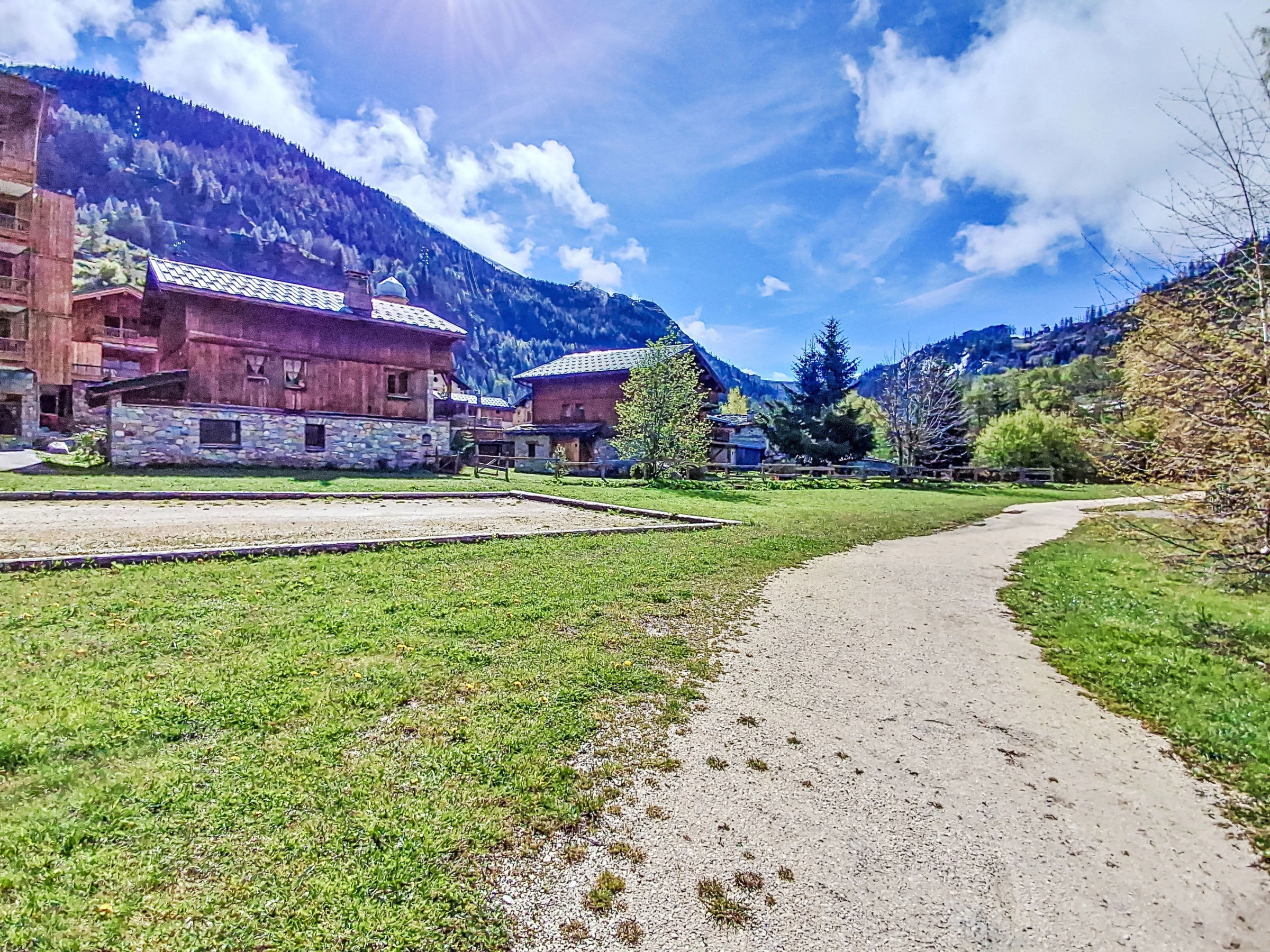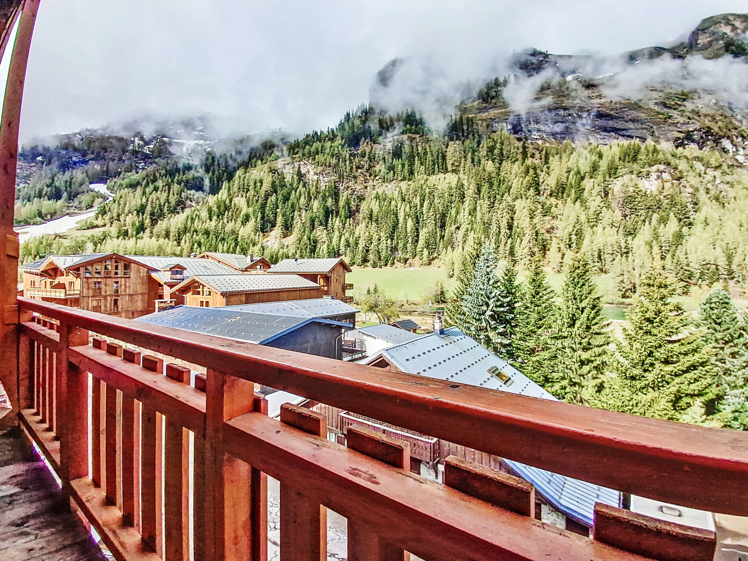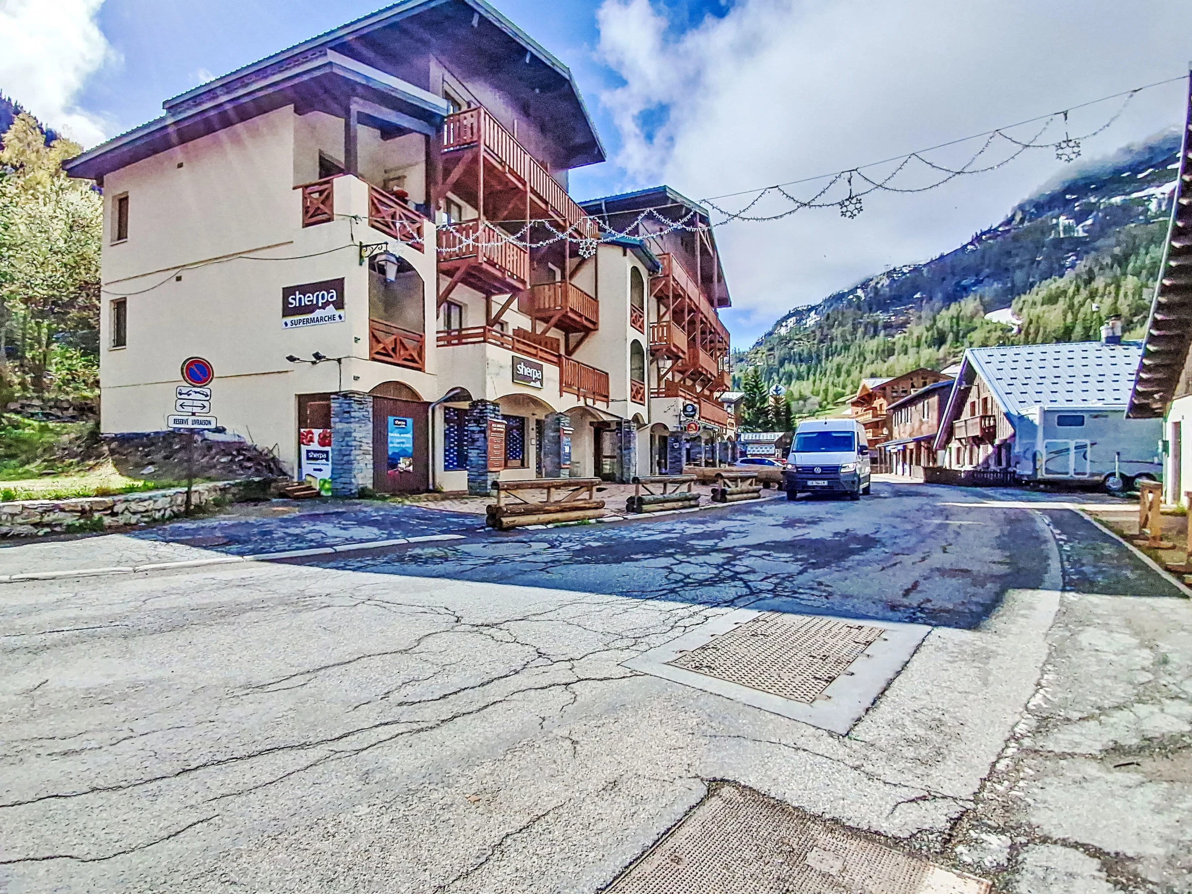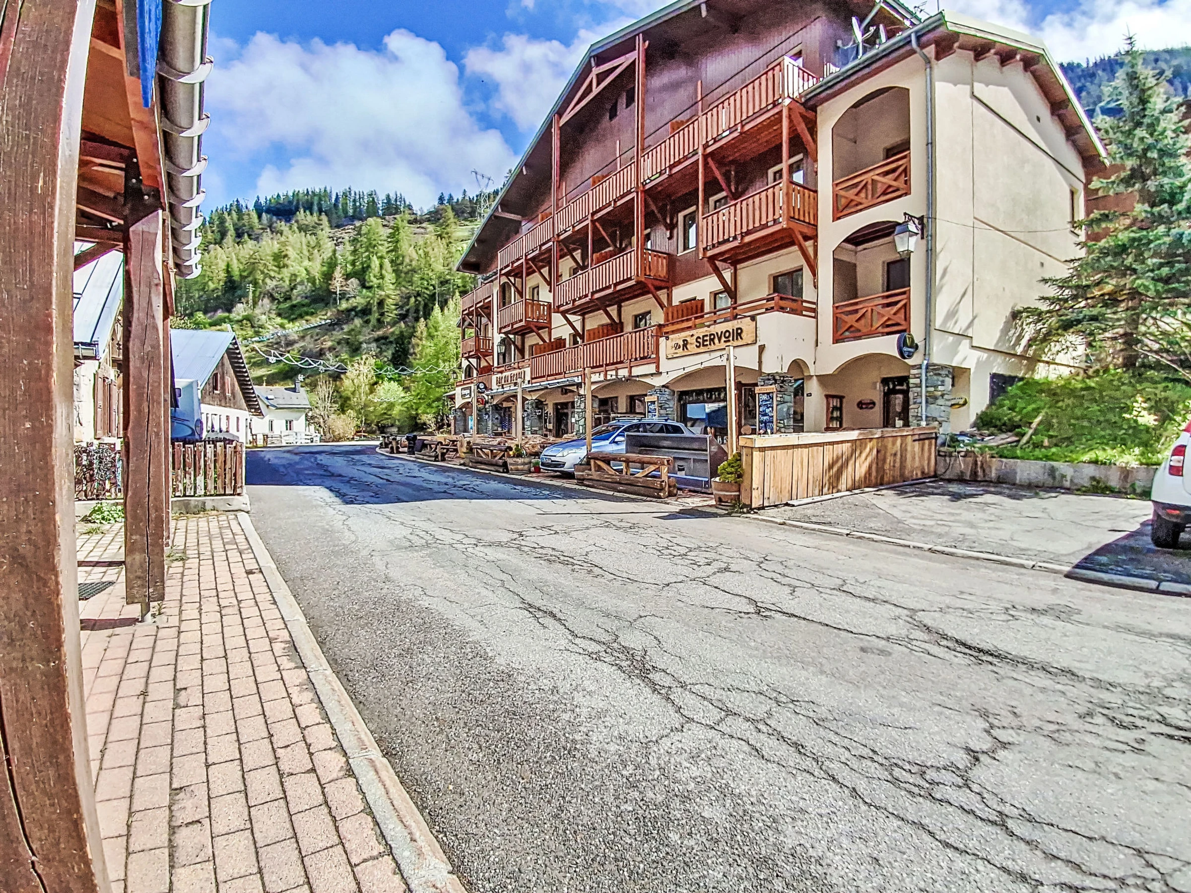 Tignes Les Brevières: Residence "Le Balcon des Brevières", 3 storeys. 100 m from the skiing area. Shop, supermarket 10 m, restaurant 20 m, bar 10 m, bus stop "Les Brevières" 100 m. Gondola lift, skisport facilities, slopes 100 m, ski rental 50 m.