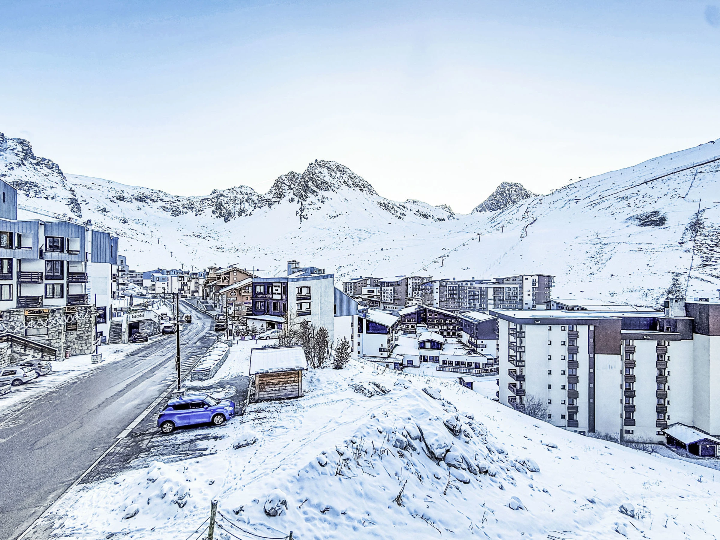 Tignes Val Claret: In the shopping centre residence "Le Curling B (Val Claret)", 6 storeys. In the centre of Tignes le Val Claret, 200 m from the skiing area. In the complex: lift, storage room for skis, central heating system. Public car park at 200 m, extra. Shop, supermarket 20 m, restaurant 10 m, bar 5 m, bakery 10 m, bus stop 300 m, indoor swimming pool 2 km. Sports centre 800 m, skisport facilities, ski school 200 m. Well-known ski regions can easily be reached: Espace Killy. Please note: groups of teenagers on request only. Ski bus (free of charge). In case of good snow conditions, the house is accessible on skis. Nightclub/disco close by 150 m from the property. Additional accommodations can be booked.
