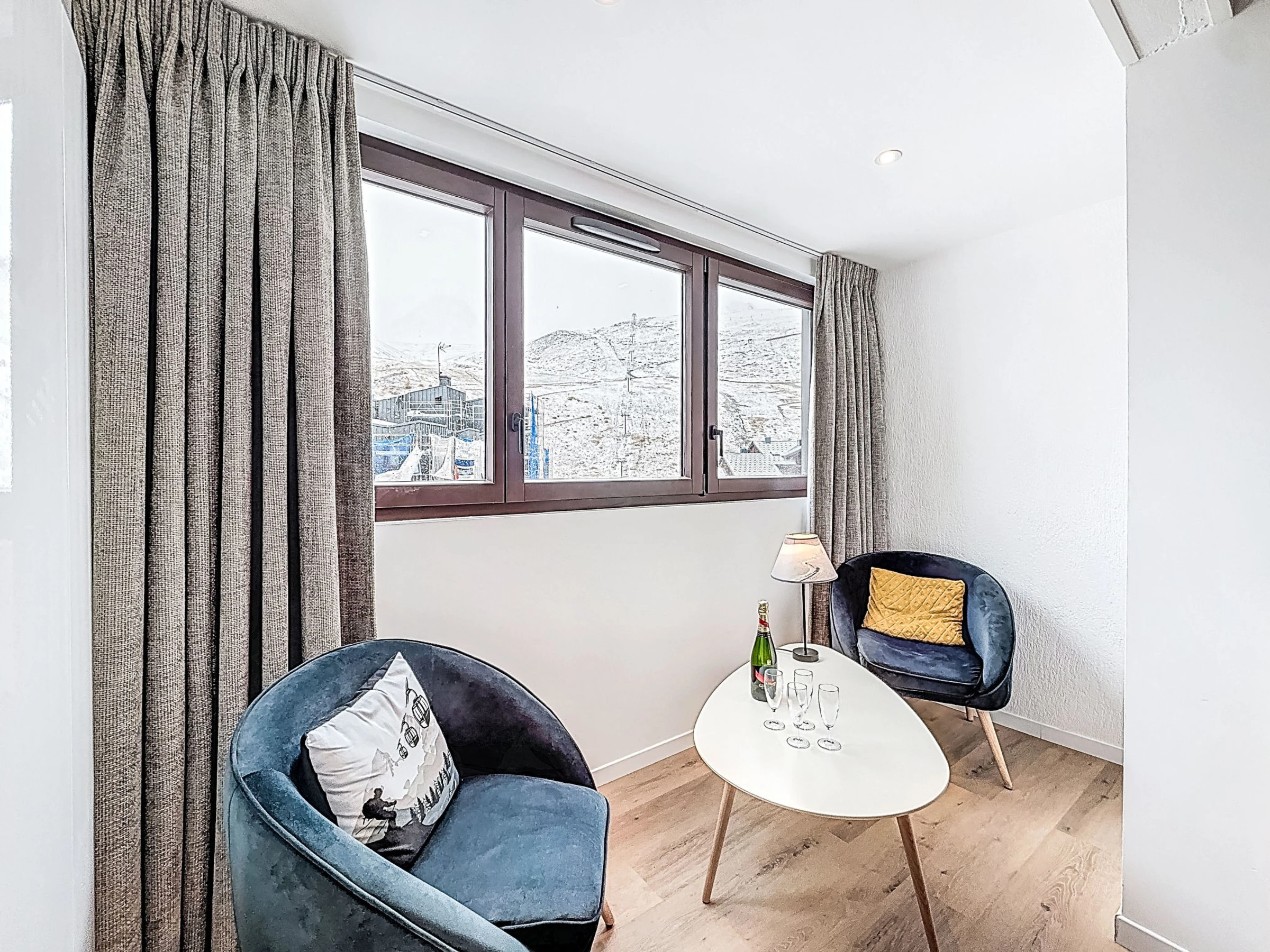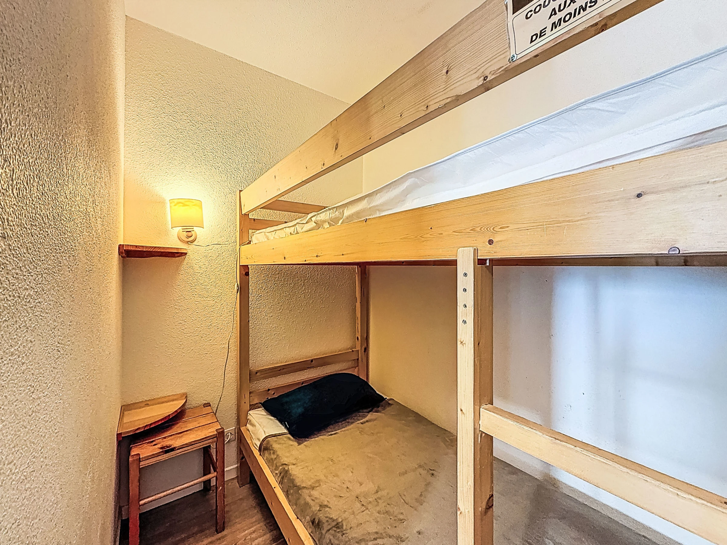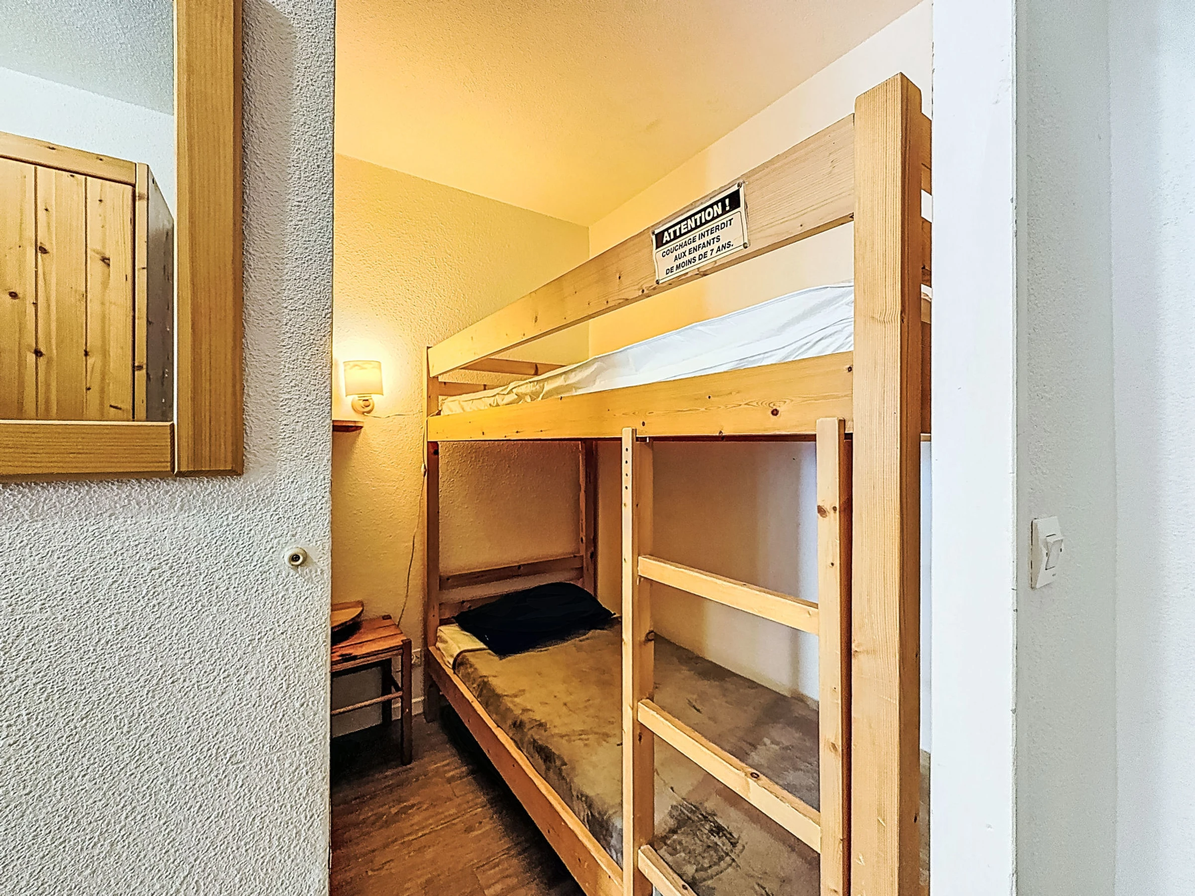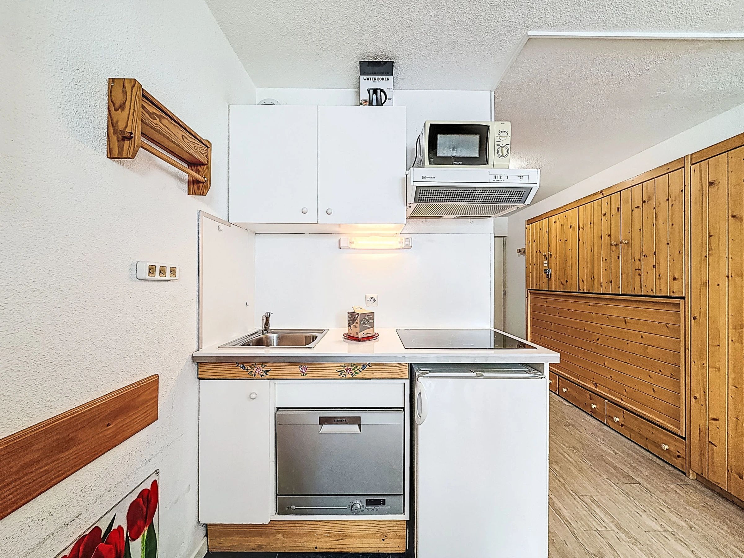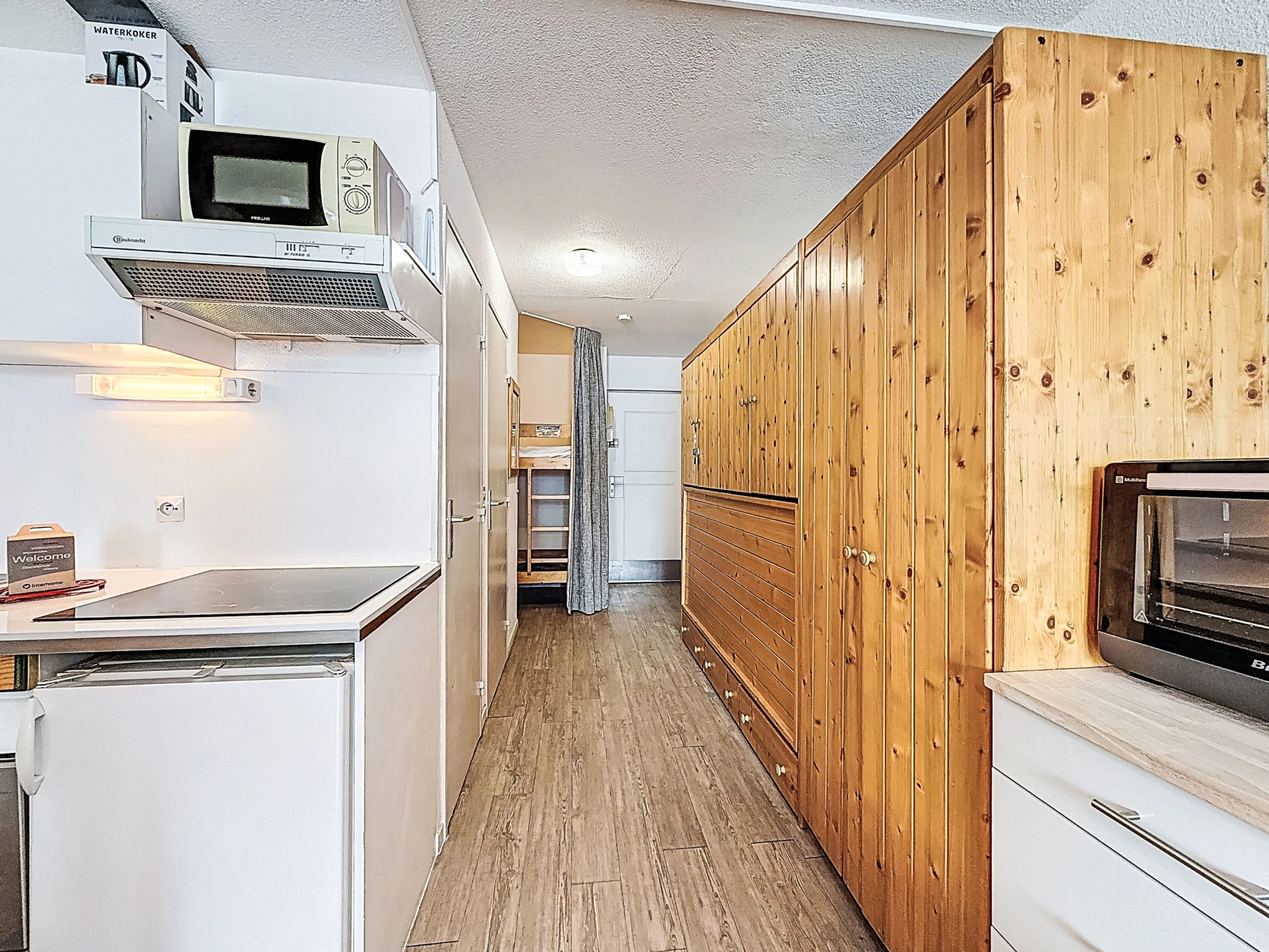 1-room apartment 28 m2 on 1st floor. Practical and beautiful furnishings: living/dining room with 1 double sofabed (1 x 140 cm, length 190 cm), satellite TV and flat screen. Sleeping alcove with curtain, without window with 1 x 2 bunk beds (80 cm). Entrance hall with 1 wall-trunk bed (80 cm). Kitchenette (oven, dishwasher, 3 induction hot plates, microwave, electric coffee machine). Bathroom, sep. WC. Beautiful view of the mountains and the ski run. Facilities: Internet (WiFi, extra). Please note: smoke alarm. Instead of an enclosed bedroom, some sleeping areas are located in an open-plan area (gallery, alcove, etc.).