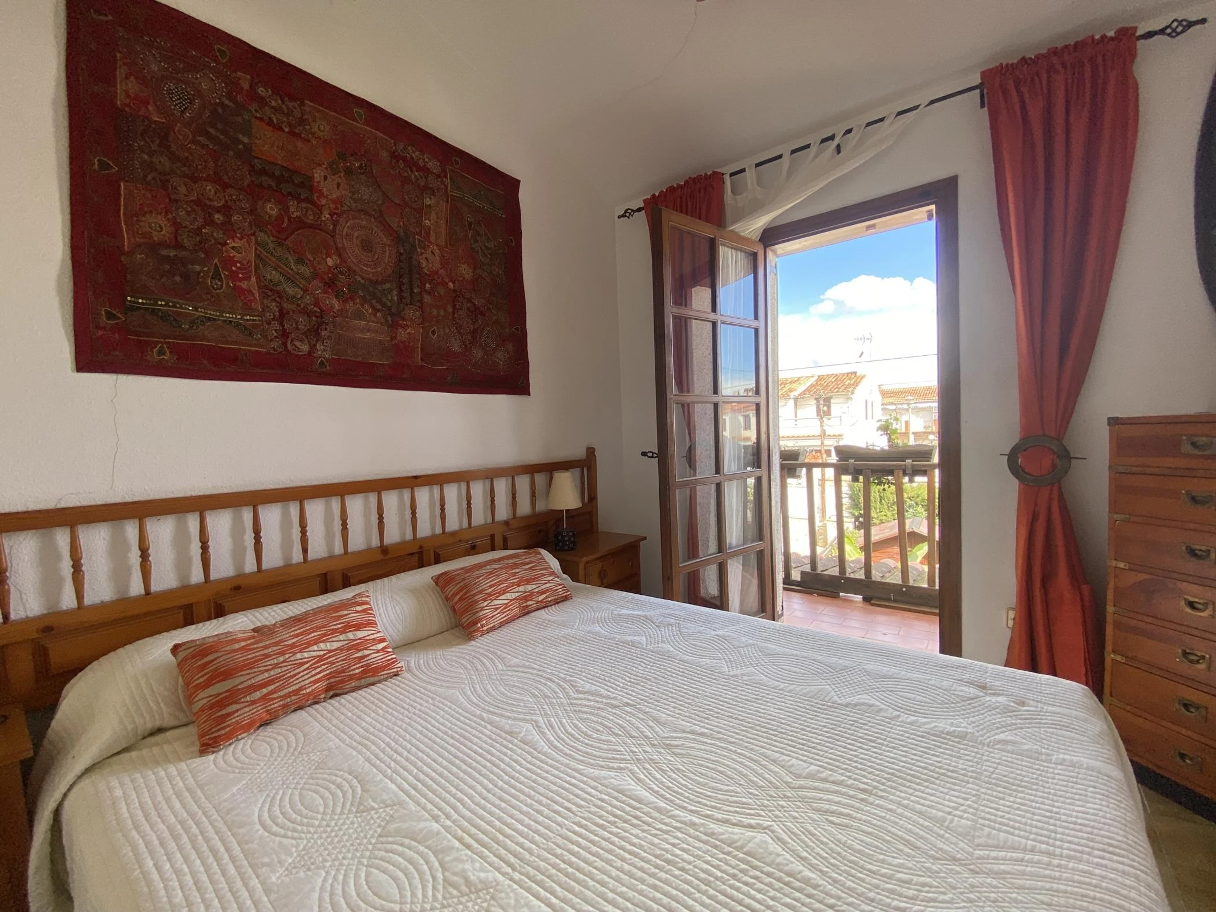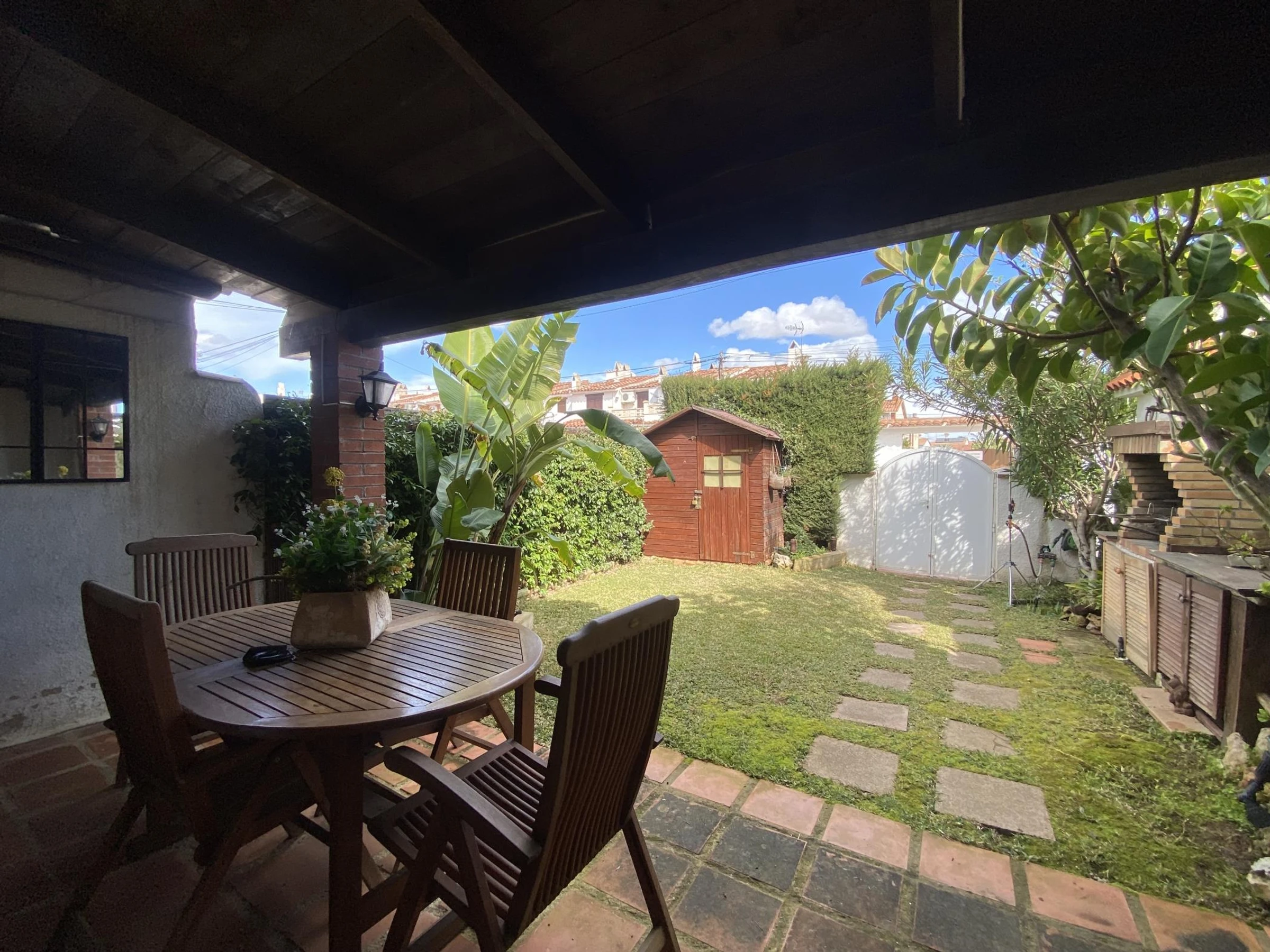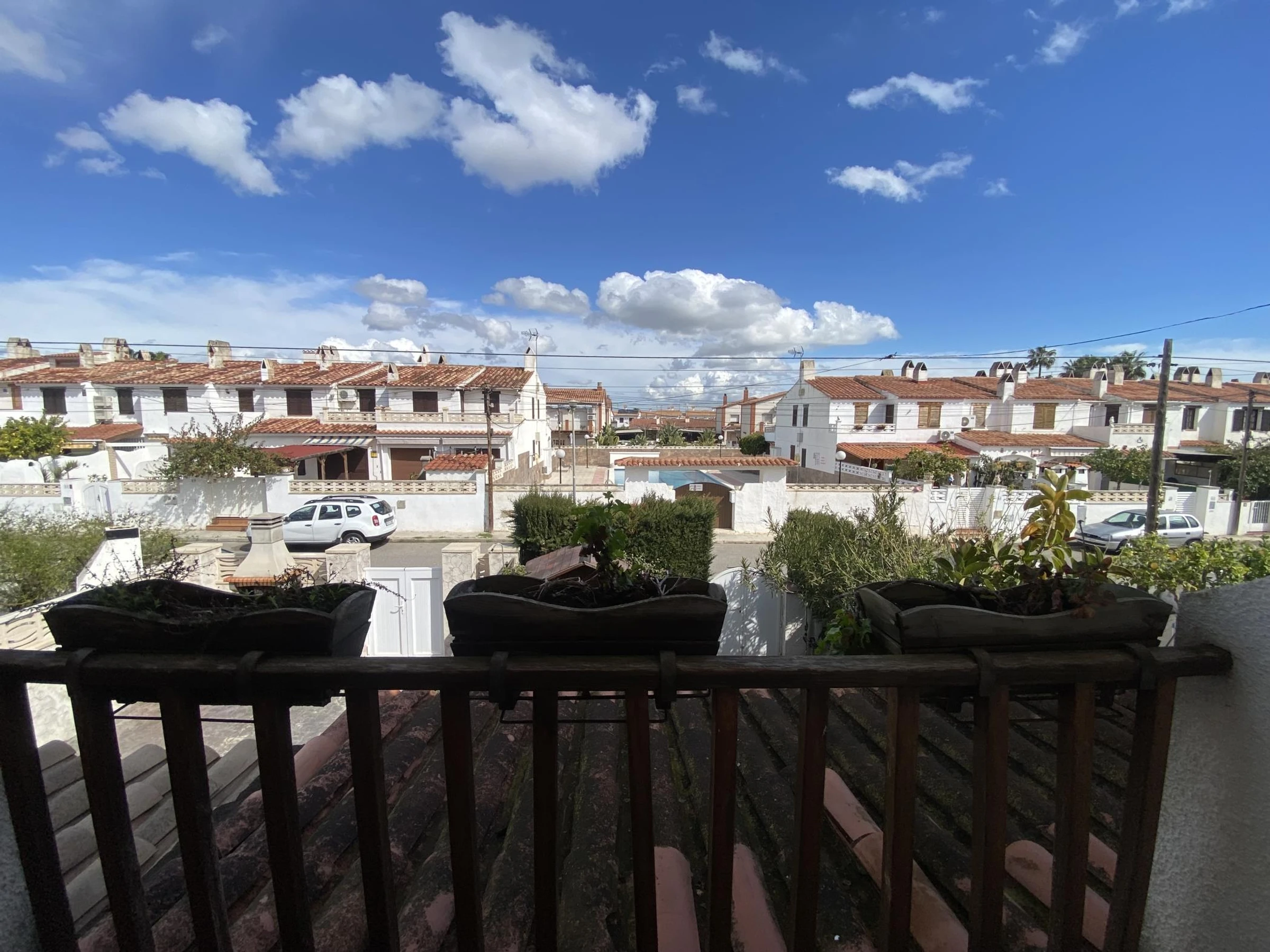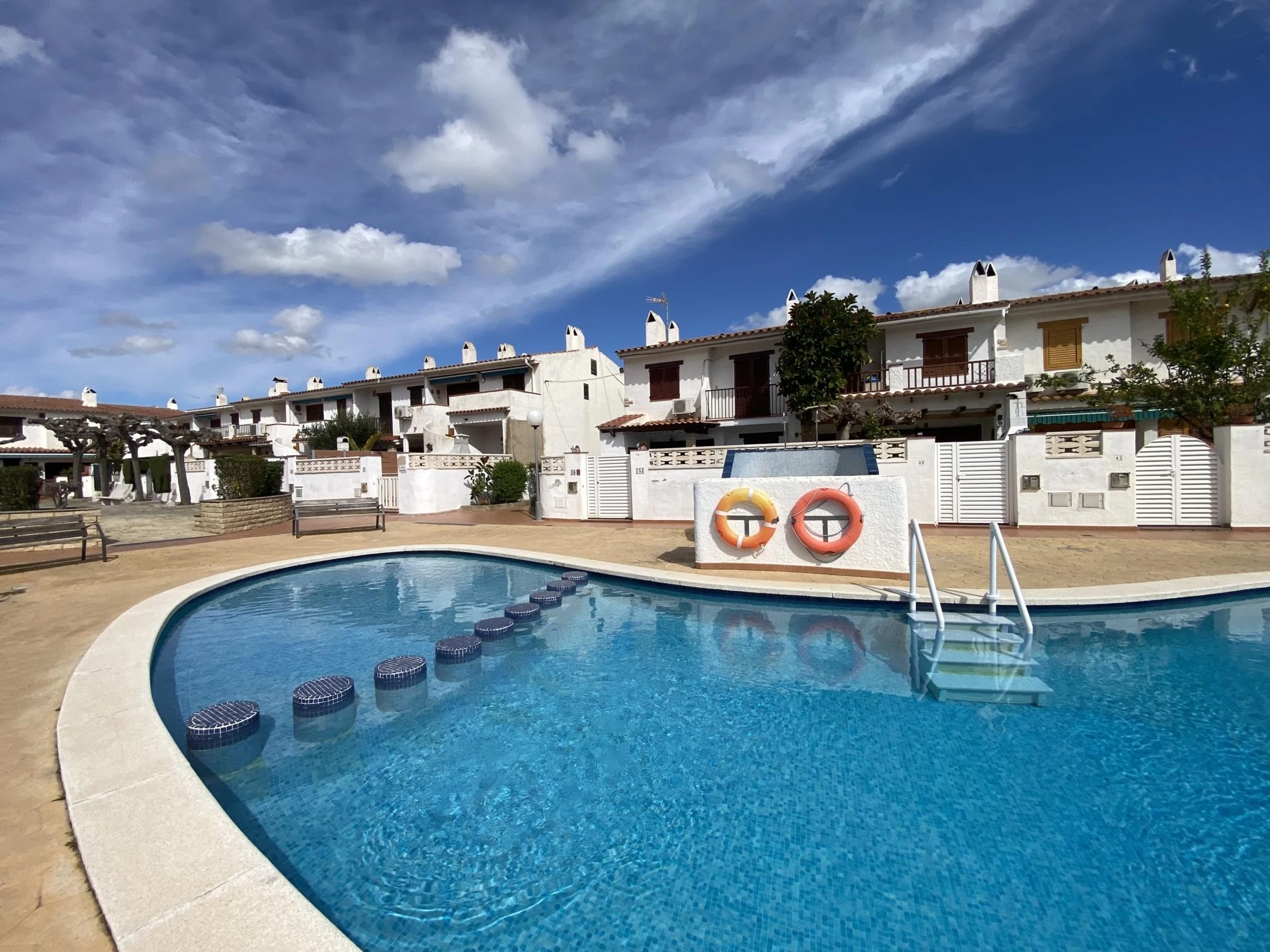 The house is part of a quiet community with access to a shared swimming pool, perfect for cooling off and unwinding. The parking is on the street free of charge.