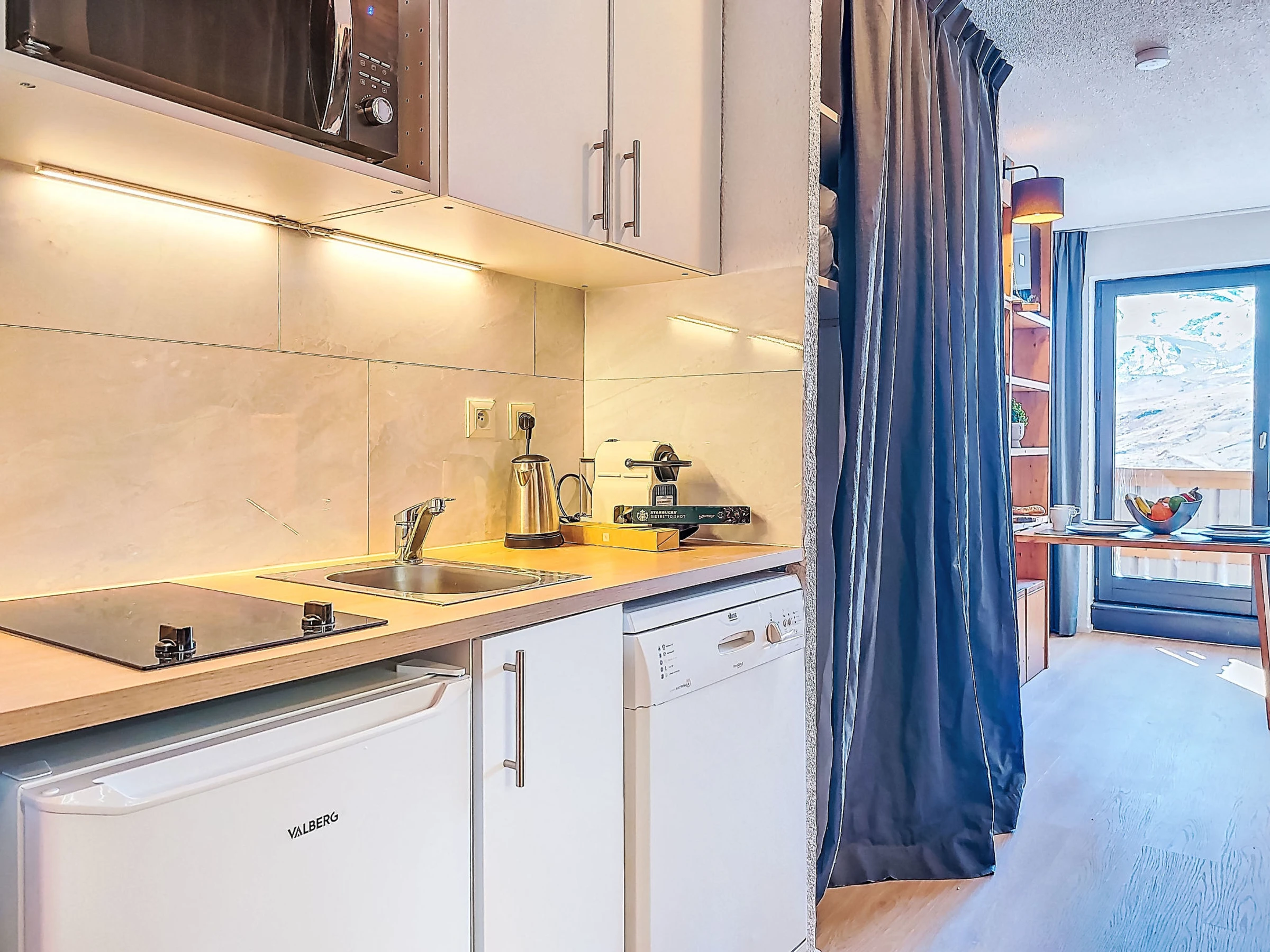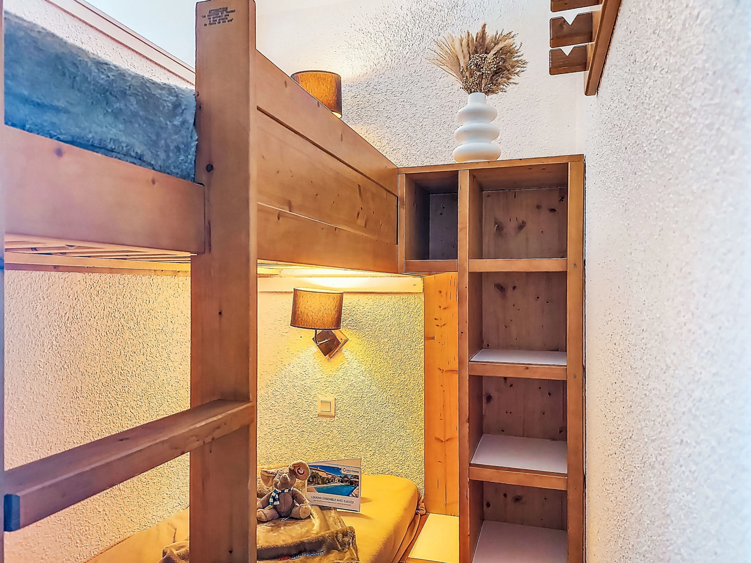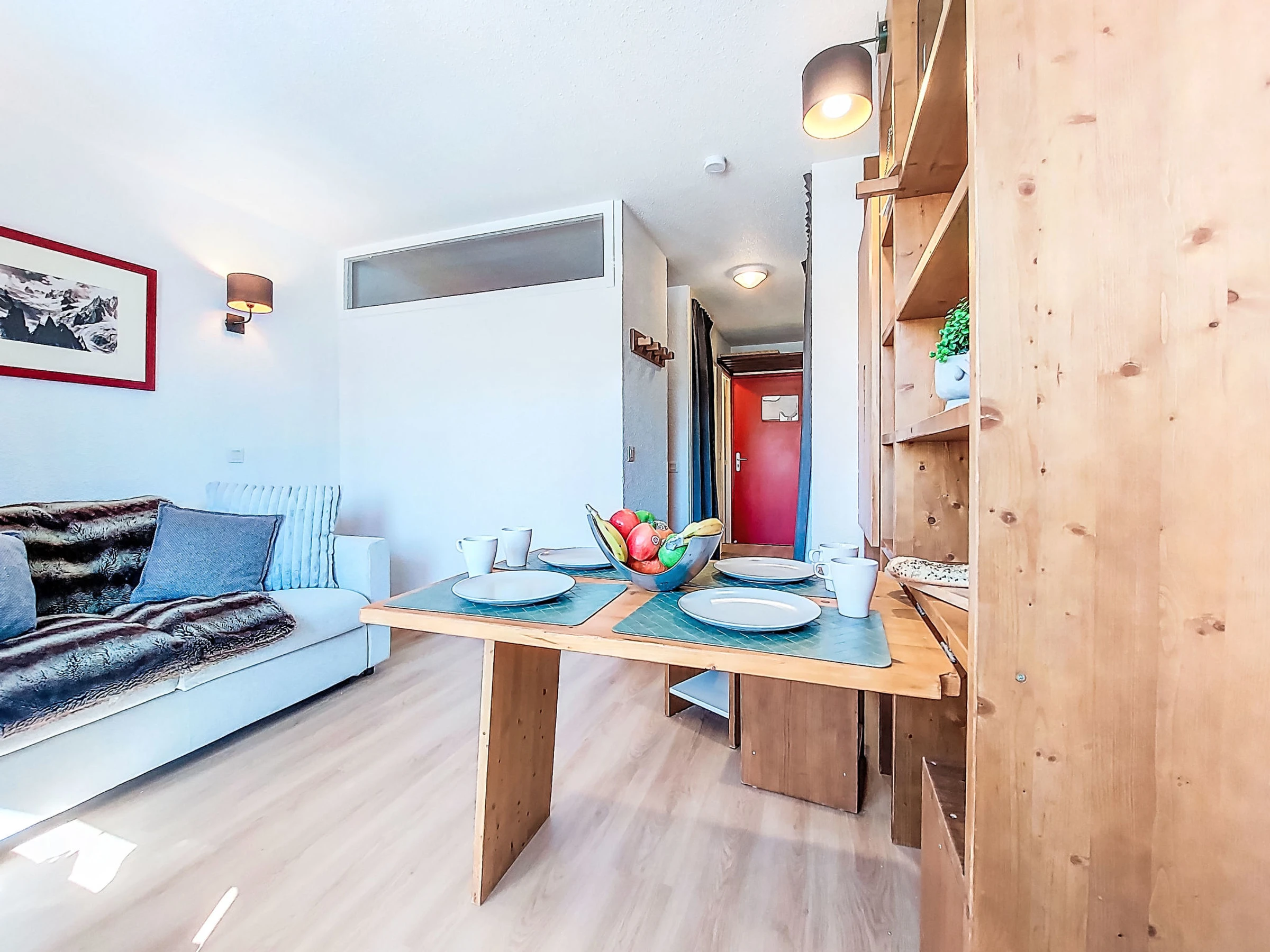 1-room studio 22 m2 on 6th floor, south facing position. Fully renovated in 2025, practical and comfortable furnishings: living/dining room with 1 double sofabed (1 x 140 cm, length 190 cm), dining nook and TV (flat screen), electric heating. Sleeping alcove with 1 x 2 bunk beds (80 cm, length 190 cm). Entrance hall with kitchen corner. Kitchenette (dishwasher, 2 induction hot plates, toaster, kettle, electric coffee machine, Capsules for coffee machine (Nespresso) extra, combination microwave). Shower, sep. WC. Electric heating. Parquet floors. Small balcony 3 m2. Very beautiful panoramic view of the mountains, the valley and the resort. Facilities: safe. Internet (WiFi, extra). Please note: non-smokers only. Smoke alarm. Offer by a private individual according to Art. 155, IV of CGI. [hidden]