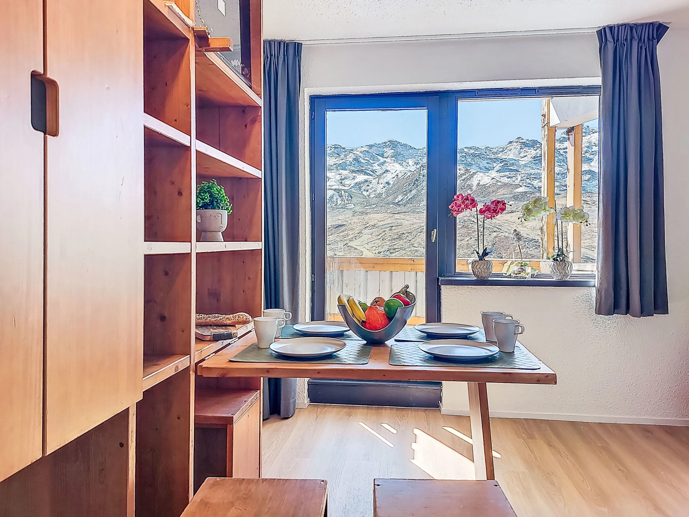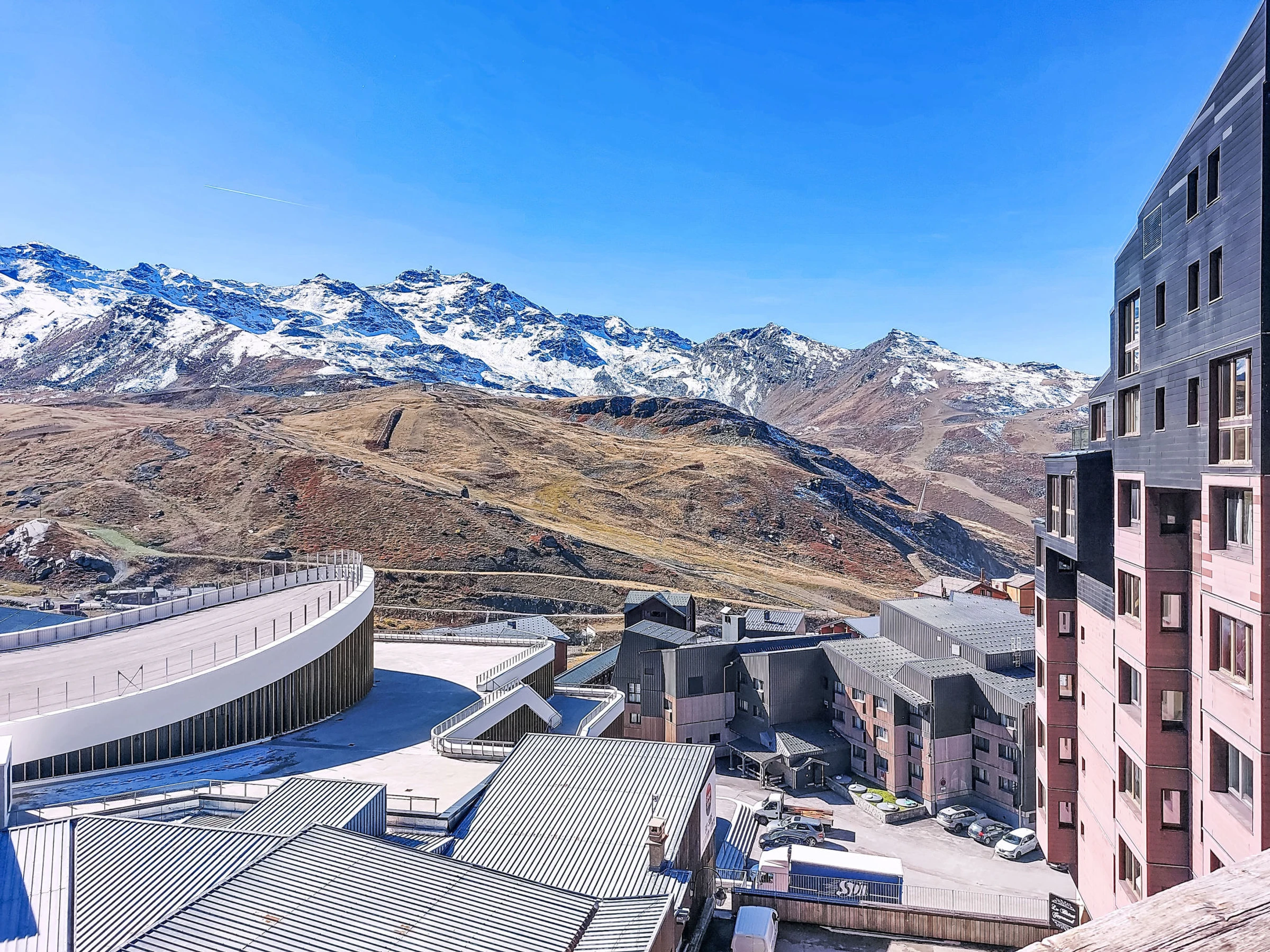 Residence "Les Olympiades", 7 storeys. In the centre of Val Thorens, in the resort, in a central, busy, sunny position in the residential district, 100 m from the skiing area. In the complex: lift, storage room for skis. In Winter: please take snow chains. Public car park at 50 m, extra. E-charging station. Shop, grocery, supermarket, shopping centre, restaurant 5 m, bar 50 m, bakery, café 5 m, pedestrian zone 2 m, bus stop "navette gratuit" 200 m, outdoor swimming pool 50 m. Sports centre 10 m, cable car 150 m, chair lift 50 m, gondola lift 10 m, slopes 50 m, ski rental 5 m, ski bus stop 150 m, ski school 100 m, ice rink 500 m. Nearby attractions: Centre Sportif 100 m. Well-known ski regions can easily be reached: domaine des 3 Vallées 100 m, Val Thorens – Orelle 100 m. Well-known lakes can easily be reached: Lac du Lou 800 m, Lac du Menuires 600 m. Please note: entertainment in the season. Suitable for families, baby equipment on request (extra). The owner does not accept any youth groups. Ski bus (free of charge). In case of good snow conditions, the house is accessible on skis. The apartment is located in a zone with limited traffic. Additional accommodations can be booked.