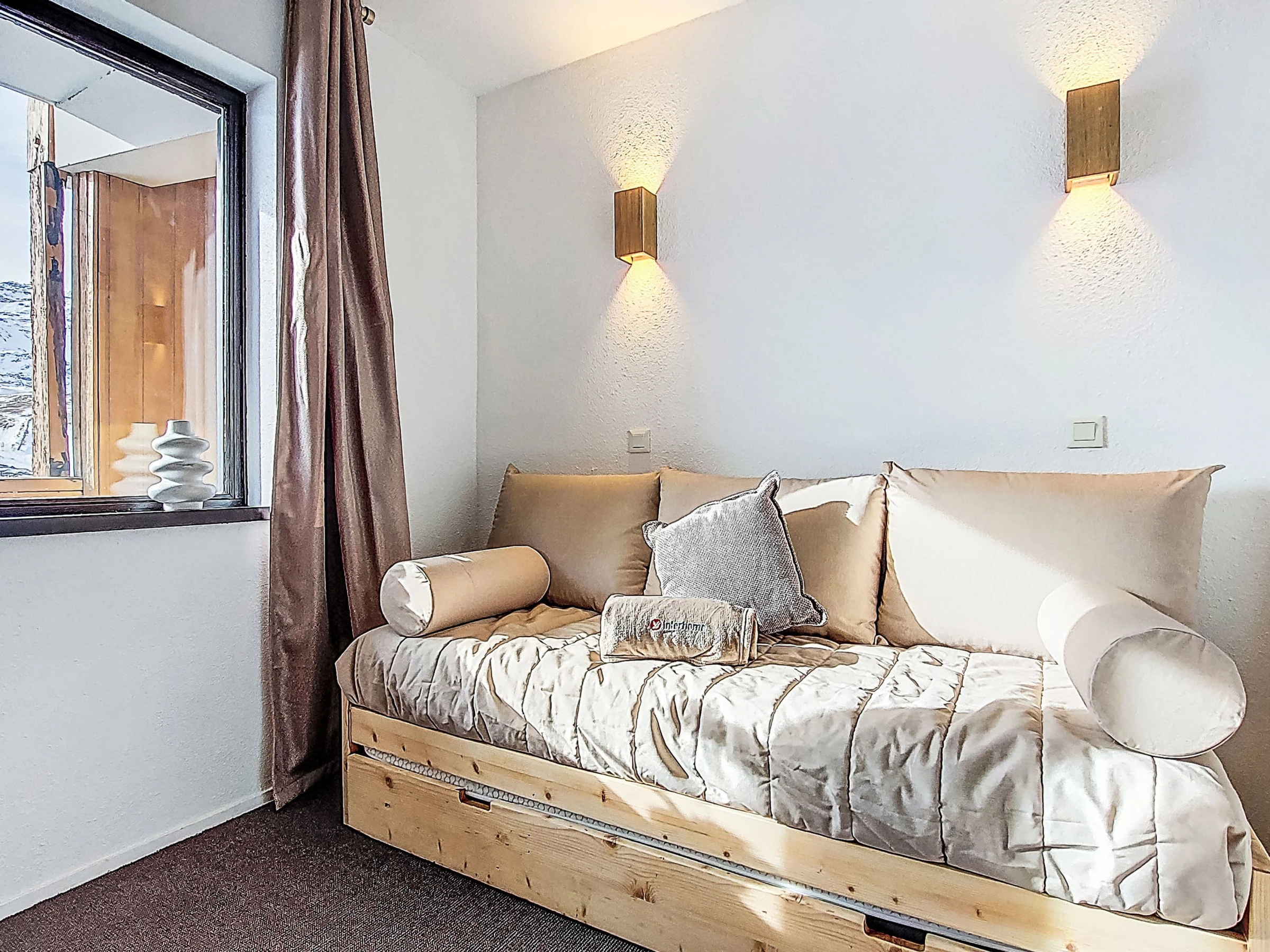 Residence "Les Olympiades", 7 storeys. In the centre of Val Thorens, in the resort, in a central, busy, sunny position in the residential district, 100 m from the skiing area. In the complex: lift, storage room for skis. In Winter: please take snow chains. Public car park at 50 m, extra. E-charging station. Shop, grocery, supermarket, shopping centre, restaurant 5 m, bar 50 m, bakery, café 5 m, pedestrian zone 2 m, bus stop "navette gratuit" 200 m, outdoor swimming pool 50 m. Sports centre 10 m, cable car 150 m, chair lift 50 m, gondola lift 10 m, slopes 50 m, ski rental 5 m, ski bus stop 150 m, ski school 100 m, ice rink 500 m. Nearby attractions: Centre Sportif 100 m. Well-known ski regions can easily be reached: domaine des 3 Vallées 100 m, Val Thorens – Orelle 100 m. Well-known lakes can easily be reached: Lac du Lou 800 m, Lac du Menuires 600 m. Please note: entertainment in the season. Suitable for families, baby equipment on request (extra). The owner does not accept any youth groups. Ski bus (free of charge). In case of good snow conditions, the house is accessible on skis. The apartment is located in a zone with limited traffic. Additional accommodations can be booked.