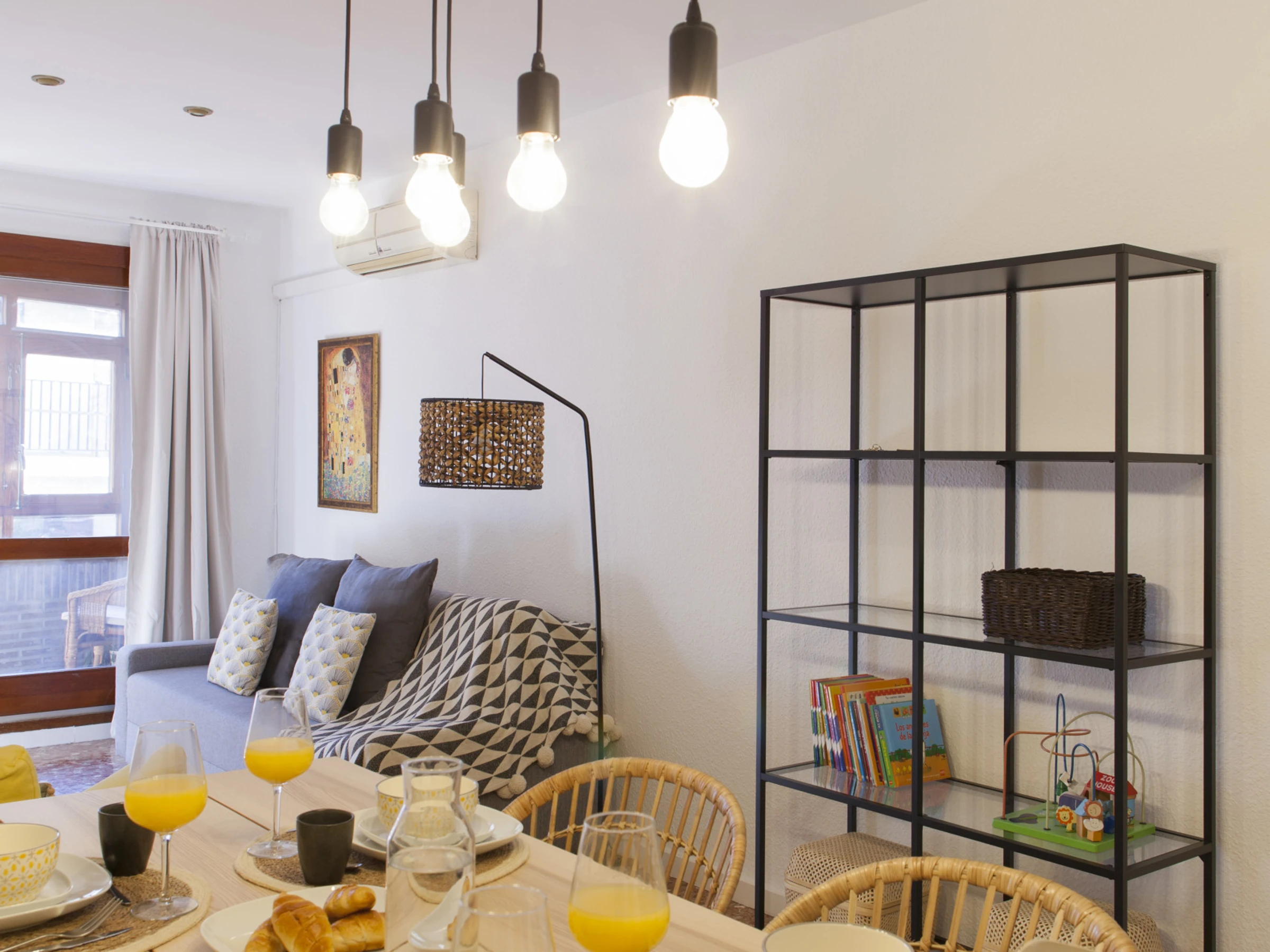 Cozy apartment located in the heart of the old town, a few steps from the emblematic Torres de Quart. This apartment has a room with a double bed, a living room with a double sofa bed, a full kitchen and a bathroom with a bathtub. The apartment is ideal for a family or a small group of friends.