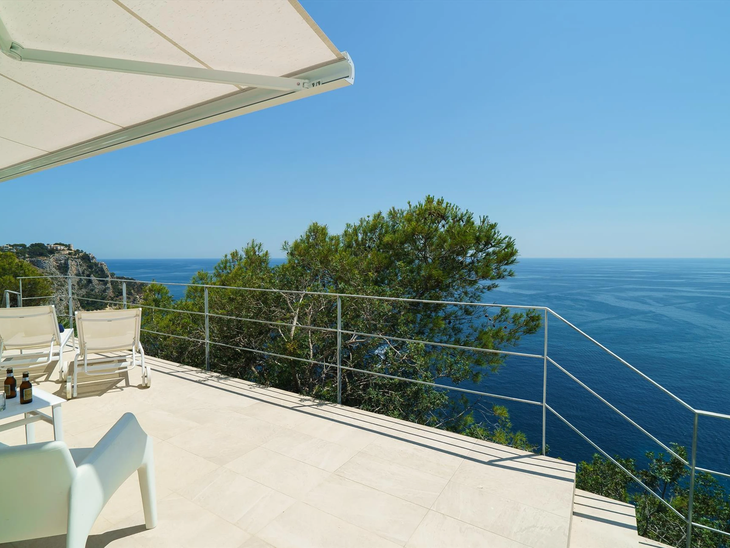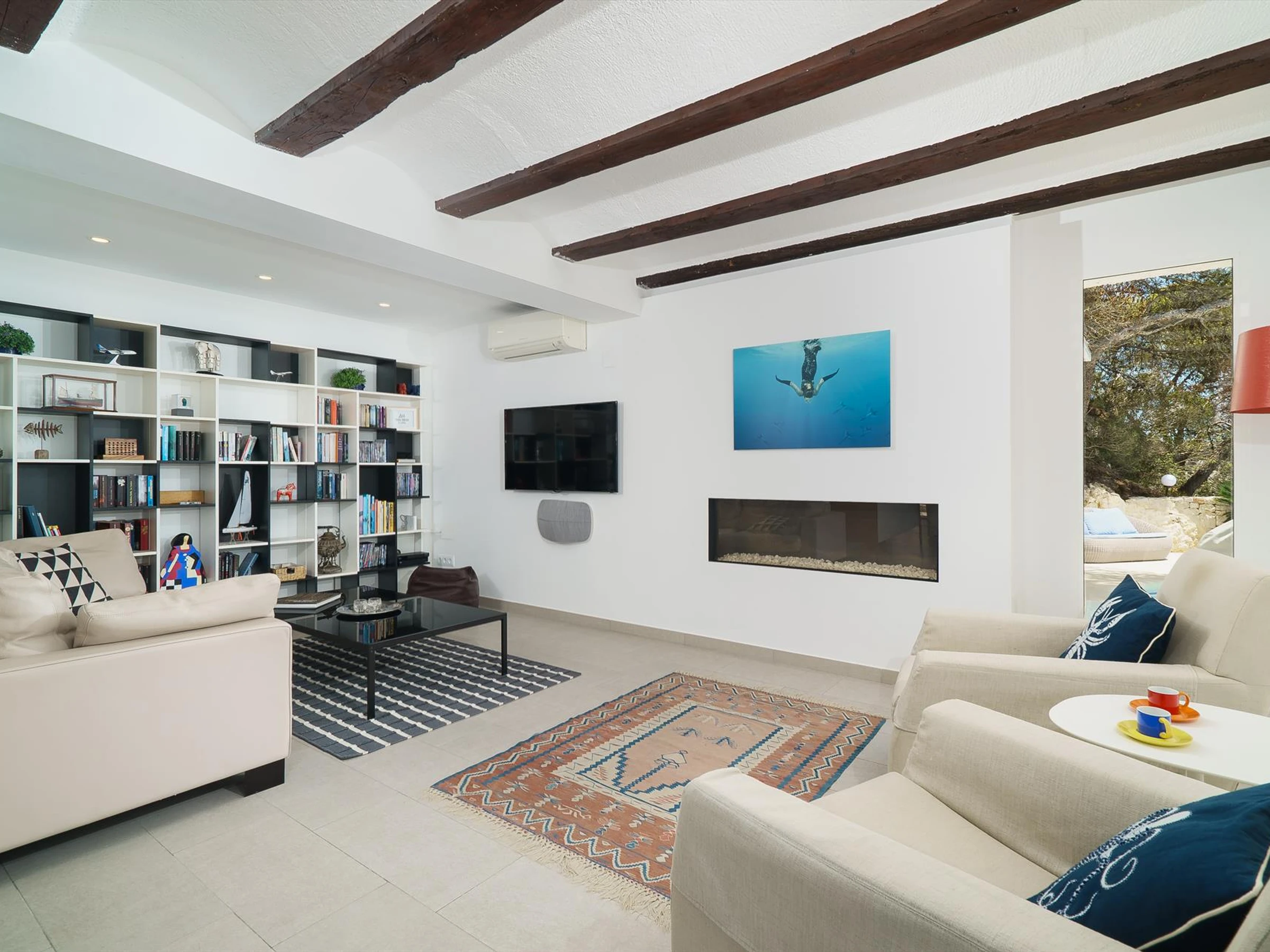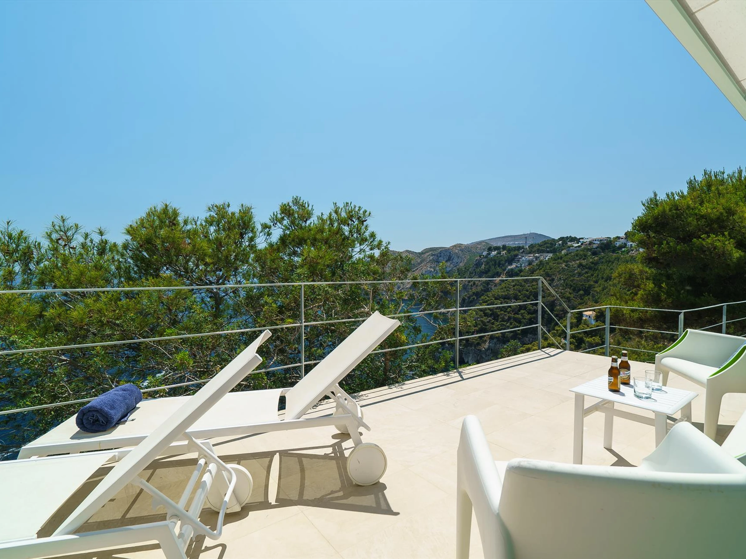 Modern luxury front line villa with private pool in Javea, Costa Blanca, Spain for 6 persons. The villa is situated in a residential and mountainous beach area 3 km from La Grandella, Javea beach.