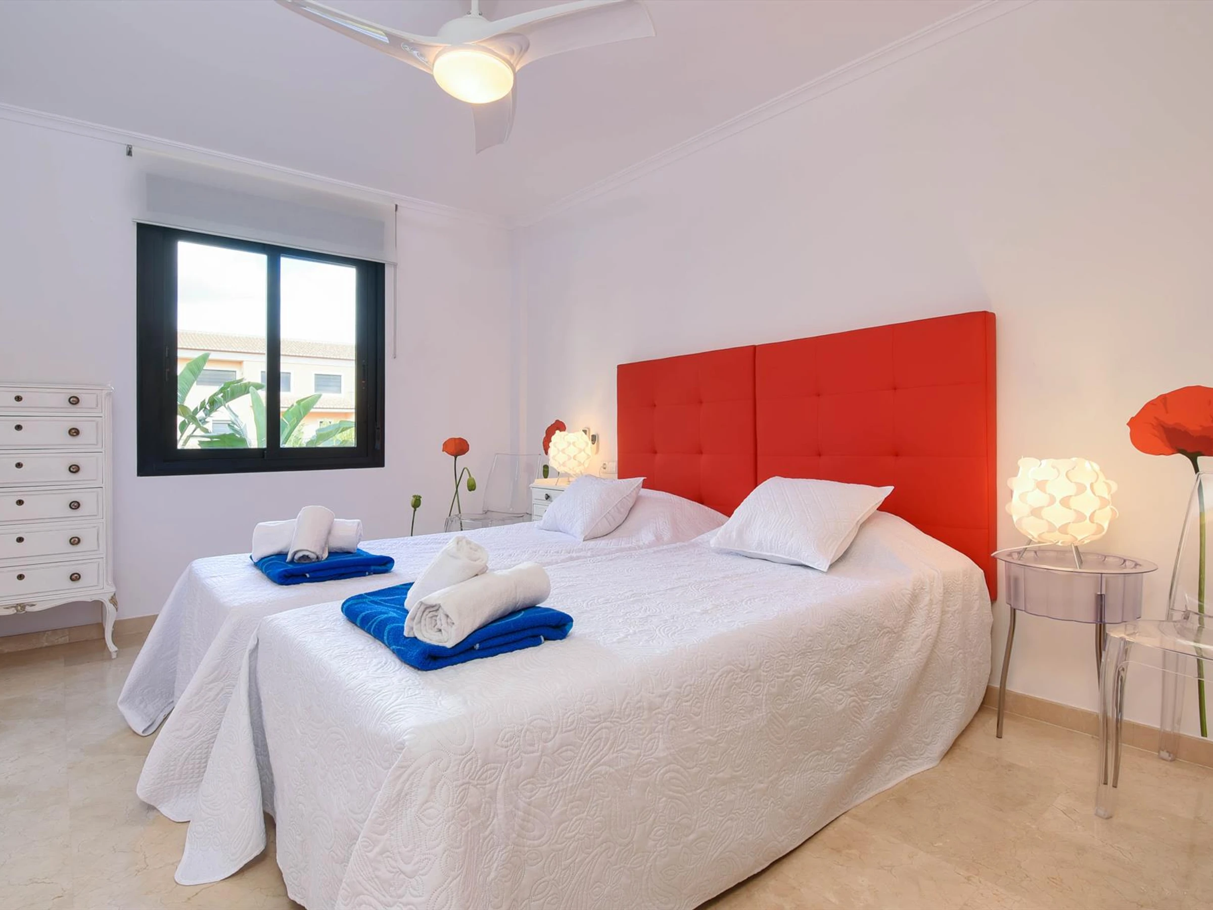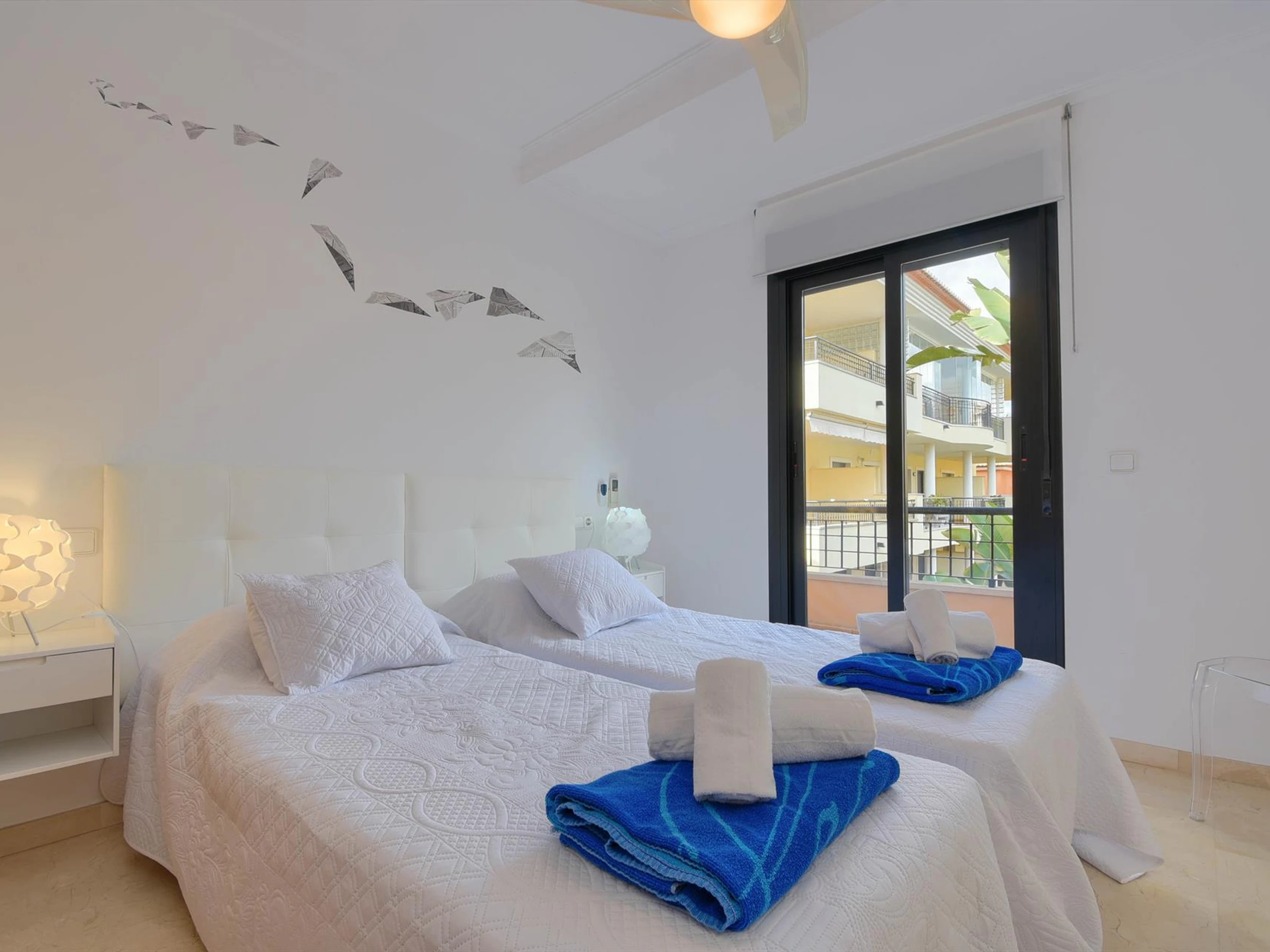 * 2 air-conditioned bedrooms, each with 2 single beds and fan