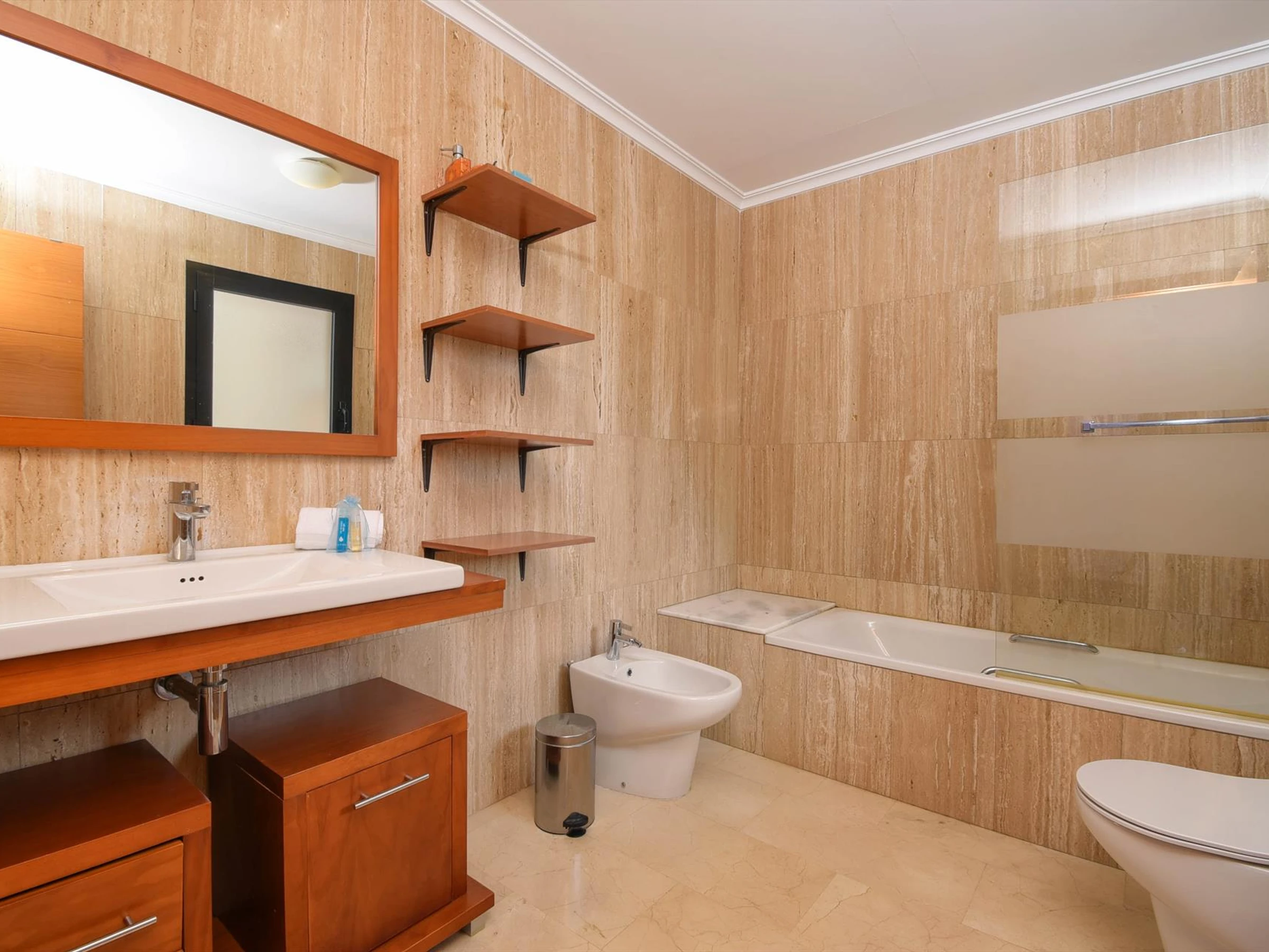 The apartment has 3 bedrooms and 4 bathrooms, spread over 3 levels. The