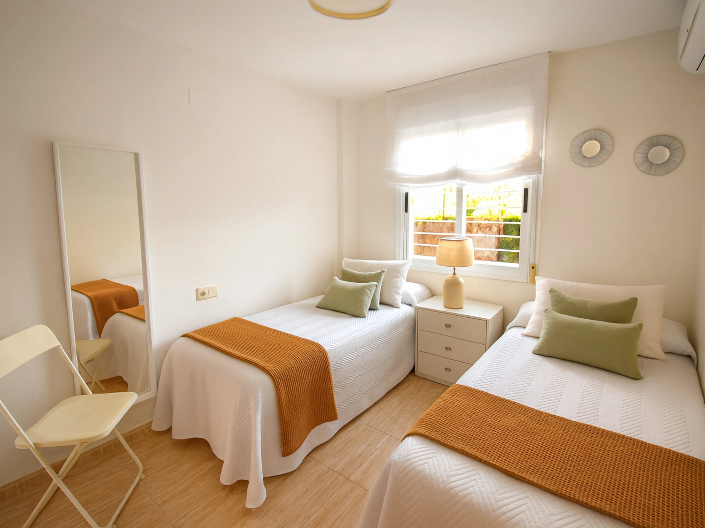 2 bedrooms (one with a double bed and the other with two single beds)