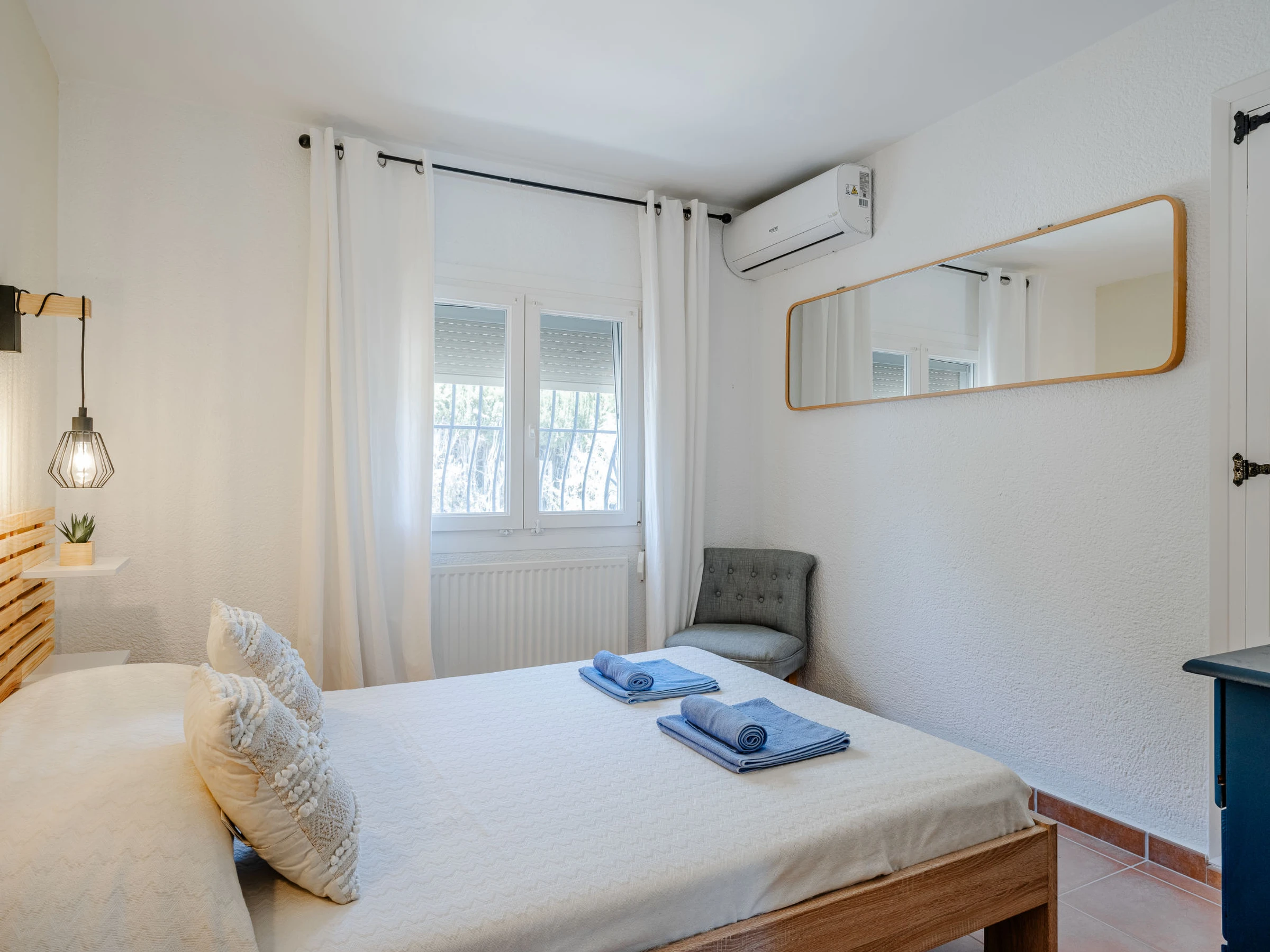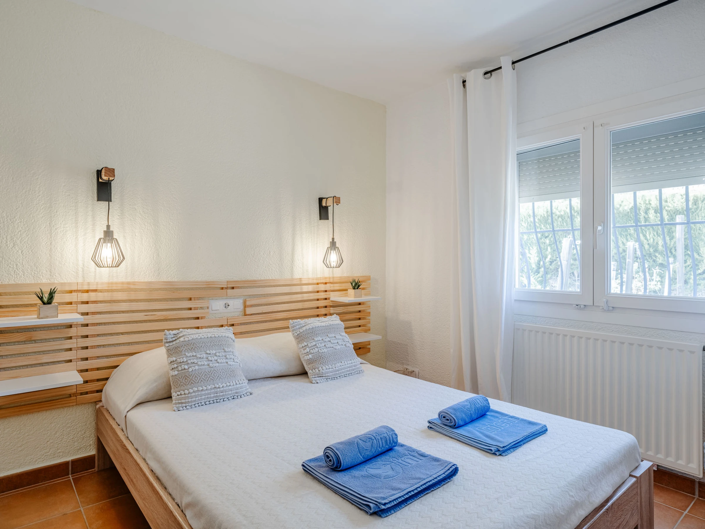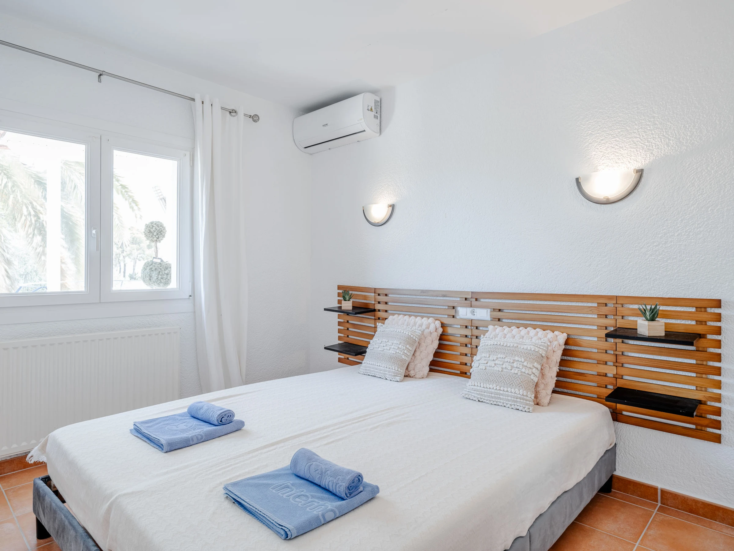 "Baloma Plus", 5-room house 230 m2. Spacious and bright, very comfortable and stylish furnishings: living/dining room with satellite TV, air conditioning and forced-air heating. Exit to the loggia, to the patio, to the swimming pool. 1 room with 1 french bed (160 cm, length 200 cm), shower/WC, air conditioning and forced-air heating. 1 room with 1 french bed (140 cm, length 200 cm), air conditioning and forced-air heating. 1 room with 1 double bed (2 x 80 cm, length 200 cm), air conditioning and forced-air heating. Large kitchen (oven, dishwasher, 4 induction hot plates, toaster, kettle, microwave, freezer, electric coffee machine, Capsules for coffee machine (Nespresso) extra). Exit to the terrace. Shower/WC. On the lower ground floor: (exterior staircase), 1 room with 1 french bed (160 cm, length 200 cm), shower/WC, air conditioning, fan and forced-air heating. Exit to the patio, to the swimming pool. Large terrace, large garden. Terrace furniture, barbecue, deck chairs (8), covered balcony, sitting area. Very beautiful view of the mountains and the valley. Facilities: washing machine, iron, hair dryer. Internet (WiFi, free). Parking (roofed, 2 cars). Please note: one double bedroom is outside the apartment. [hidden] // Reg. Nr.: ESFCTU00000307100032192800000000000000000[hidden]6