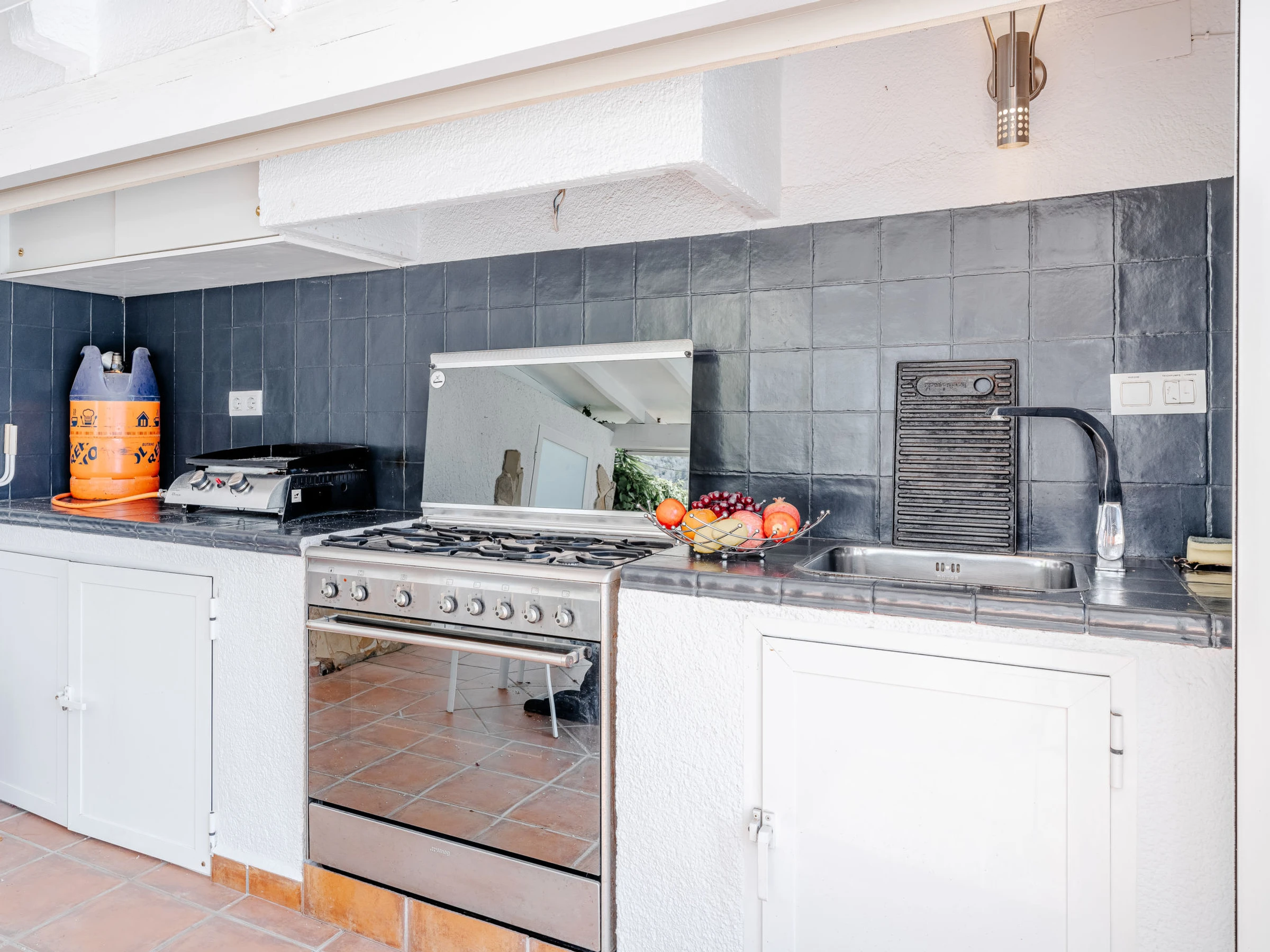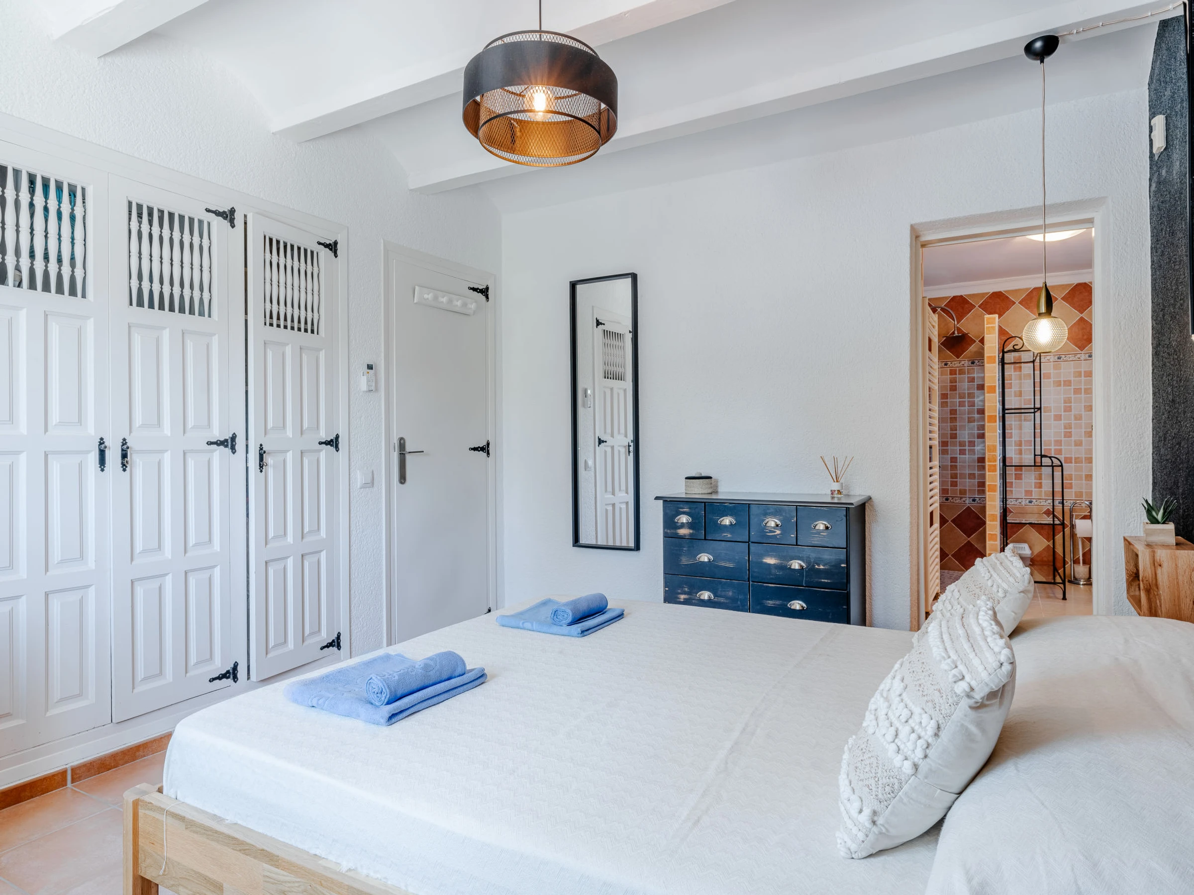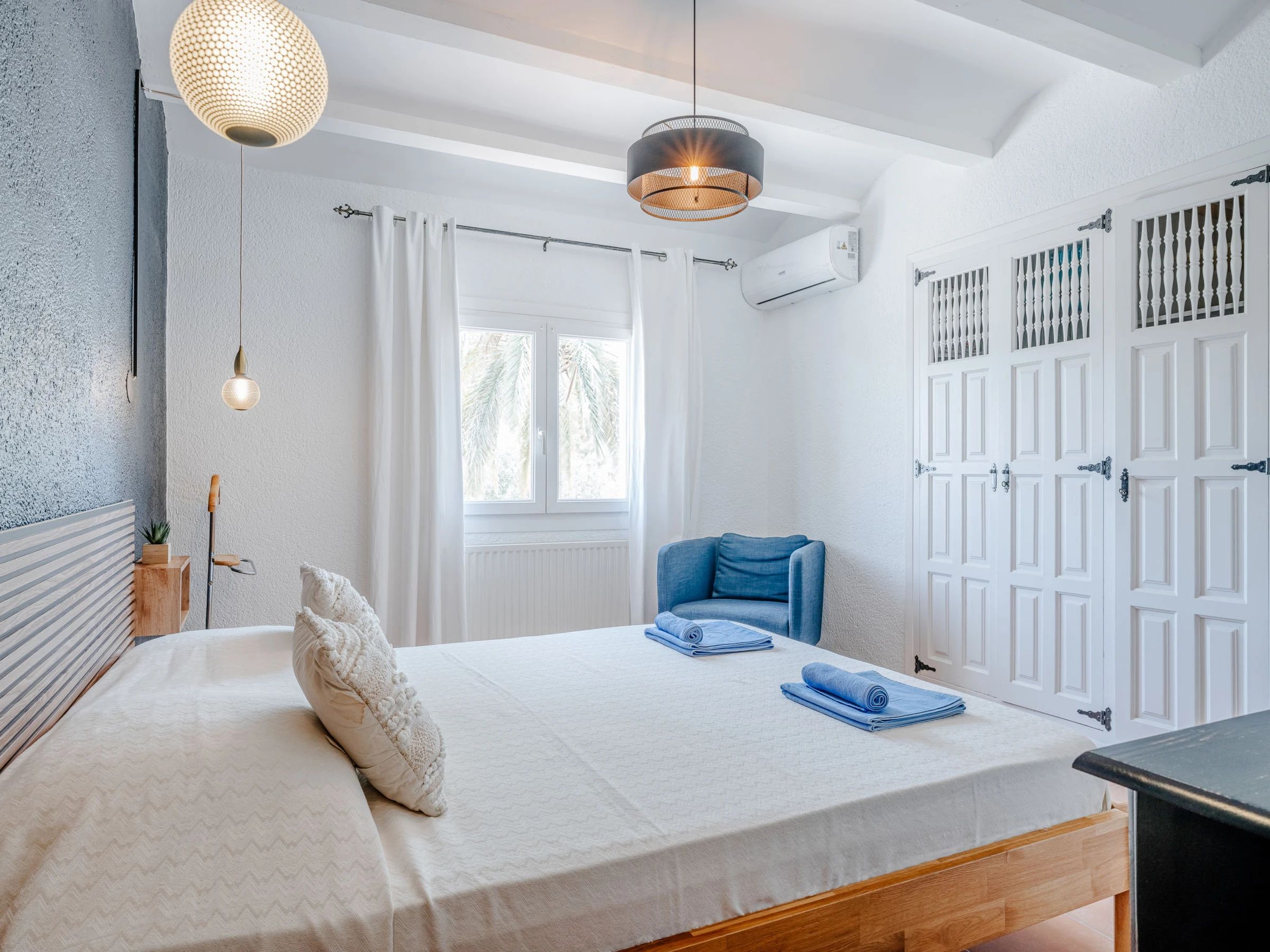 "Baloma Plus", 5-room house 230 m2. Spacious and bright, very comfortable and stylish furnishings: living/dining room with satellite TV, air conditioning and forced-air heating. Exit to the loggia, to the patio, to the swimming pool. 1 room with 1 french bed (160 cm, length 200 cm), shower/WC, air conditioning and forced-air heating. 1 room with 1 french bed (140 cm, length 200 cm), air conditioning and forced-air heating. 1 room with 1 double bed (2 x 80 cm, length 200 cm), air conditioning and forced-air heating. Large kitchen (oven, dishwasher, 4 induction hot plates, toaster, kettle, microwave, freezer, electric coffee machine, Capsules for coffee machine (Nespresso) extra). Exit to the terrace. Shower/WC. On the lower ground floor: (exterior staircase), 1 room with 1 french bed (160 cm, length 200 cm), shower/WC, air conditioning, fan and forced-air heating. Exit to the patio, to the swimming pool. Large terrace, large garden. Terrace furniture, barbecue, deck chairs (8), covered balcony, sitting area. Very beautiful view of the mountains and the valley. Facilities: washing machine, iron, hair dryer. Internet (WiFi, free). Parking (roofed, 2 cars). Please note: one double bedroom is outside the apartment. [hidden] // Reg. Nr.: ESFCTU00000307100032192800000000000000000[hidden]6