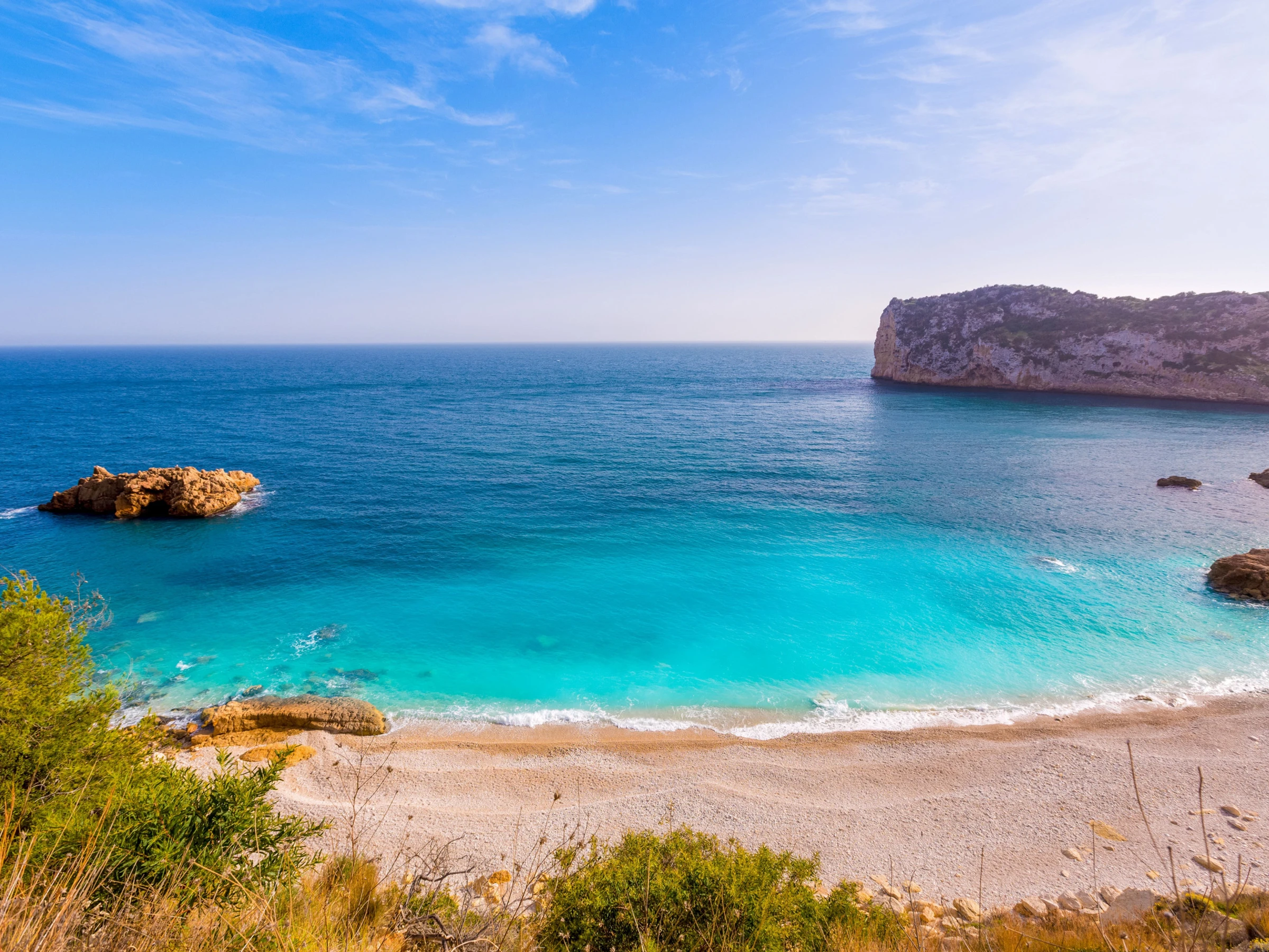 This beautiful one-bedroom apartment in Ibizan style is a step away from the rocky beaches of Montañar II in Jávea, and a 10-minute walk from the main sandy beach, bars and restaurants of the popular Arenal.