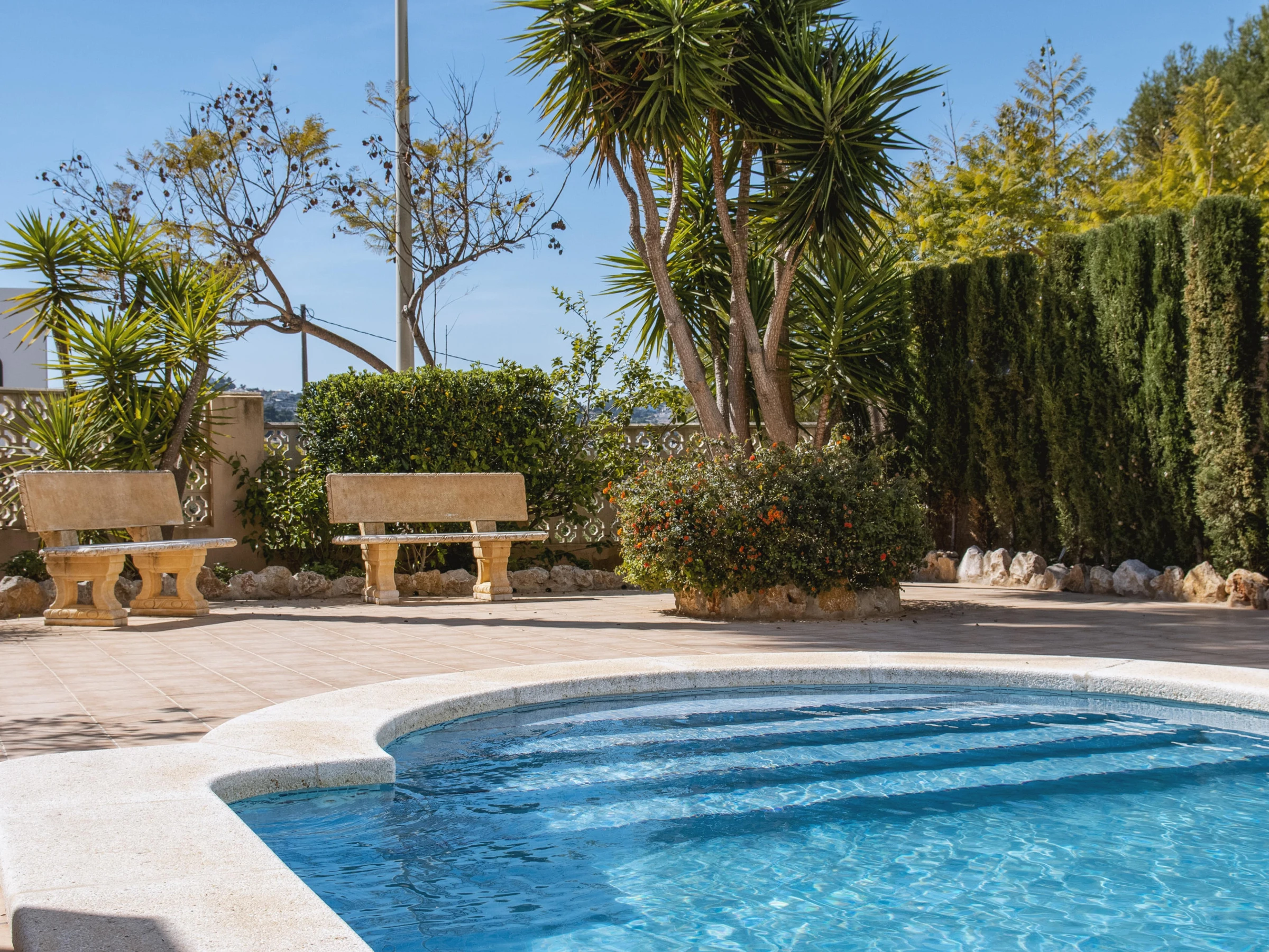 The attractive port and historic centre of Jávea are about 2 km away. The Costa Blanca also has many golf courses, the closest being just 10 minutes by car.