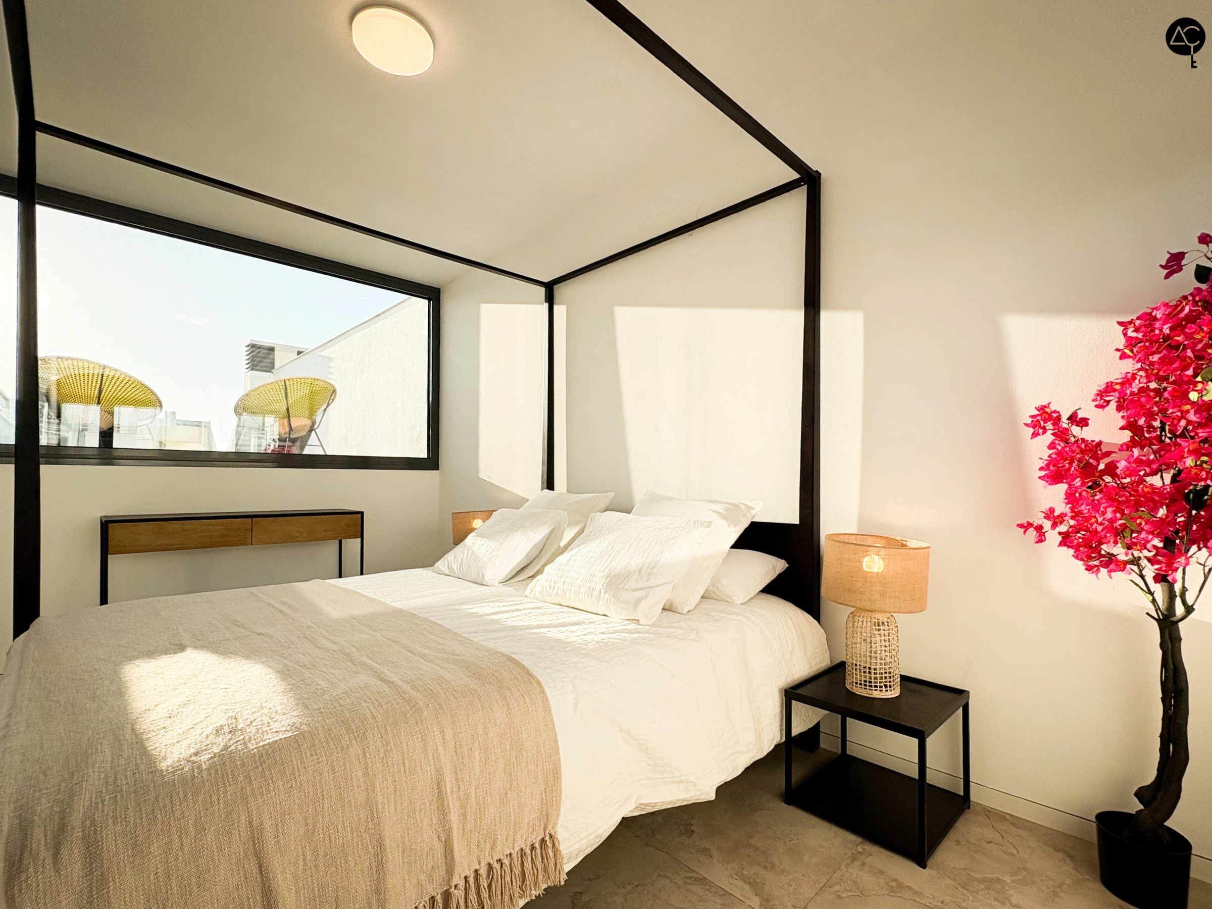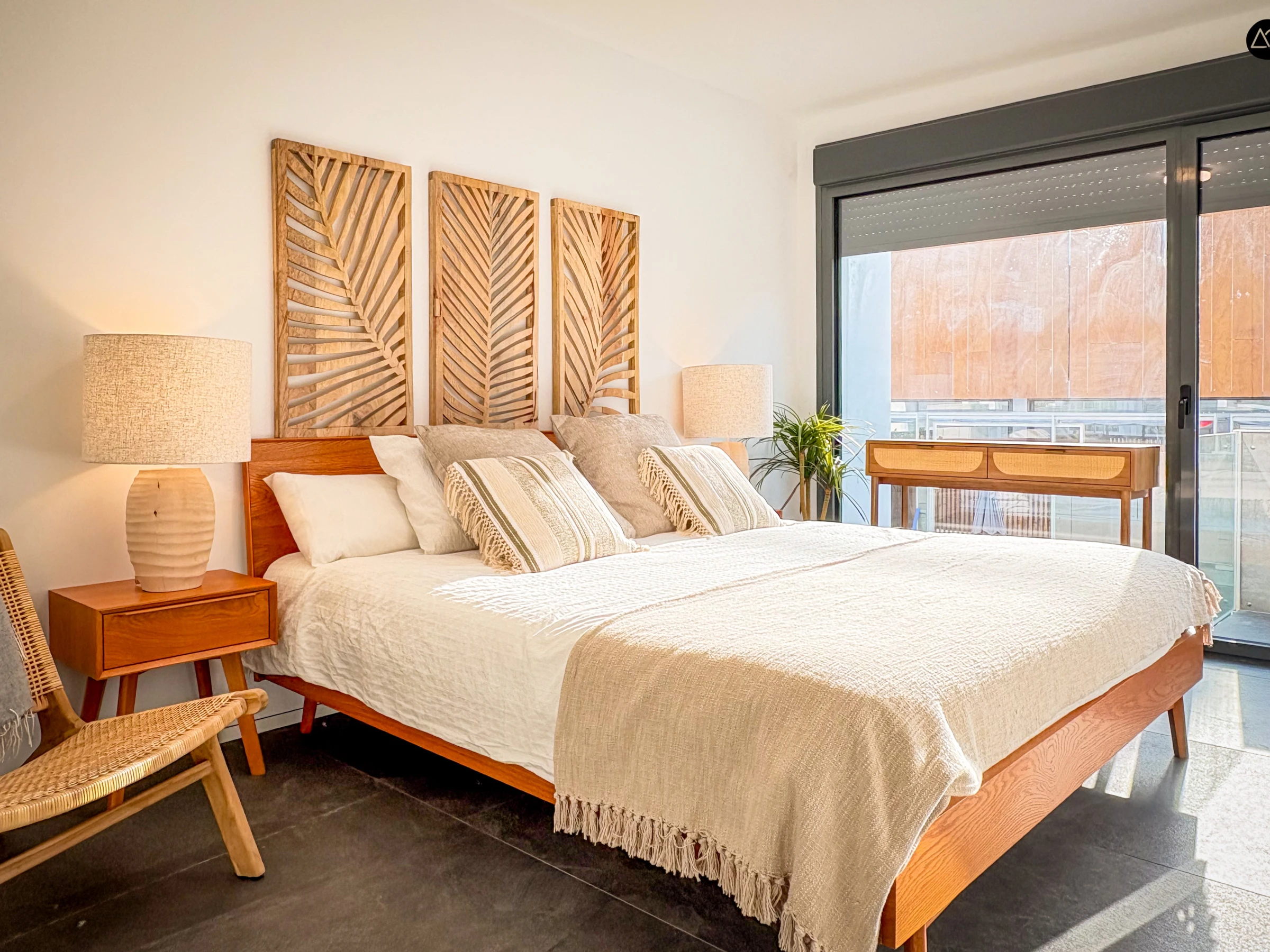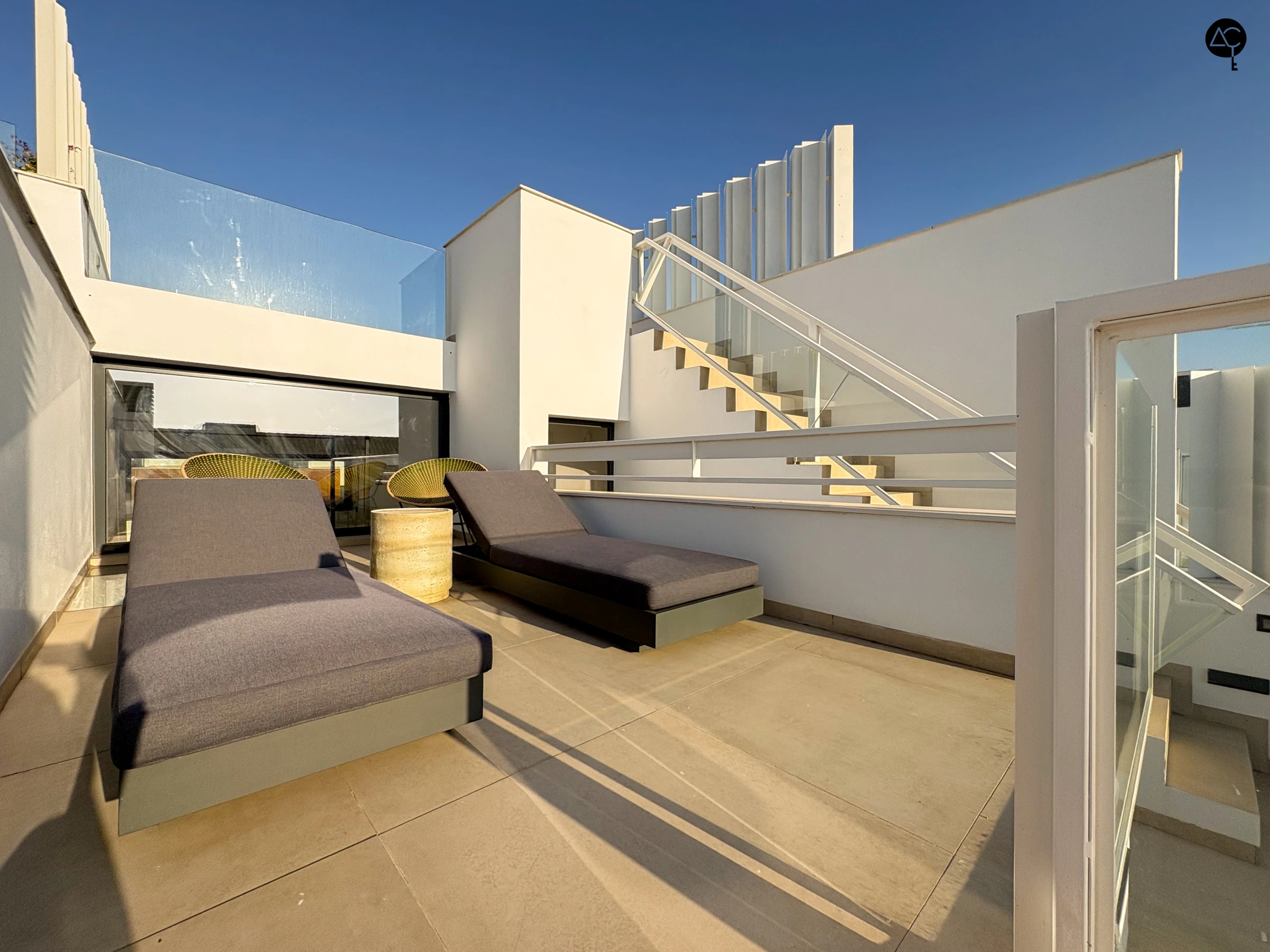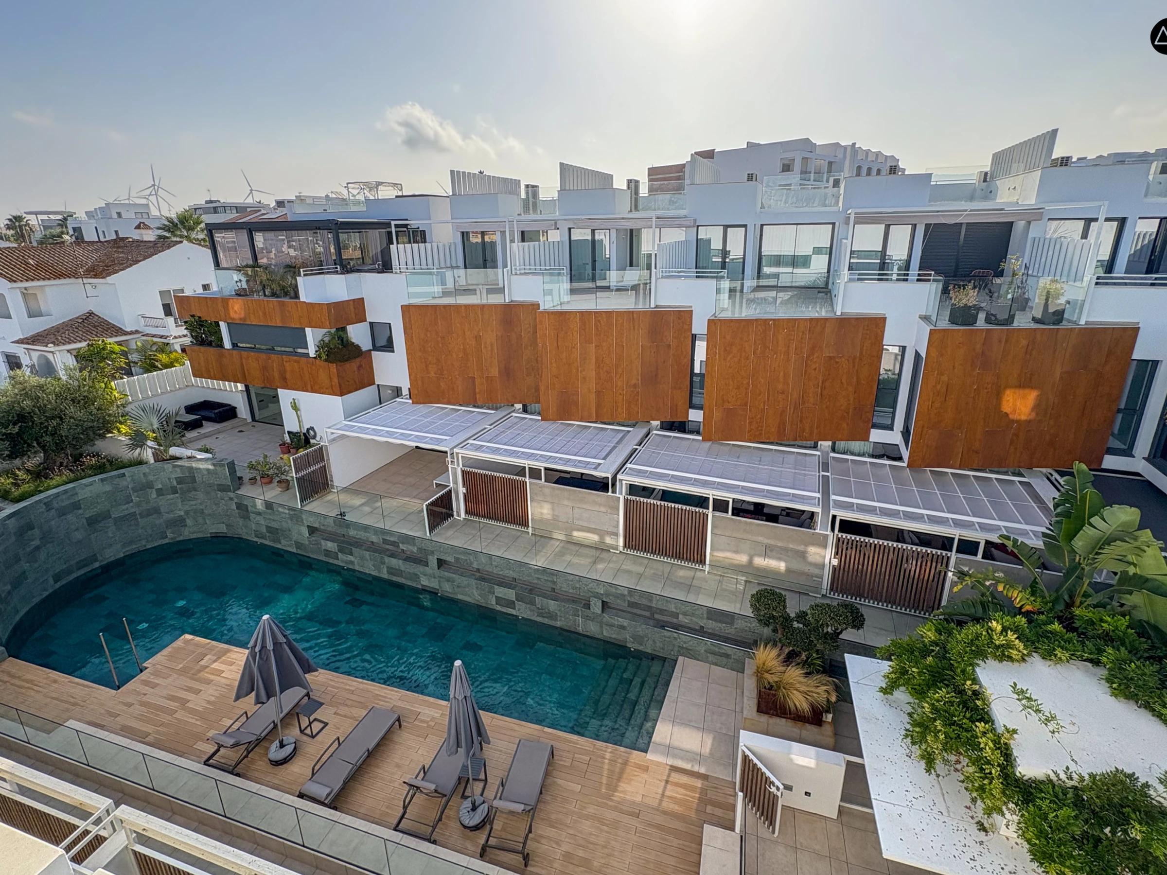 The accommodation is equipped with the following items: garden, garden furniture, 50 m² terrace, iron, internet (Wi-Fi), hair dryer, balcony, central heating, air conditioning throughout the house, swimming pool communal, garage in the same building, 2 TVs.